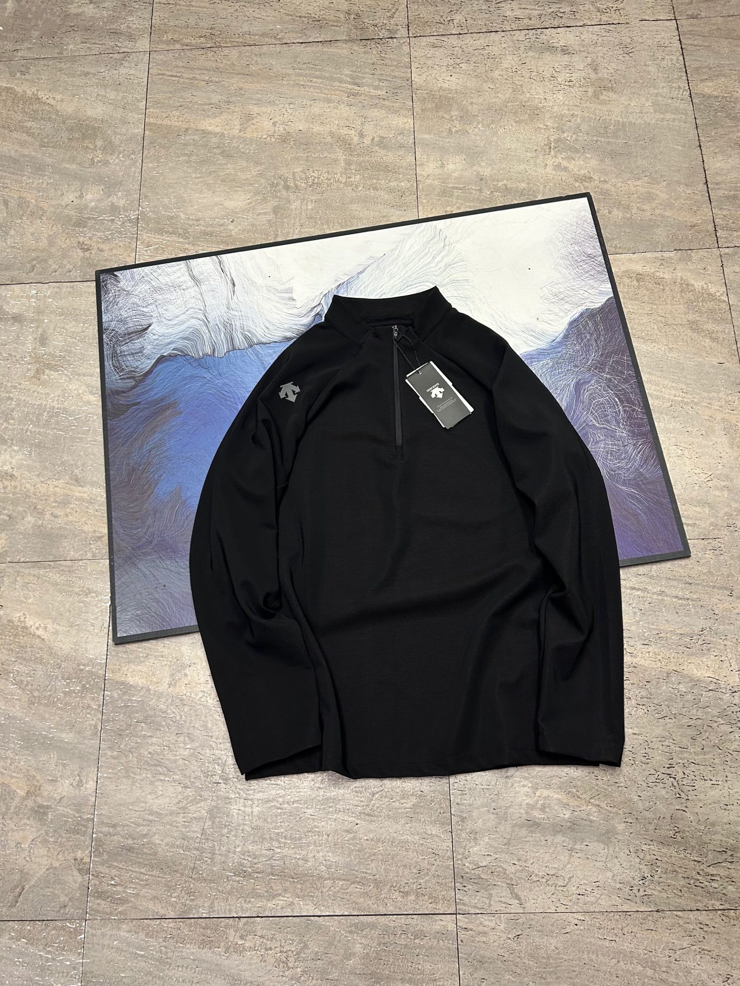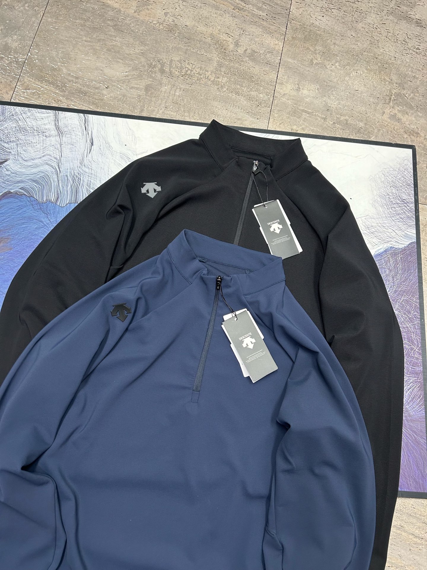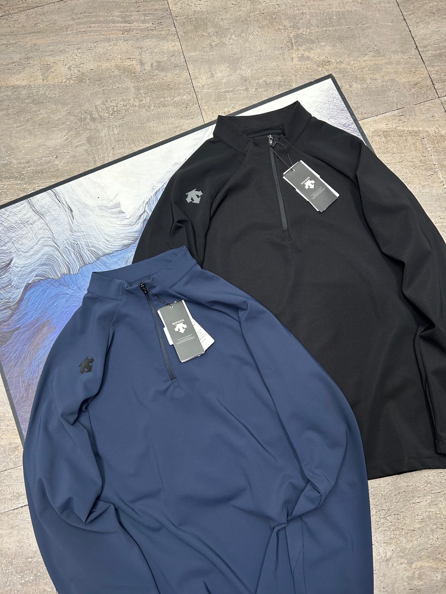 Elevate your workout with this Descente half-zip long sleeve top, designed for comfort and performance. Perfect for training and fitness activities.