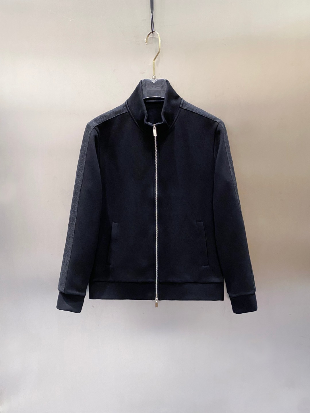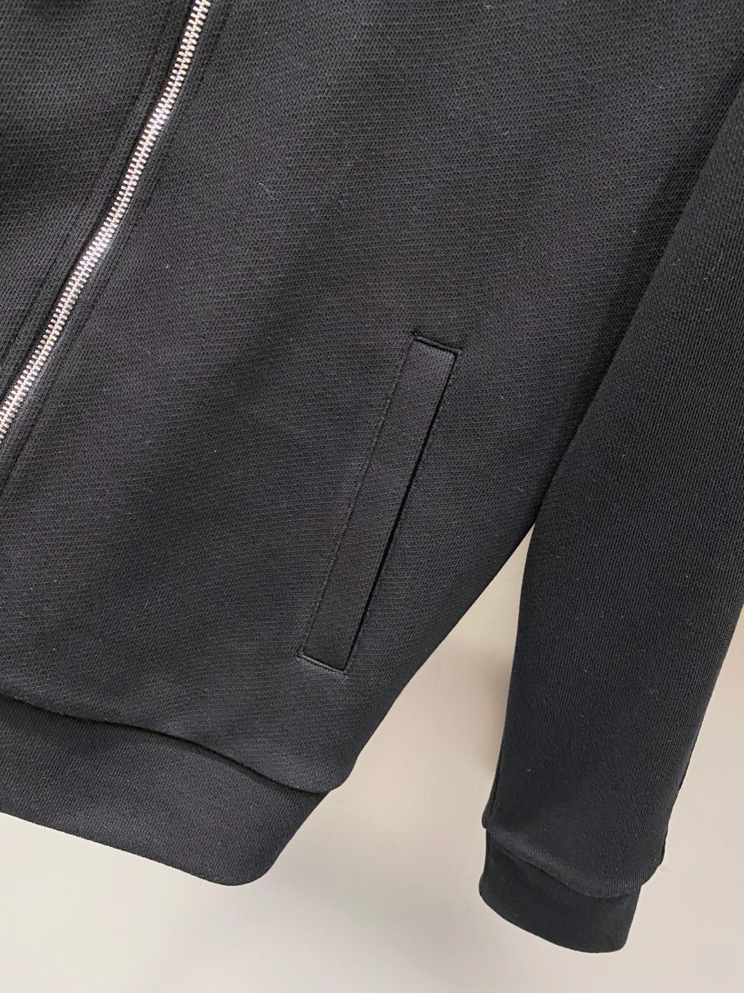 - Design: Ribbed detailing, metal logo zipper, tailored fit