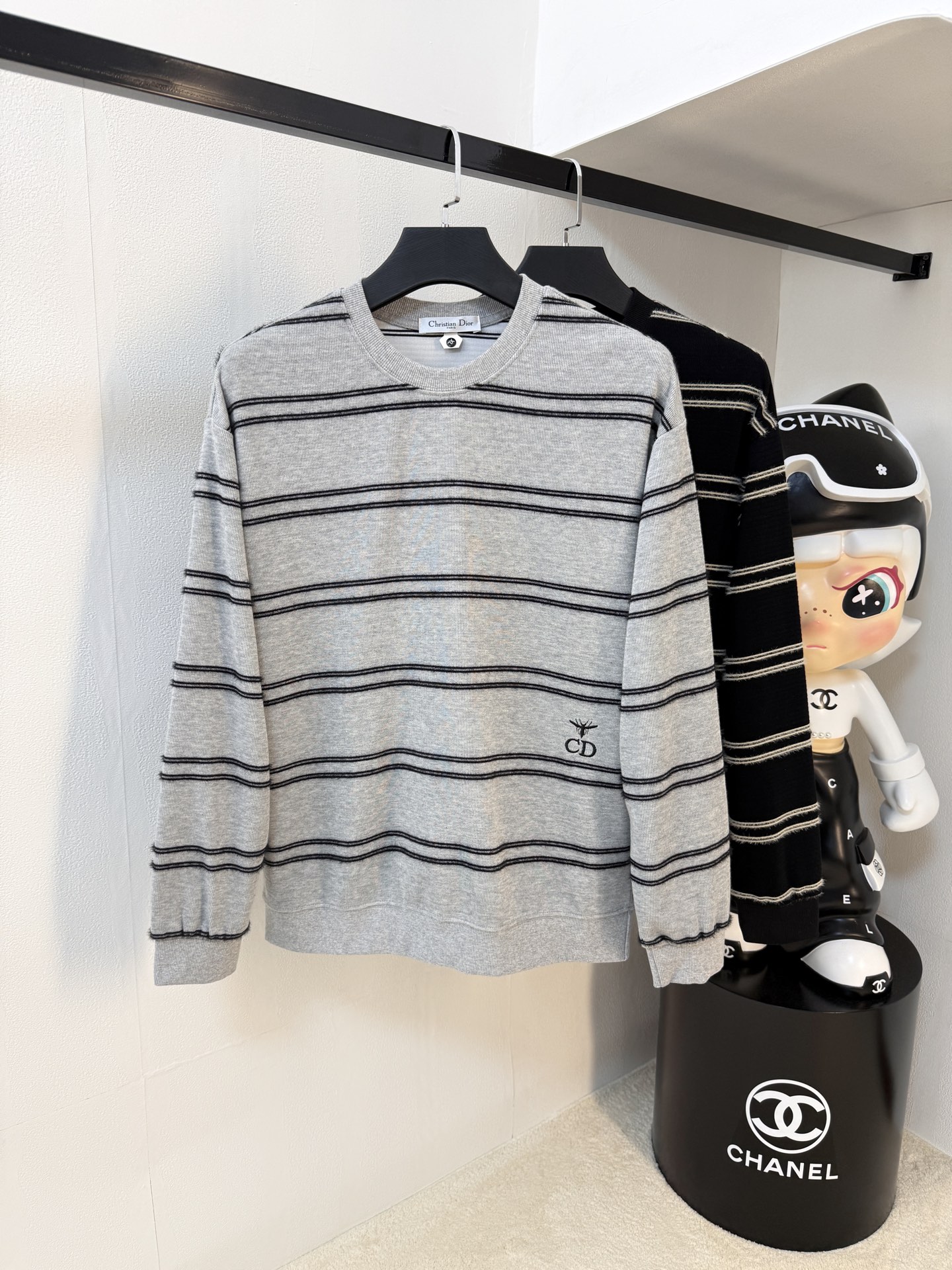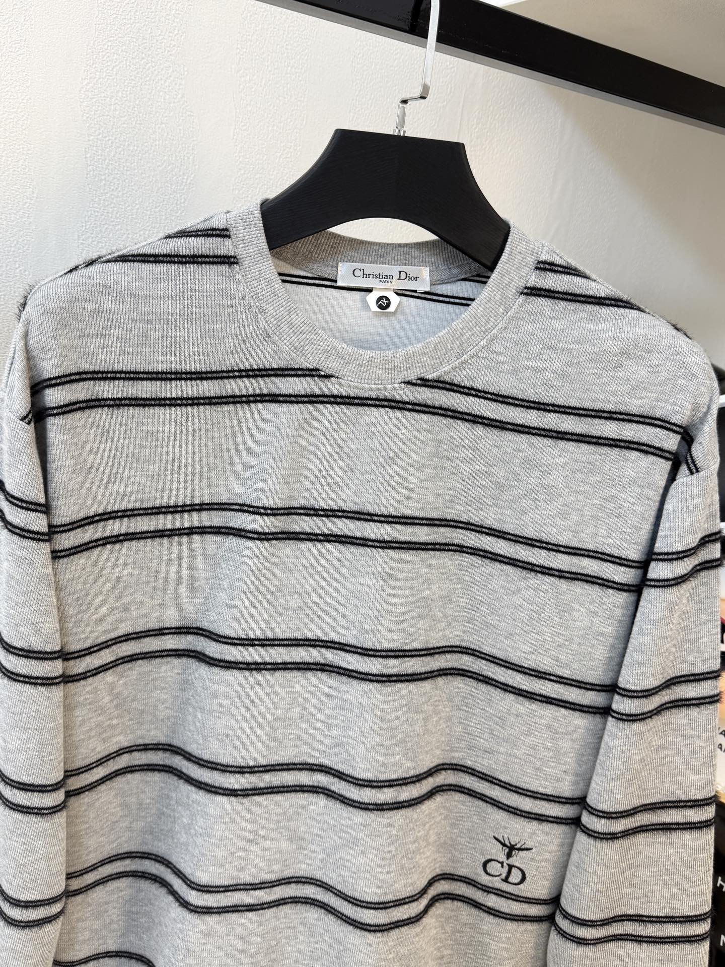 This Dior striped sweatshirt is a timeless piece that adds a touch of luxury to any wardrobe.