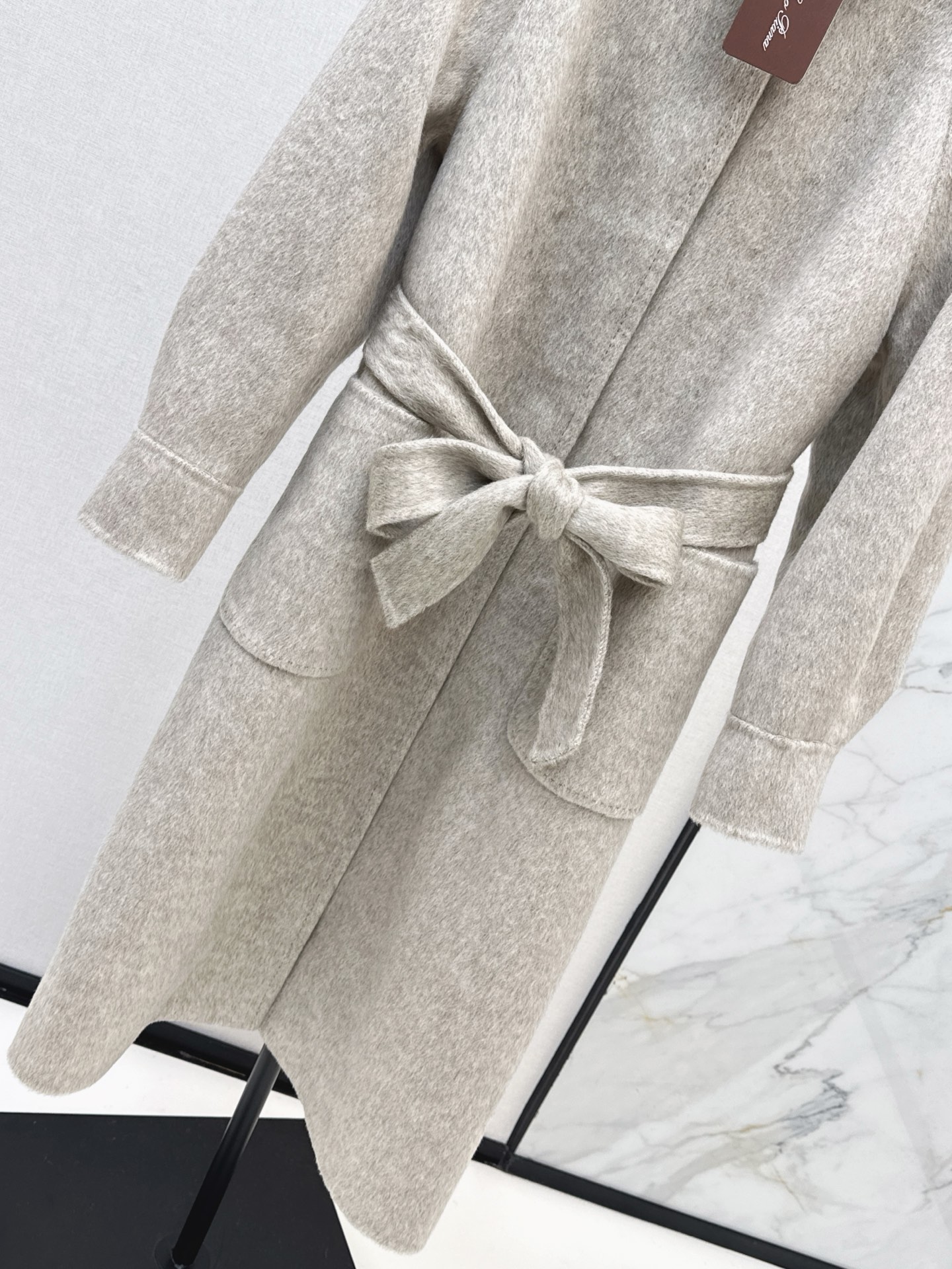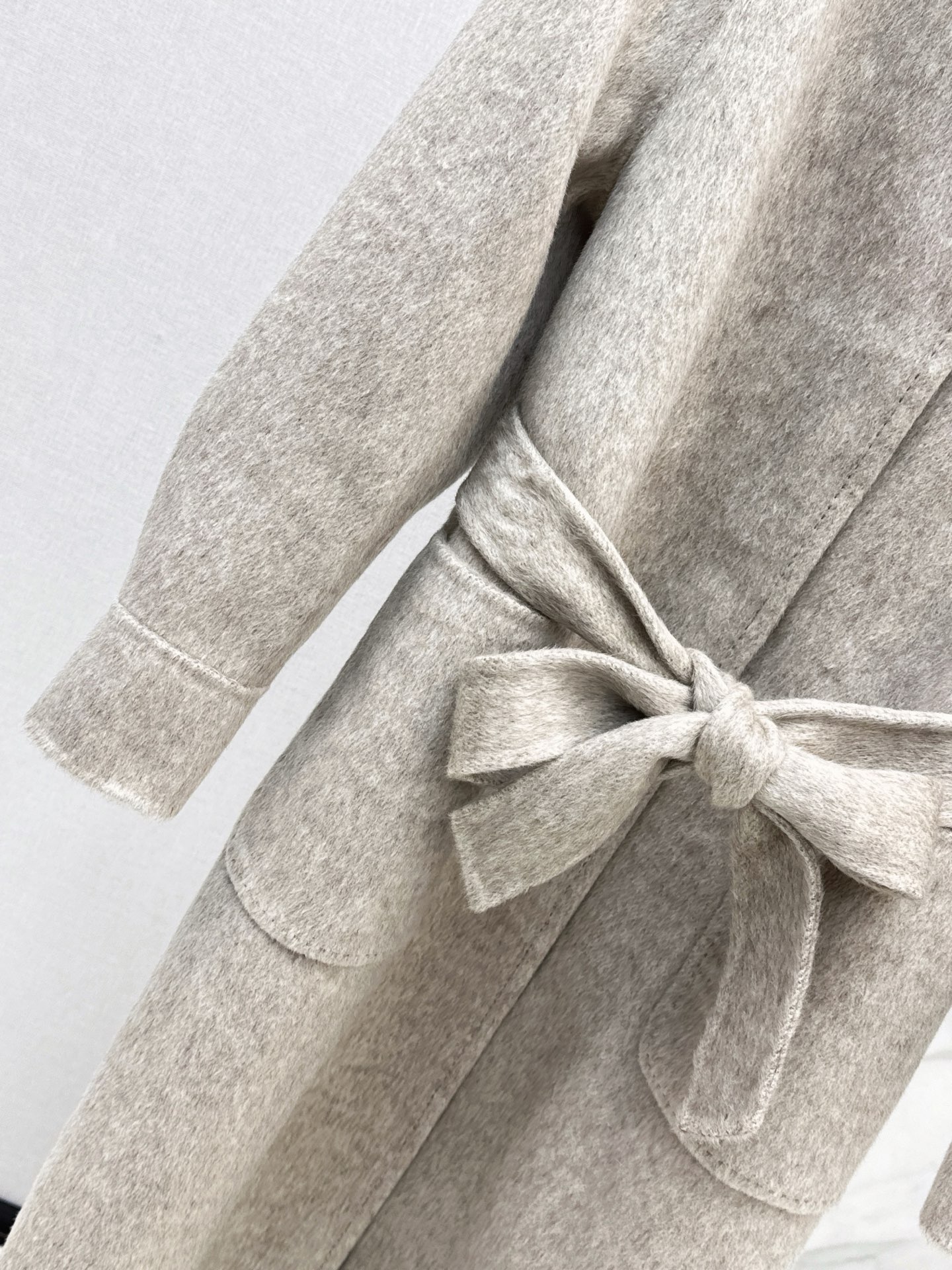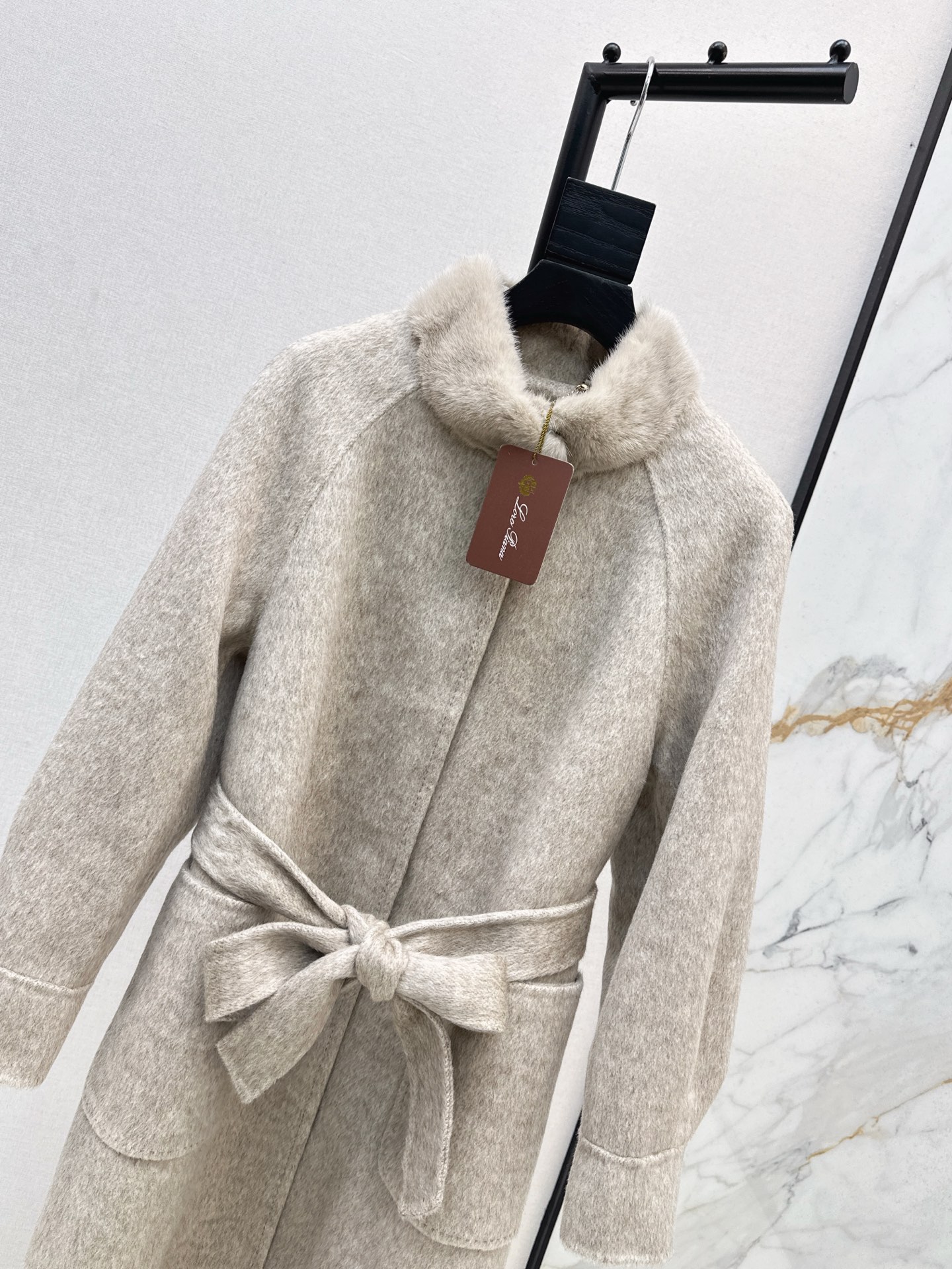 Elegant Wool & Mink Collar Long Coat with Belt - High-End Winter Style