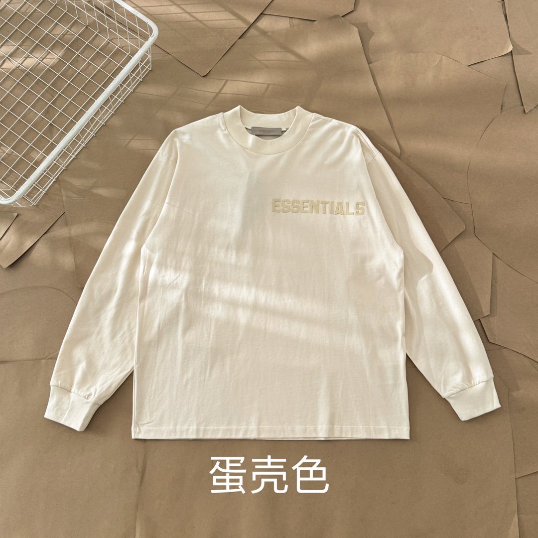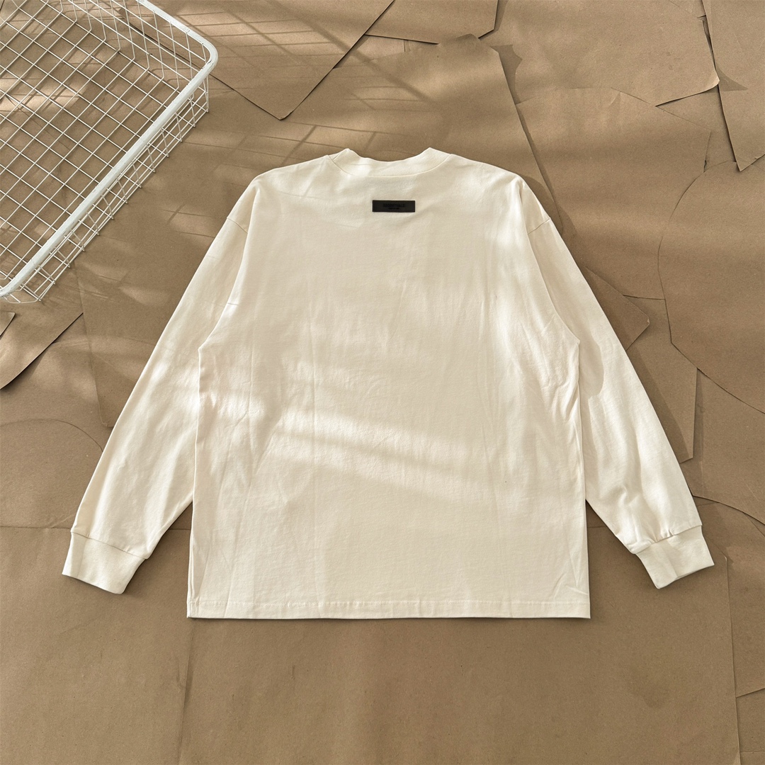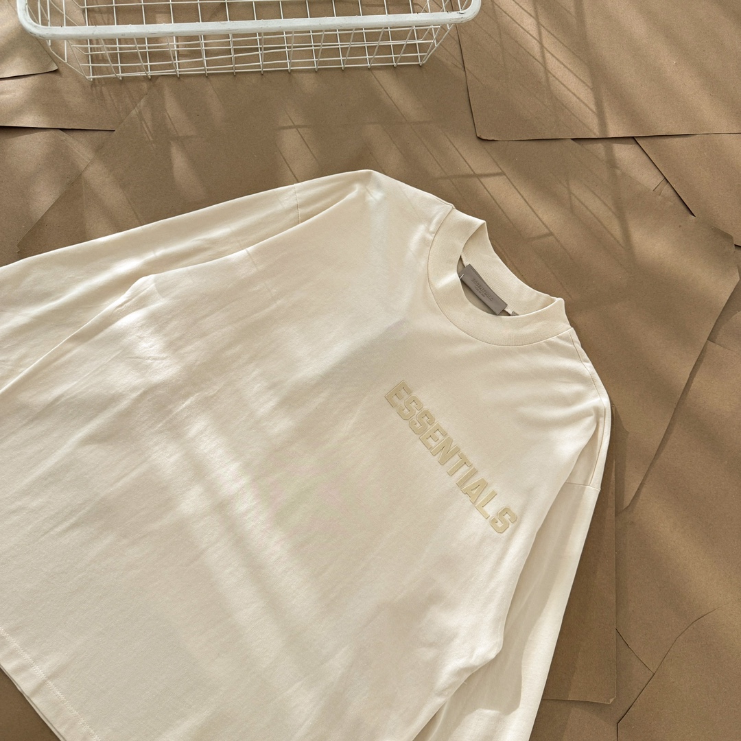 Essentials Fear of God Long Sleeve T-Shirt - Premium Cotton, Flocked Logo