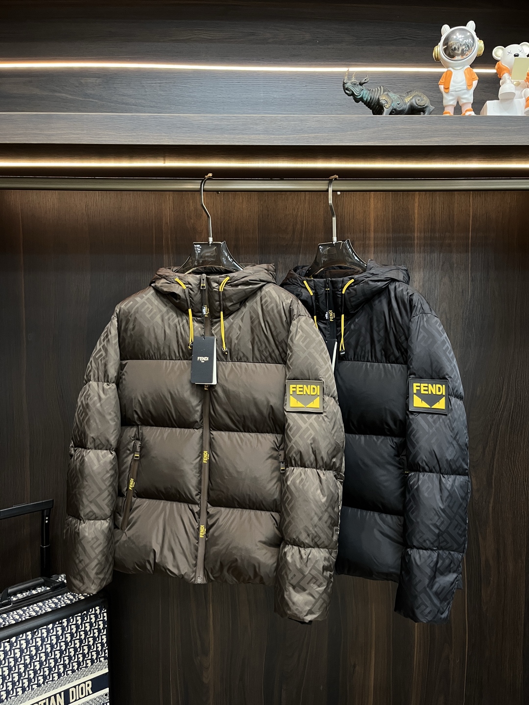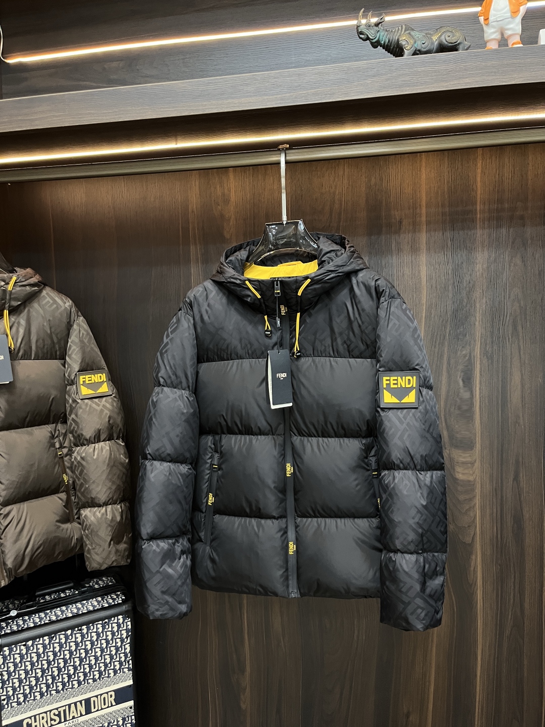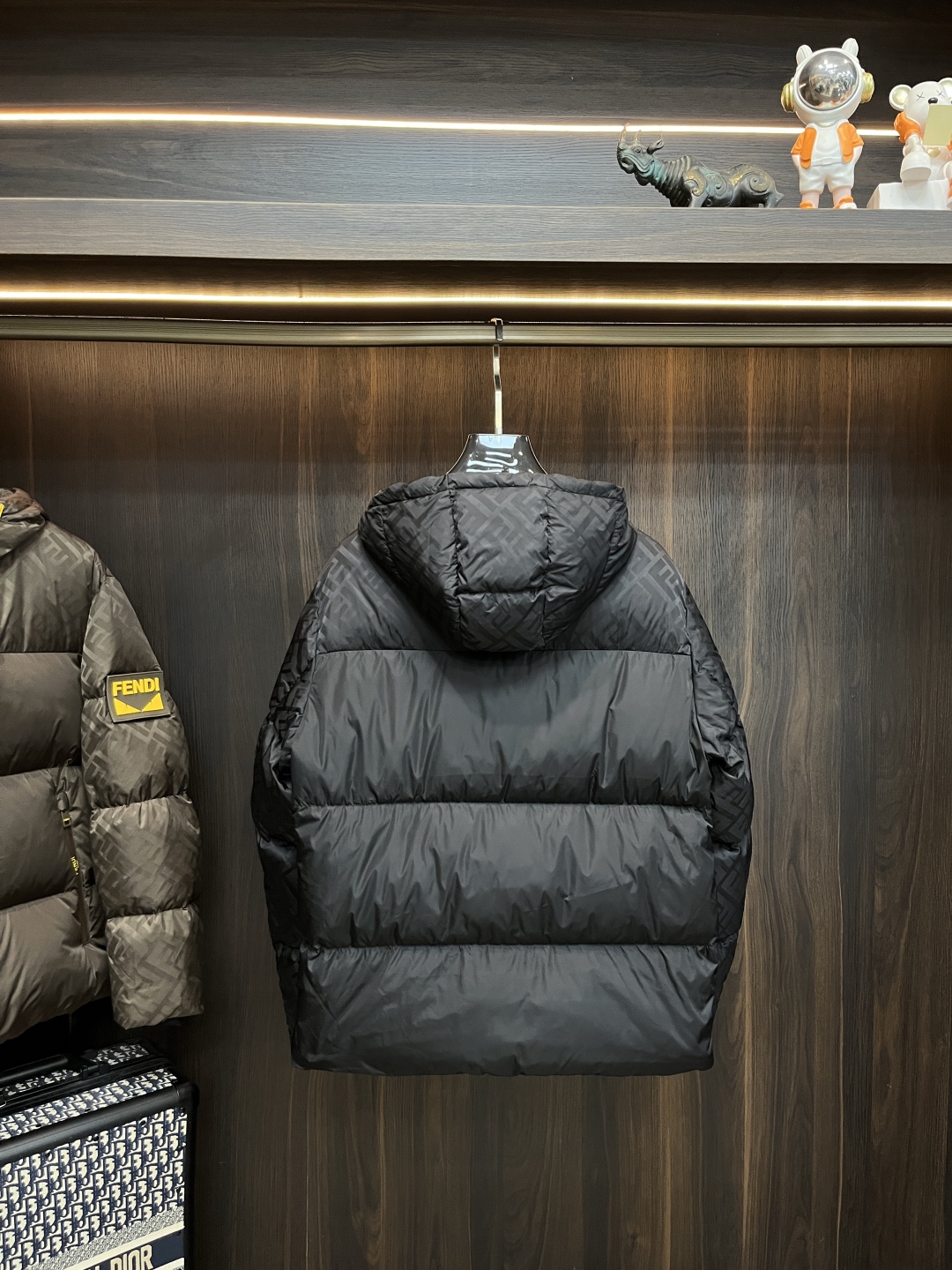 Fendi Hooded Down Puffer Jacket, Lightweight Winter Coat for Men, Black/Brown