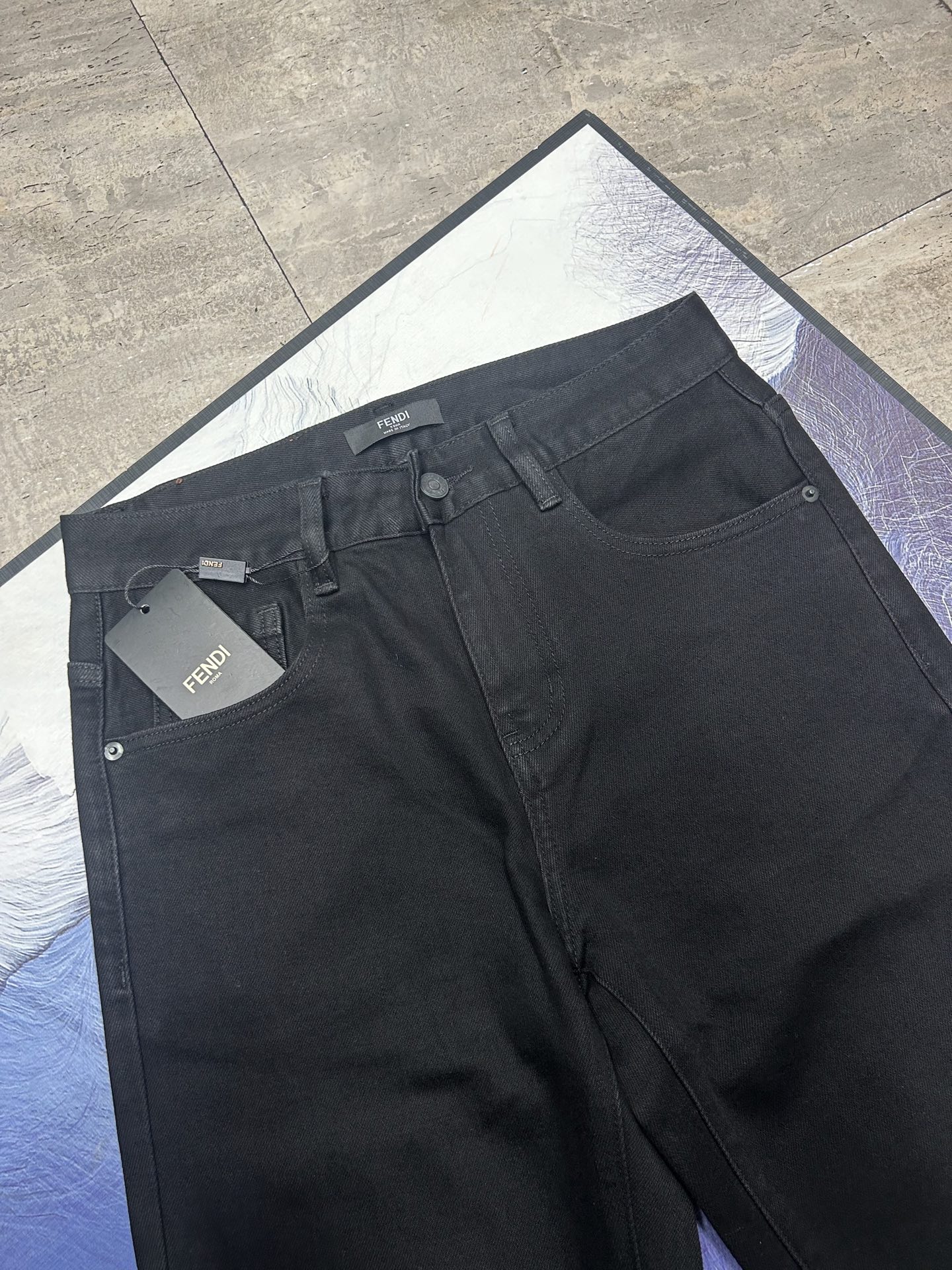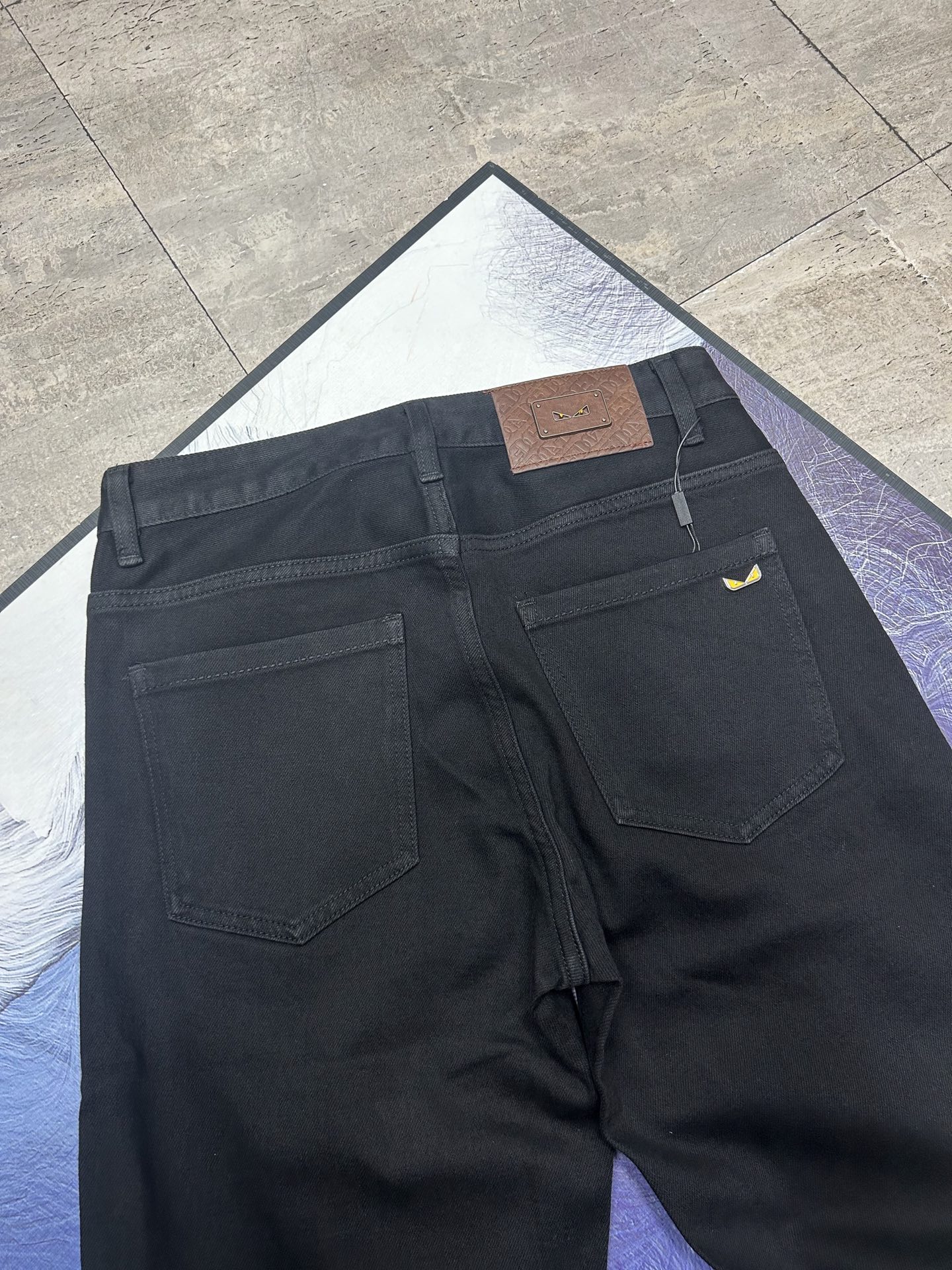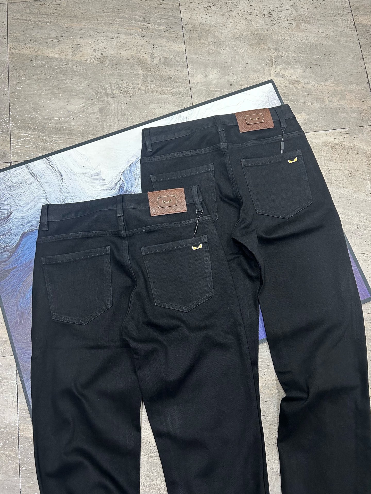 Fendi Men's Black Straight-Leg Jeans with Monster Eyes Logo, Size 28-38