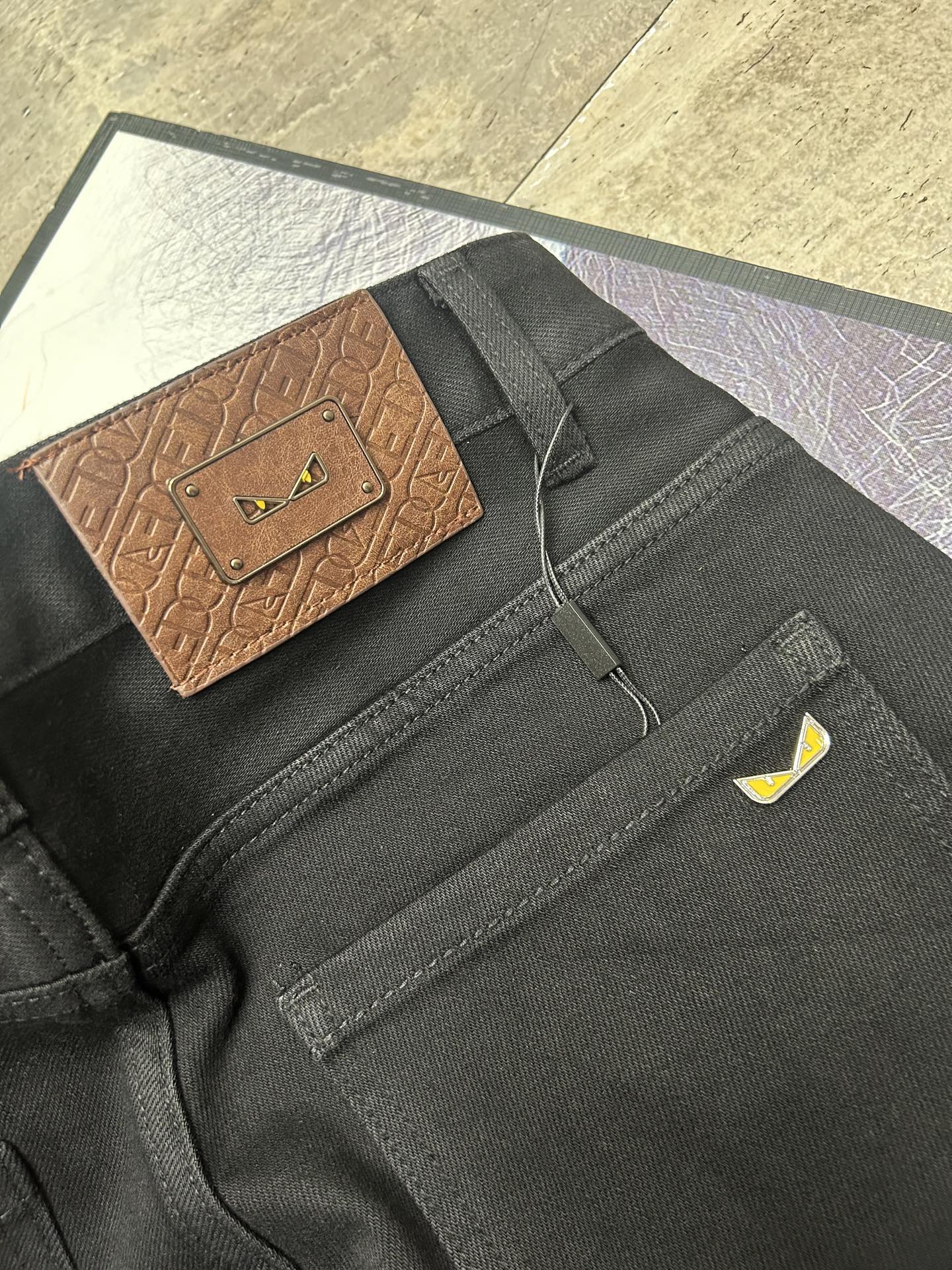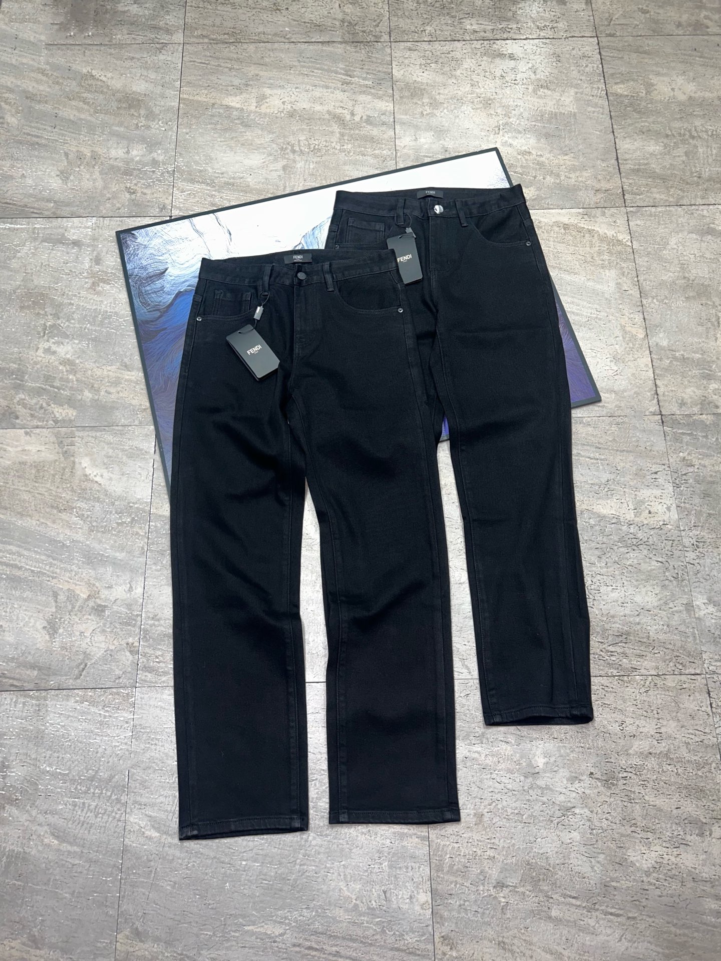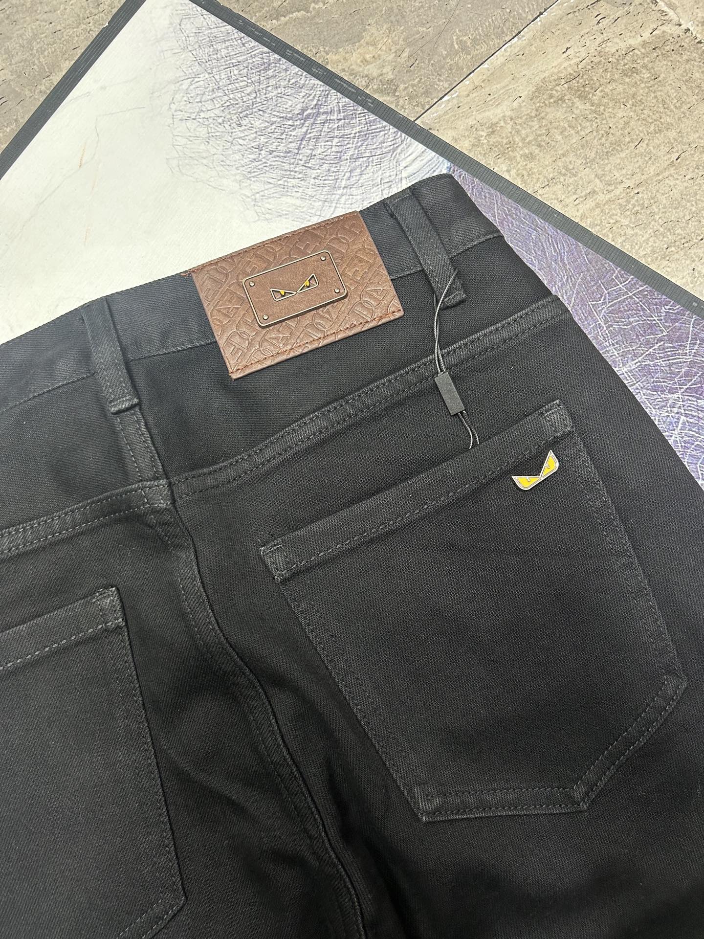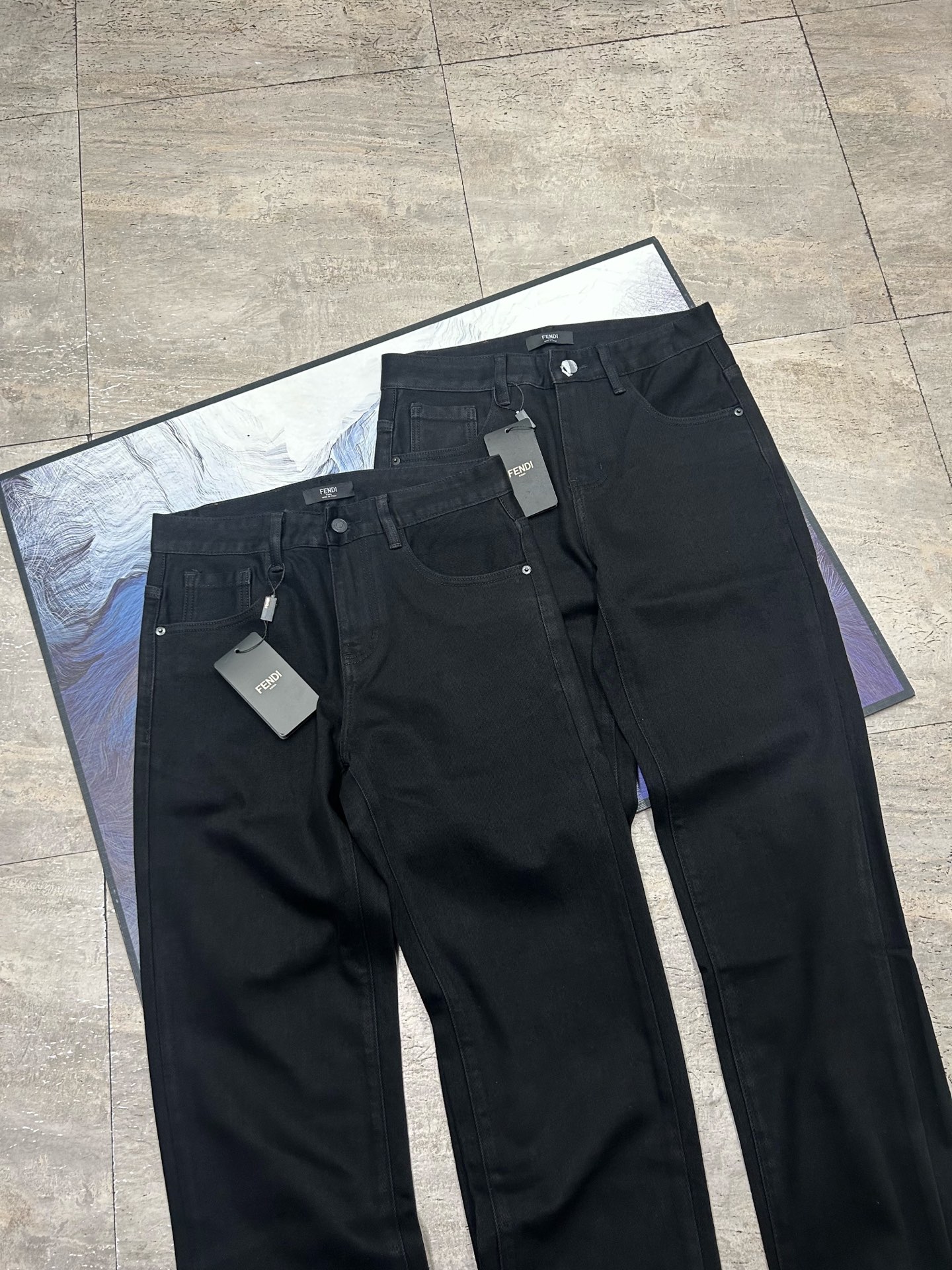 Fendi Men's Black Straight-Leg Jeans with Monster Eyes Logo, Size 28-38