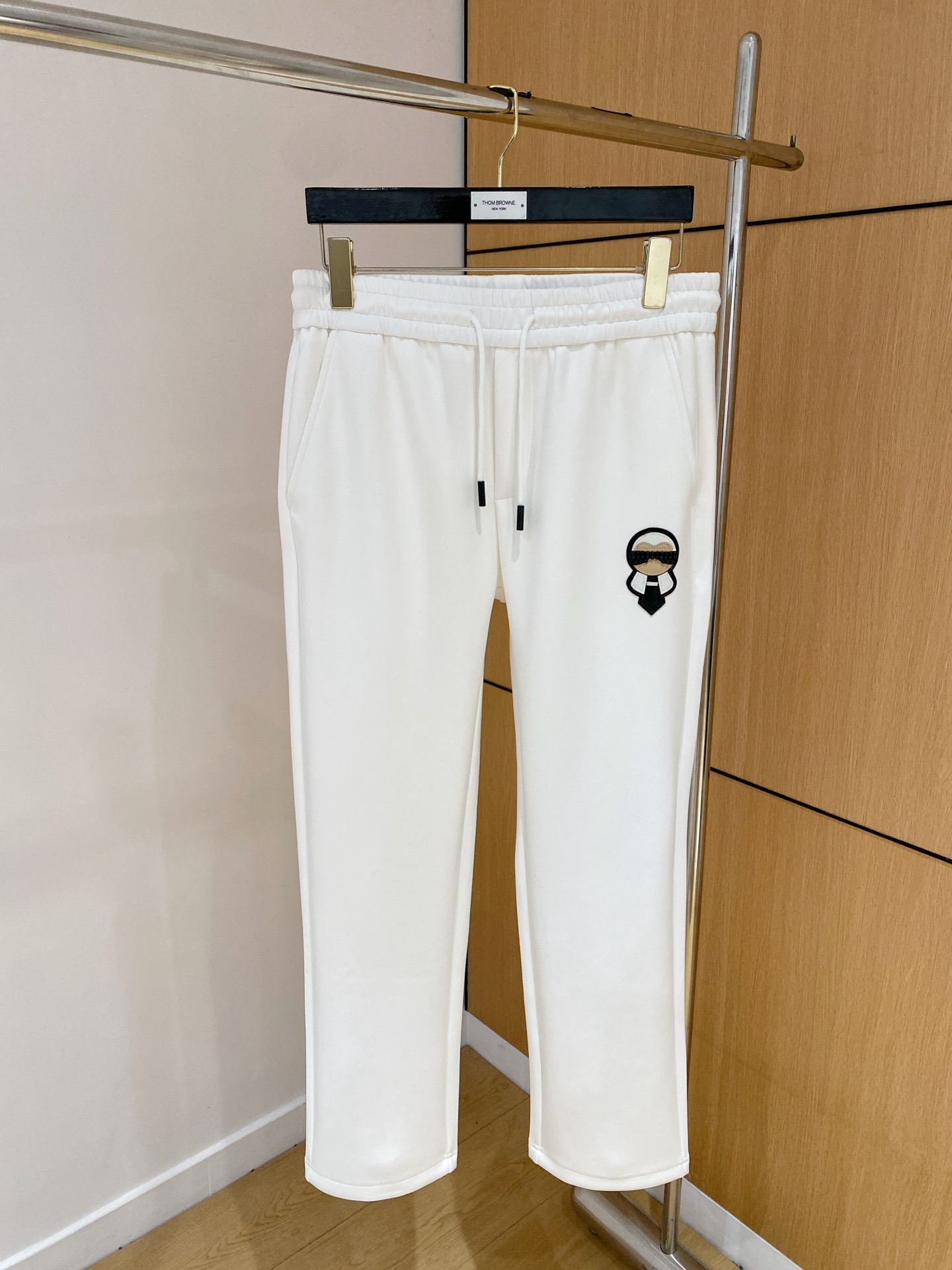 Fendi Men's White Cotton Blend Sweatpants Karl Lagerfeld Logo Embroidery