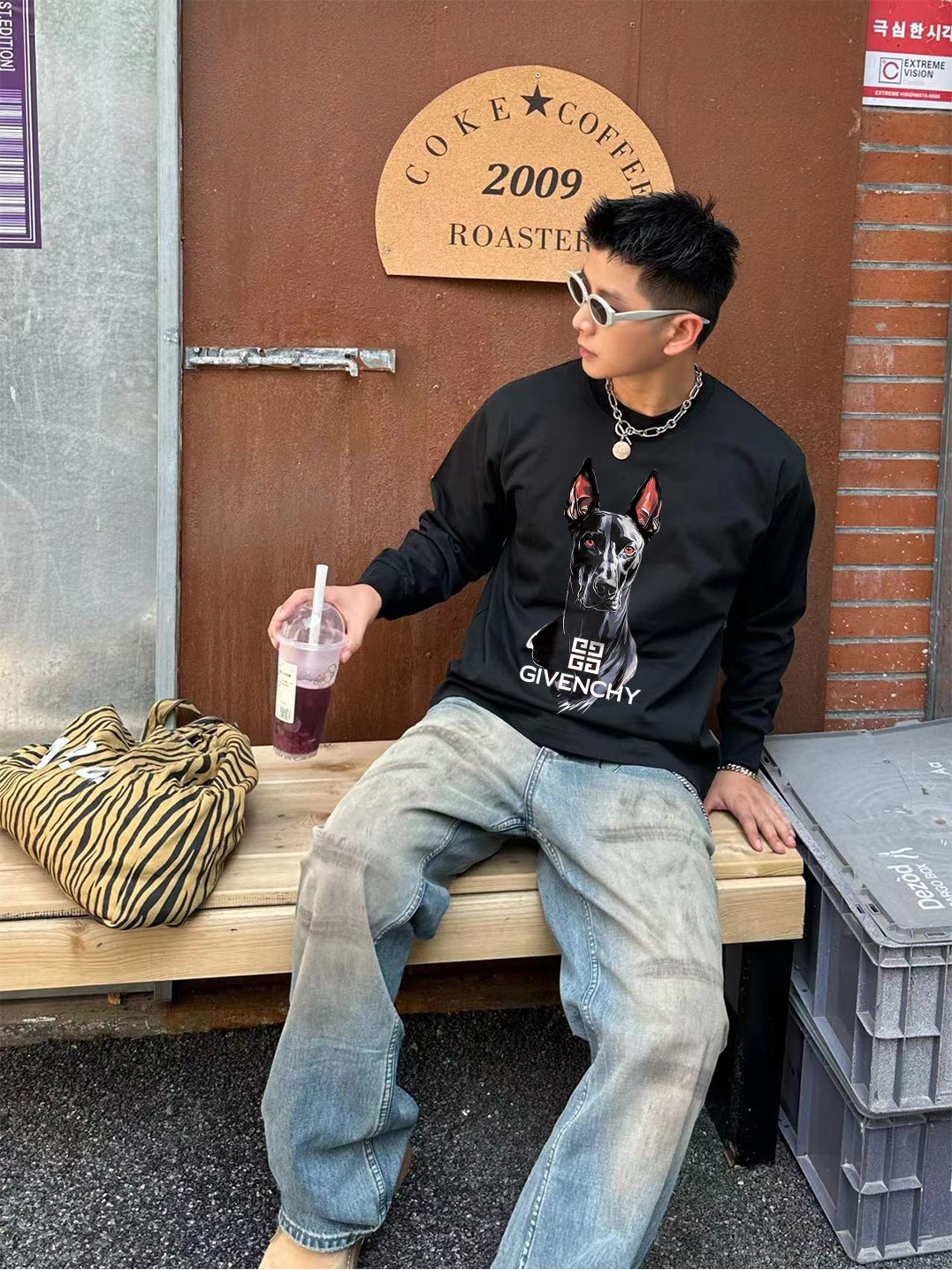Givenchy 2025 Long Sleeve T-Shirt with Dog Print - Unisex, Casual Fit
