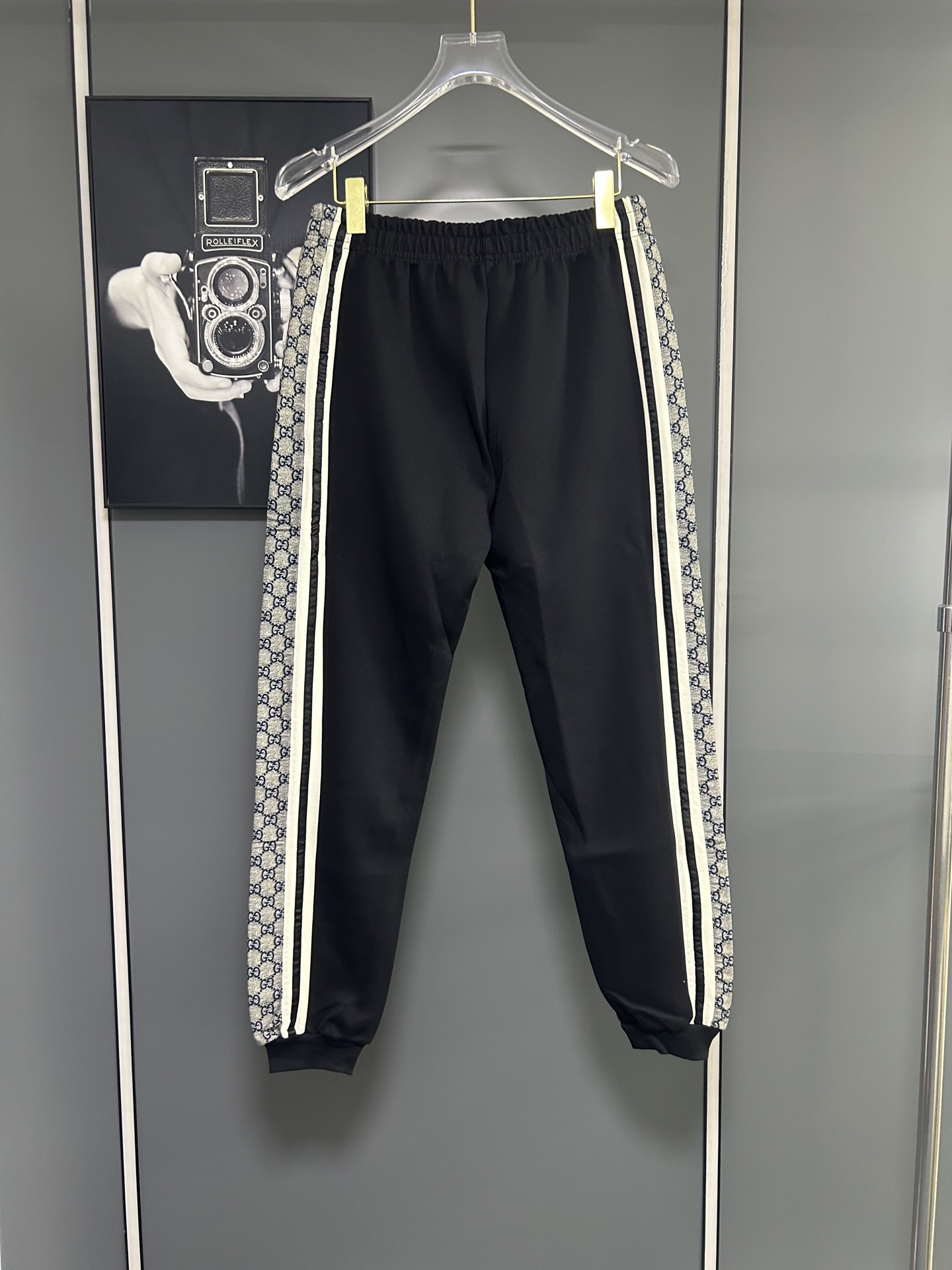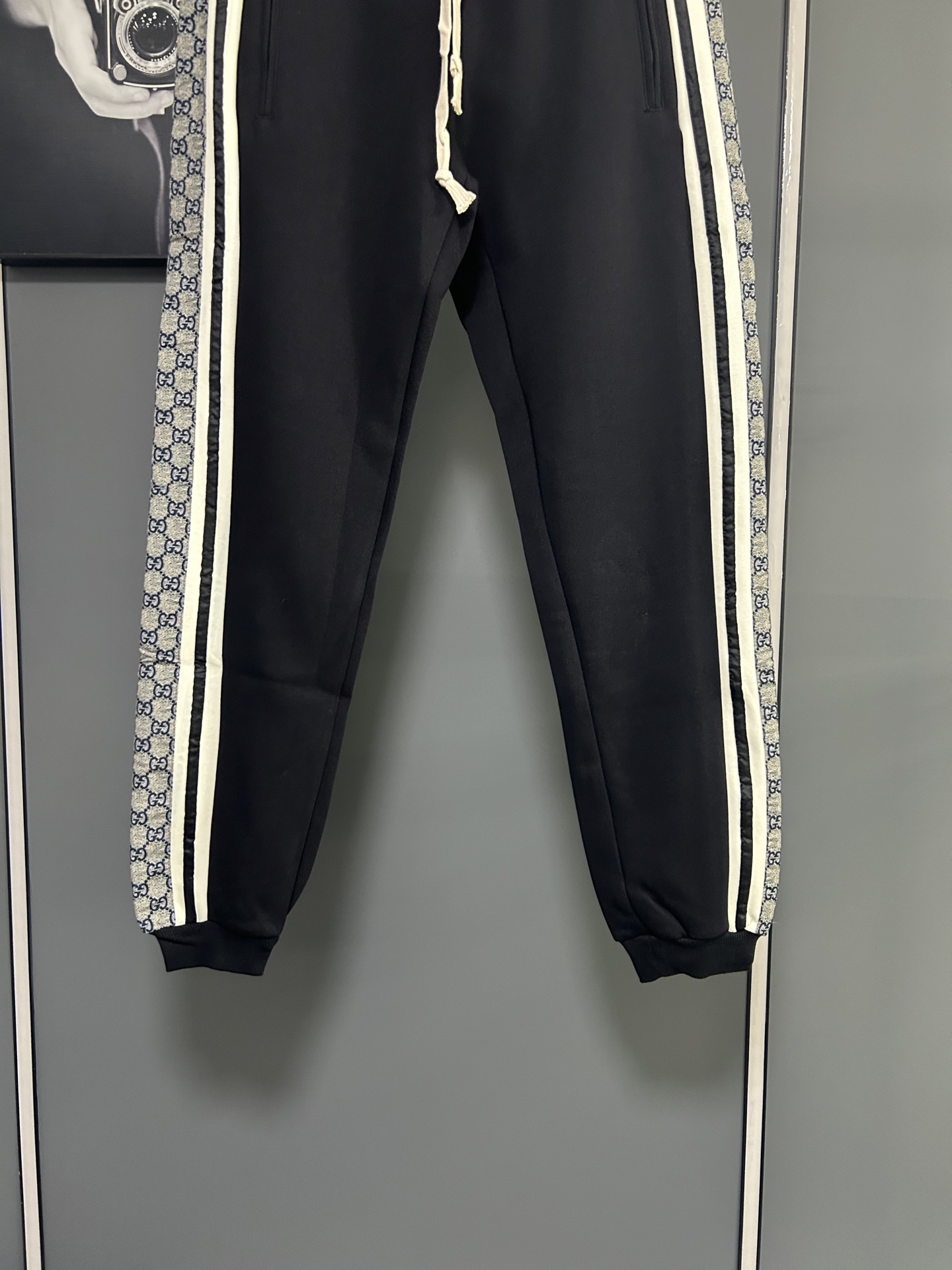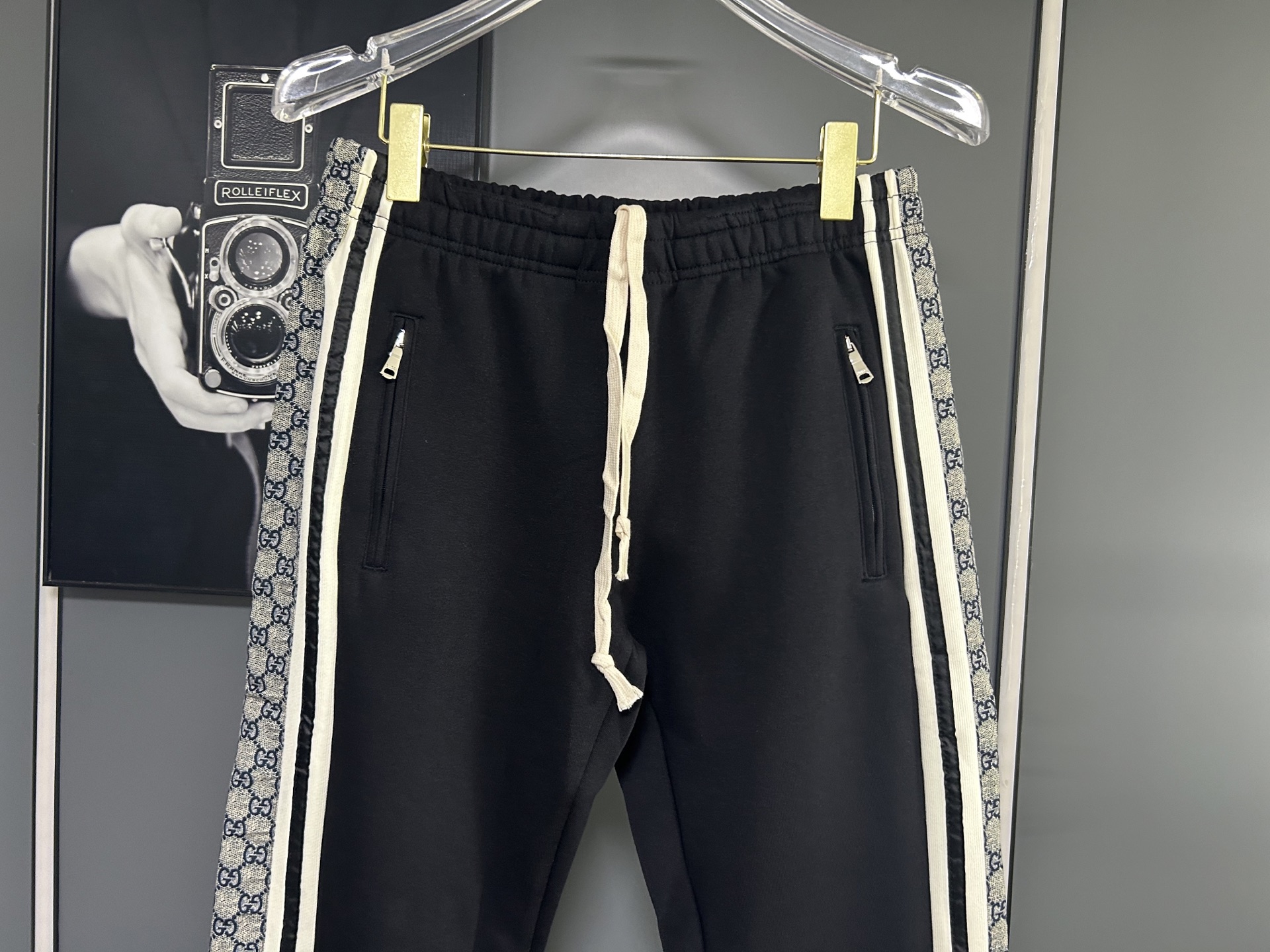 Gucci 2025 Fall/Winter Embroidered Logo Sweatpants - Black, High-Density Cotton
