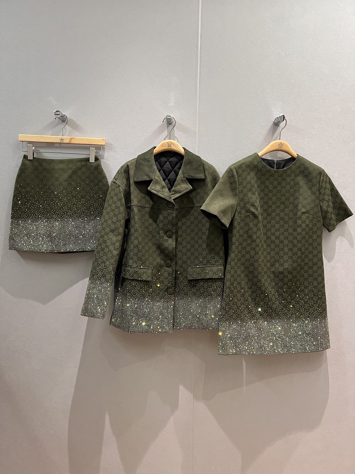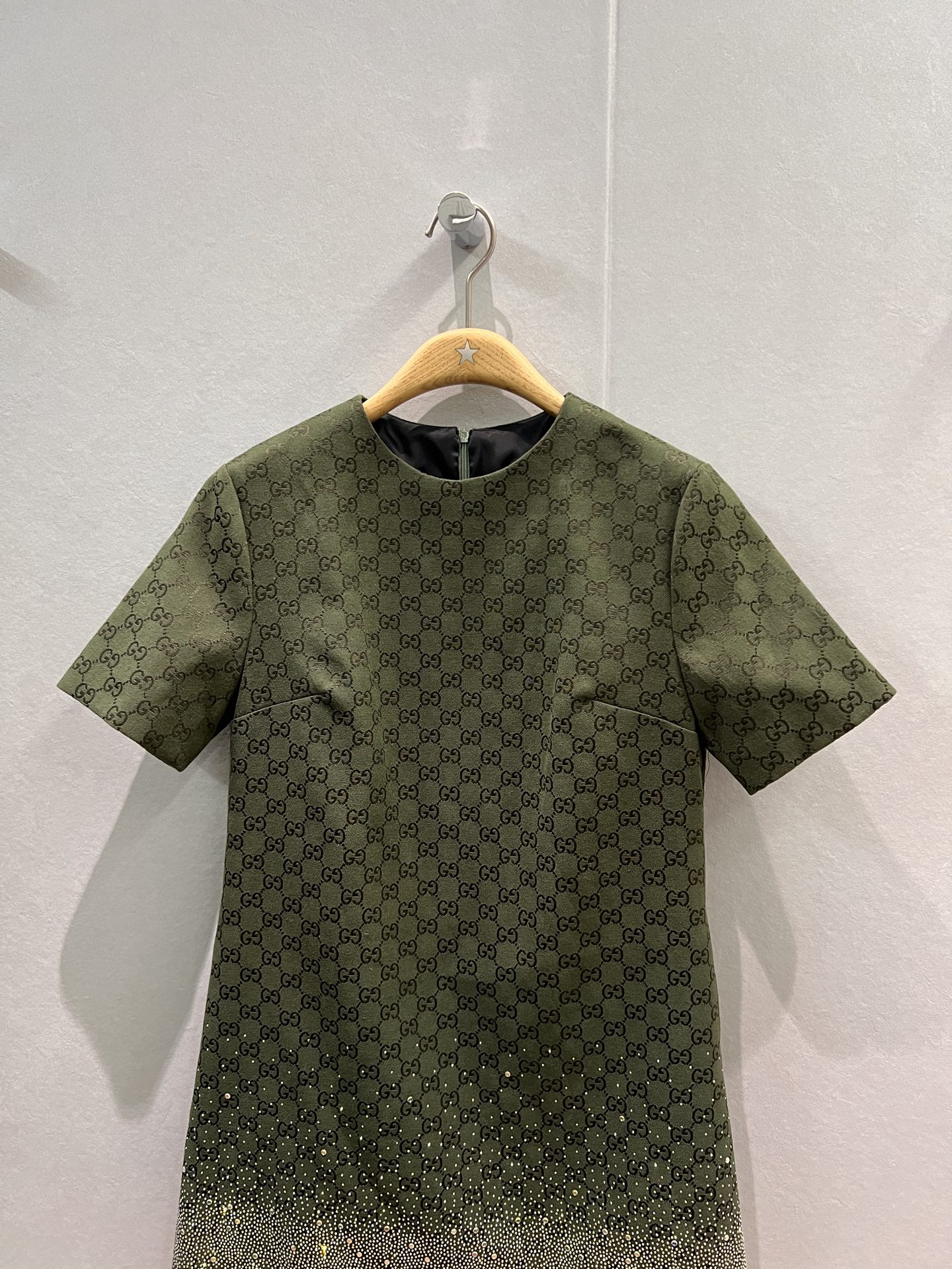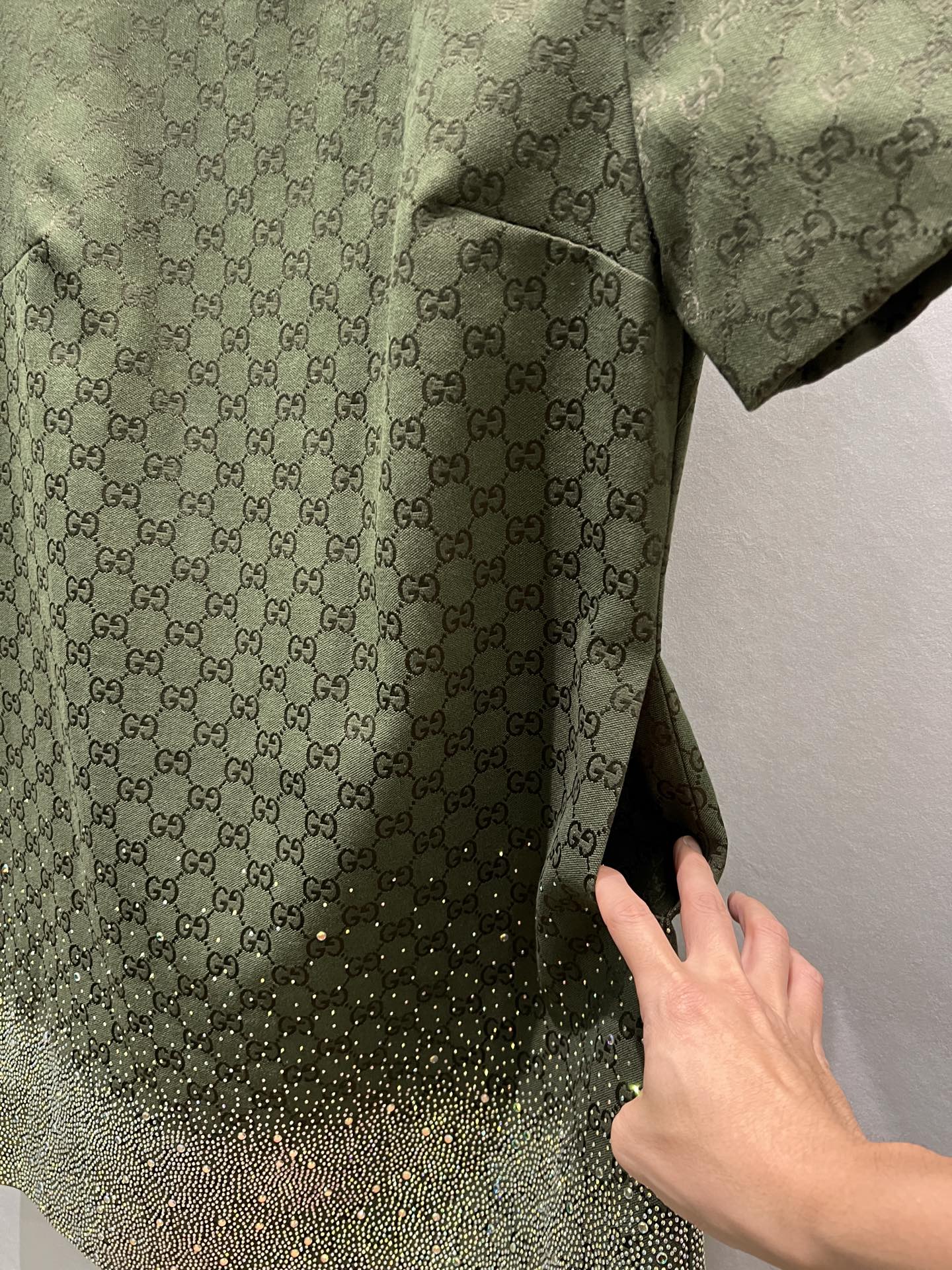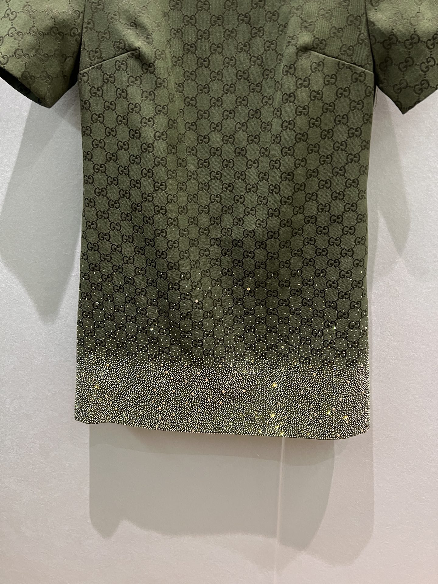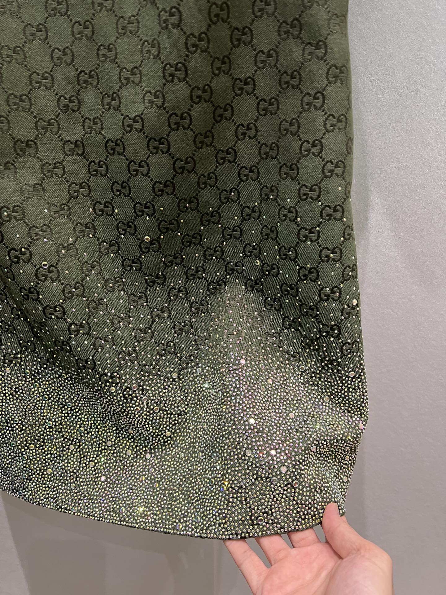 Gucci Green Jacquard Mini Dress with Rhinestone Embellishments - Elegant & Chic