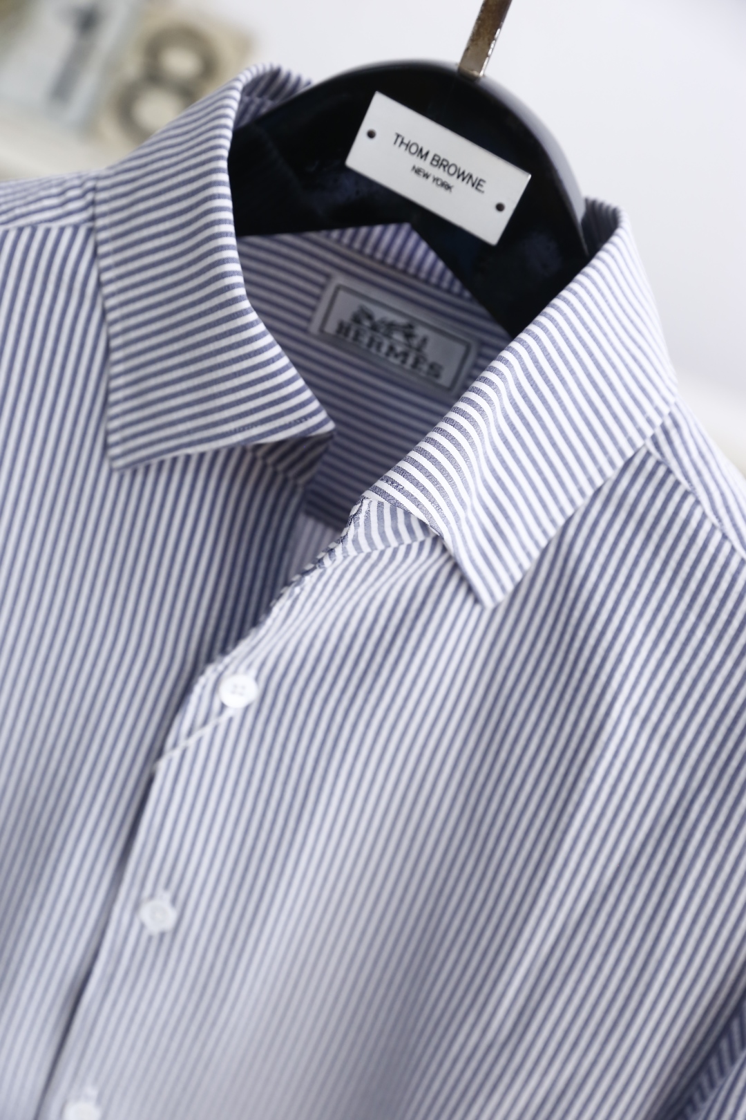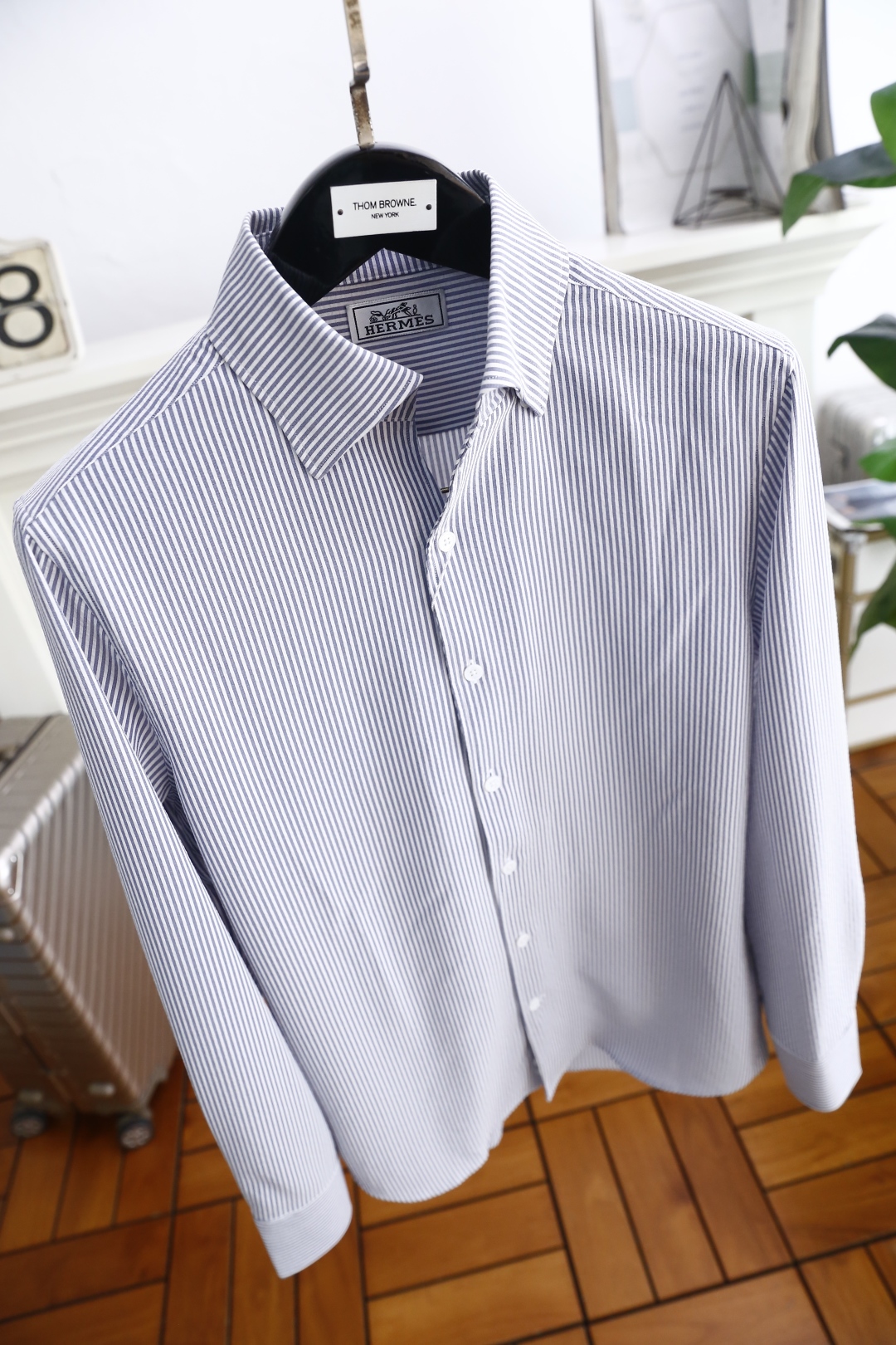 This Hermes striped shirt is a blend of classic style and modern sophistication, perfect for the discerning gentleman.