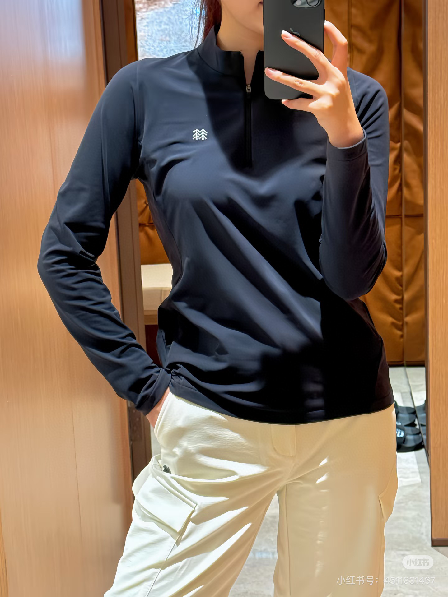 - Half-zip front with a zipper guard to prevent skin irritation.