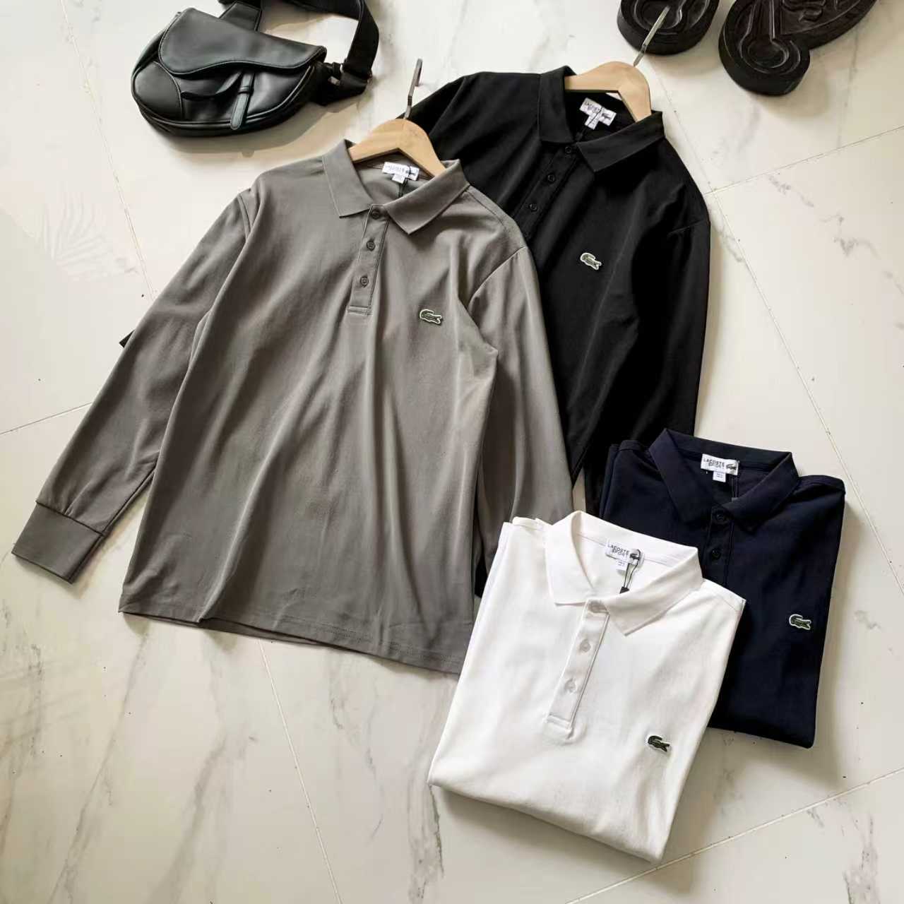 This Lacoste long-sleeve polo shirt is a versatile addition to any man's wardrobe, blending classic style with modern comfort.