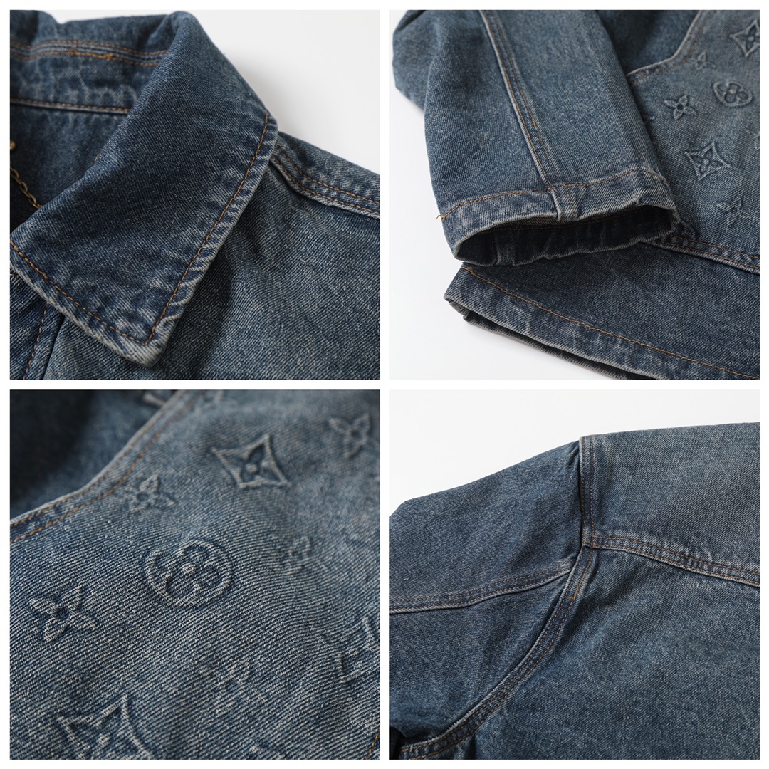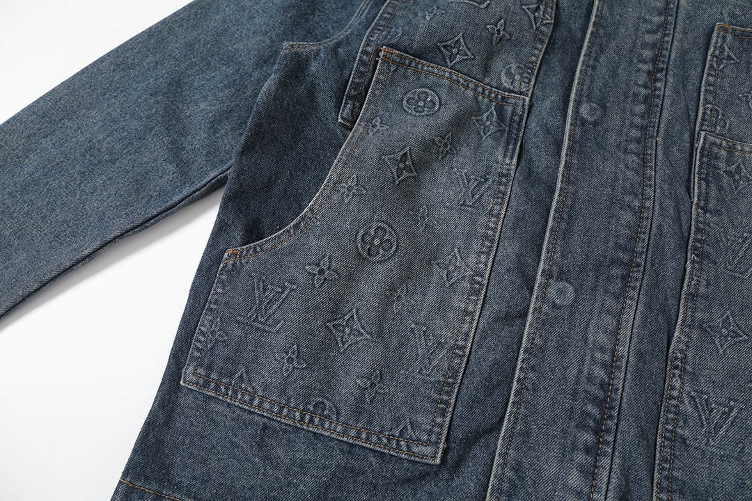 Louis Vuitton 1V 25FW 3D Embossed Denim Jacket - Unisex Luxury Style
