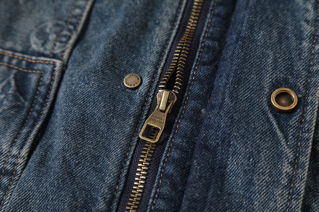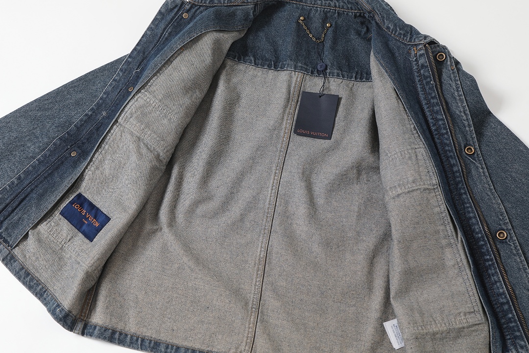 This Louis Vuitton denim jacket is sure to become a staple in your wardrobe. With its unique design and high-quality construction, it is a timeless piece that will elevate any outfit.