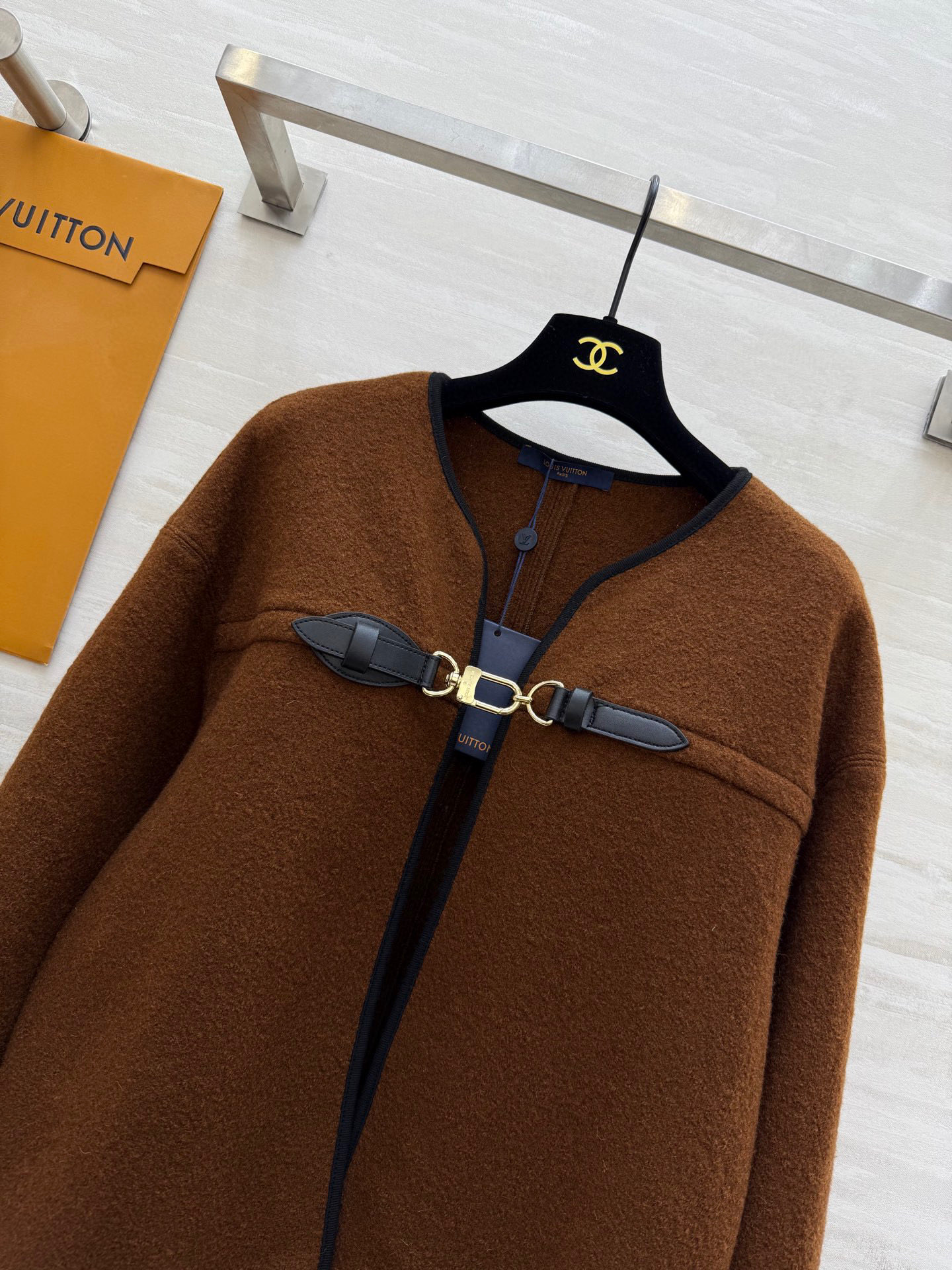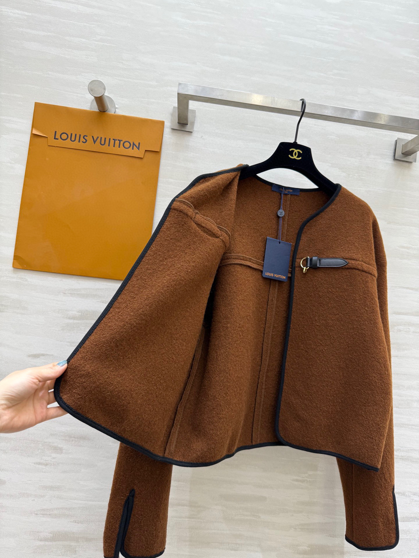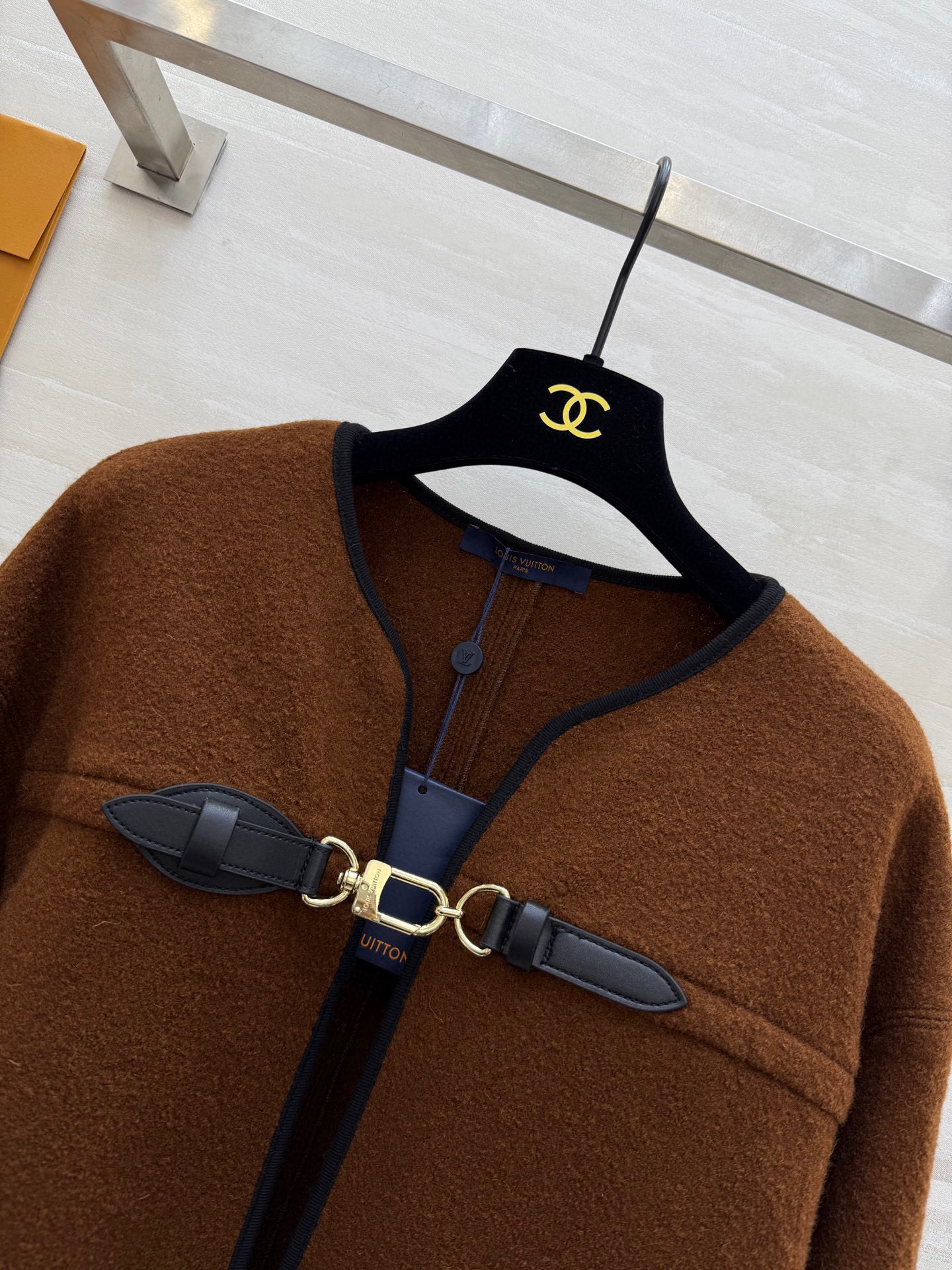 This Louis Vuitton cape jacket is a chic addition to any wardrobe. Its unique design and high-quality material make it a standout piece.