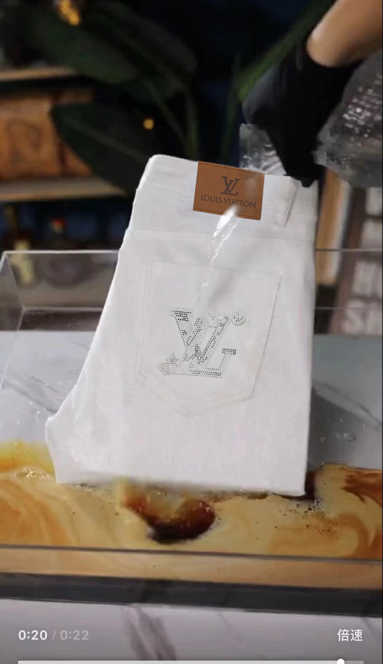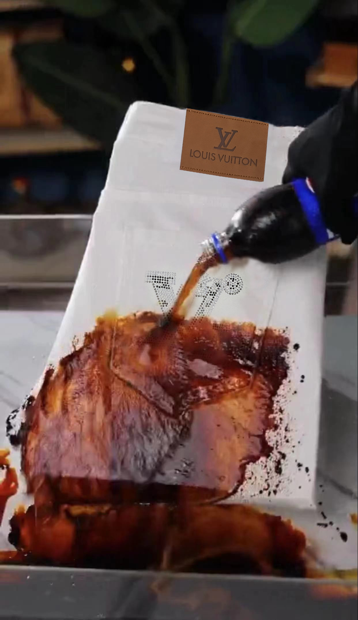 - Design: LV logo in rhinestone