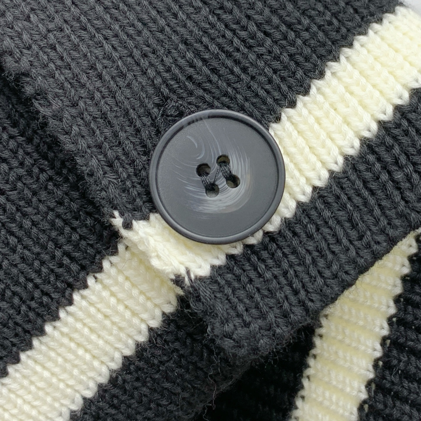 Elevate your wardrobe with this premium wool knit cardigan sweater, featuring a stylish stripe design, perfect for a sophisticated and comfortable look.