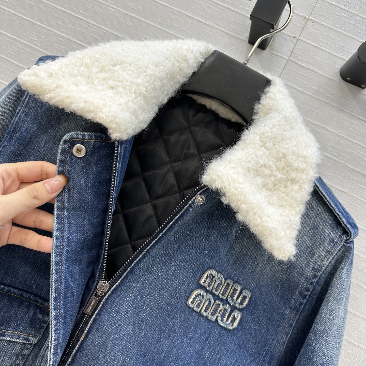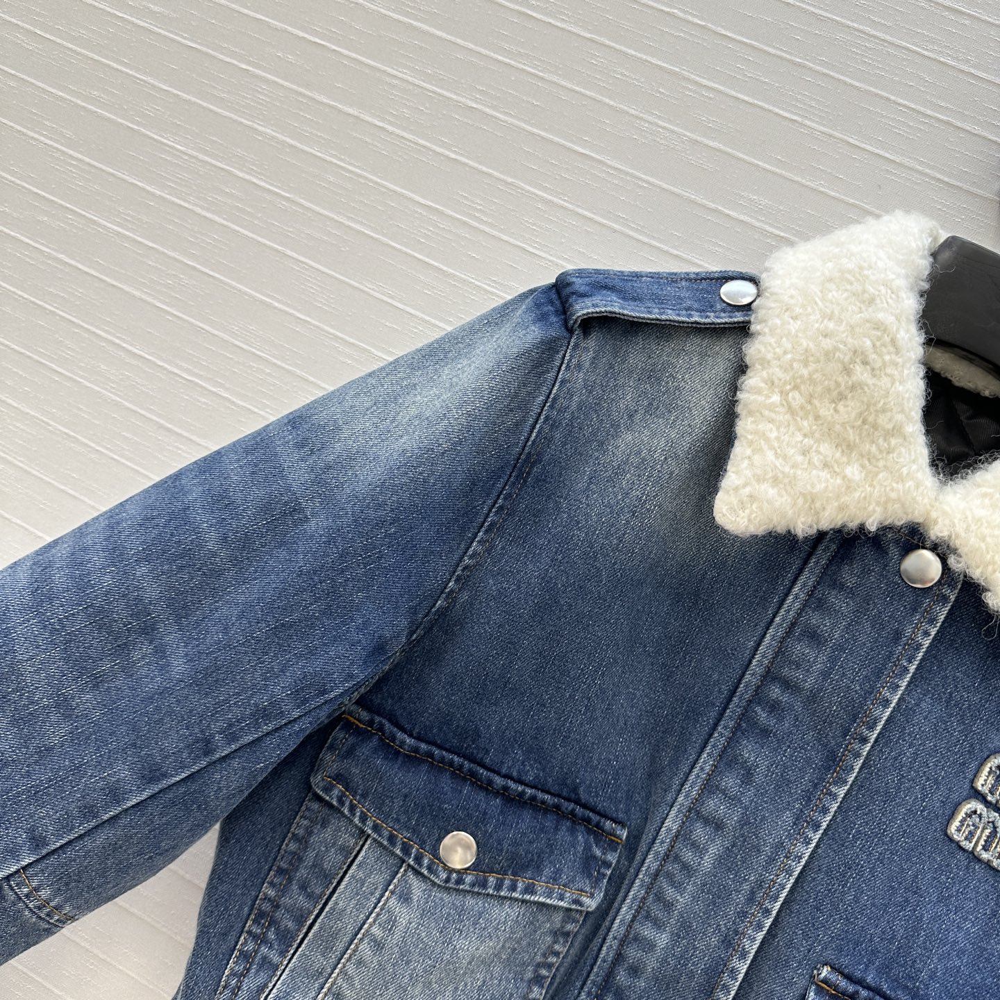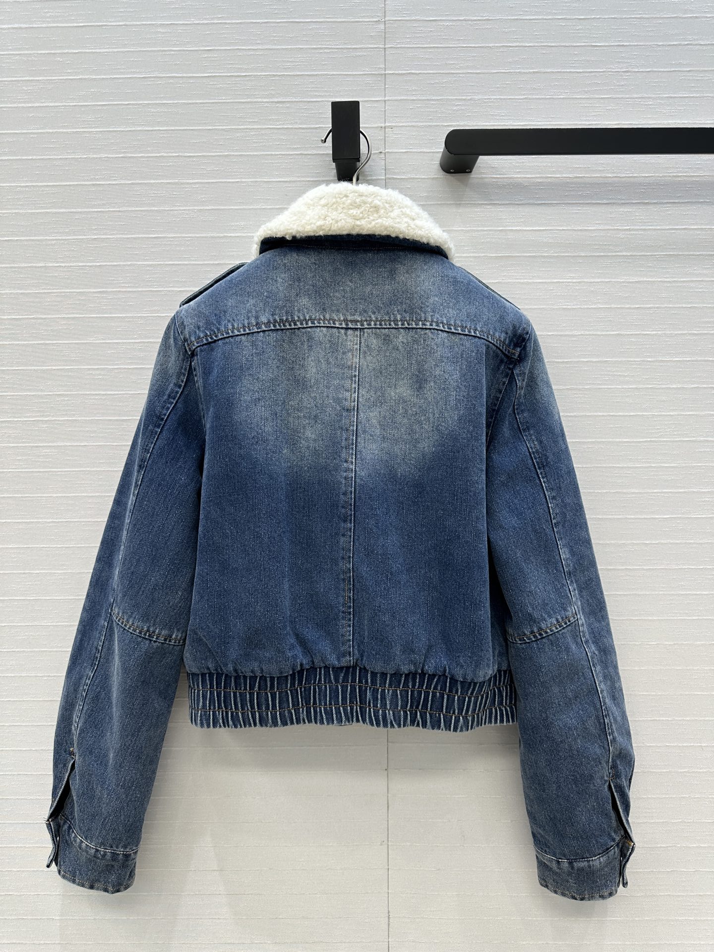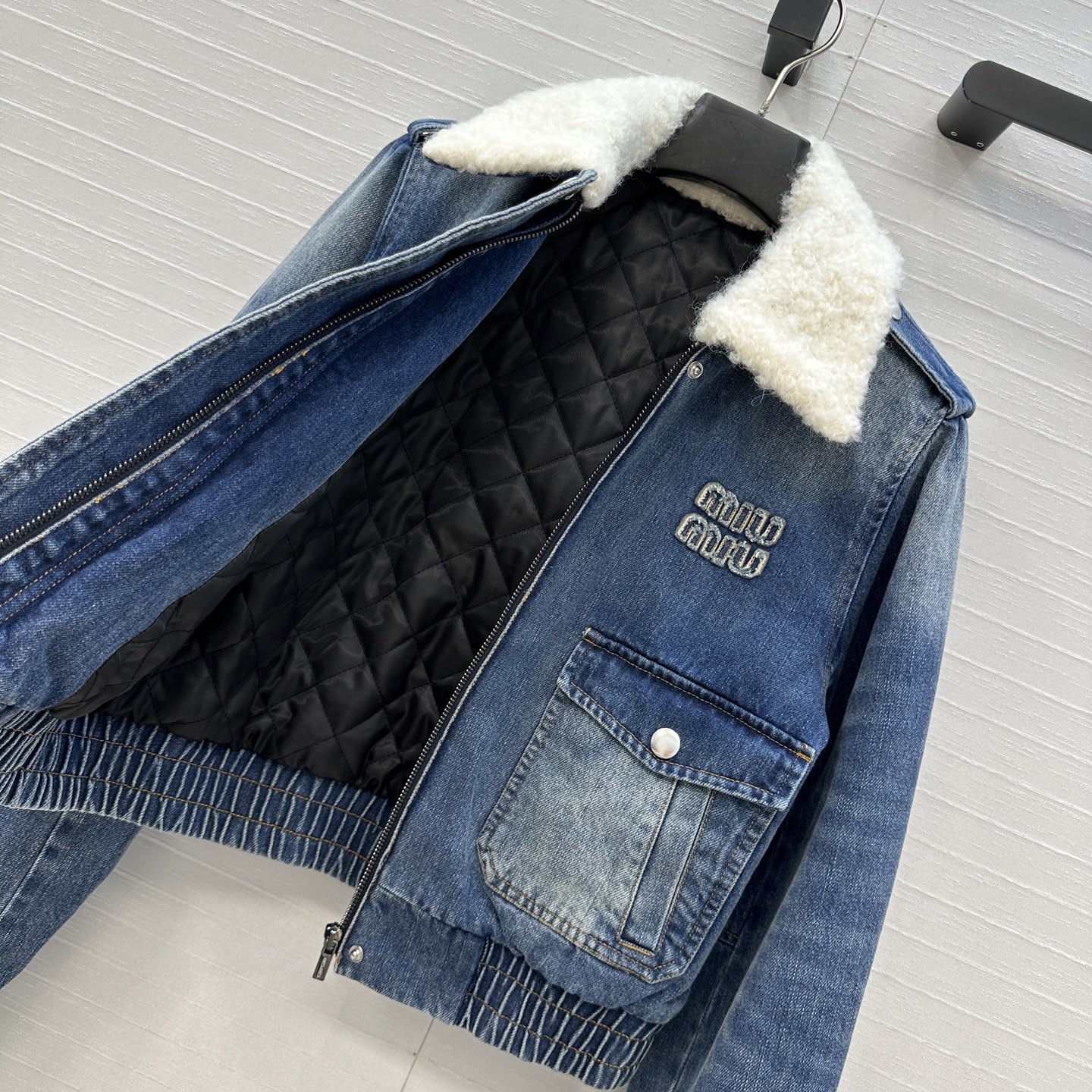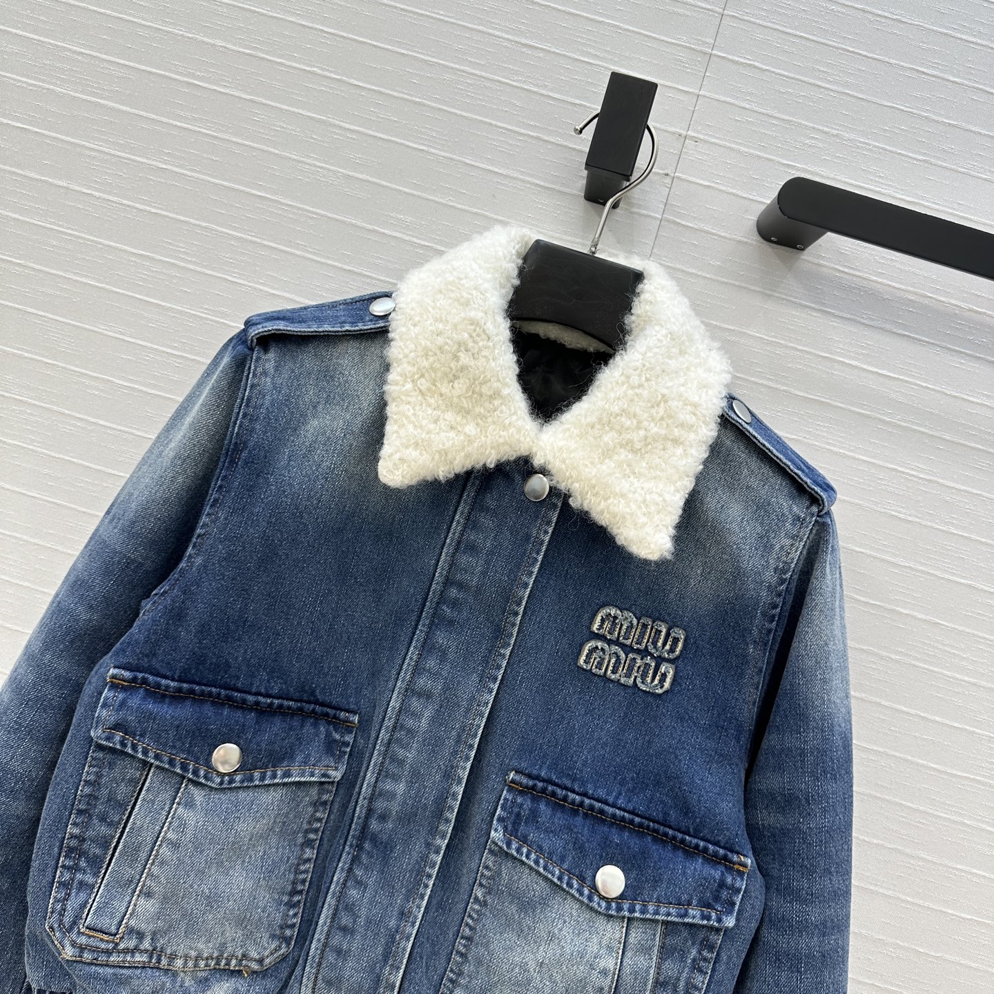 Miu Miu Denim Jacket with Shearling Collar - Women's Fashionable Outerwear