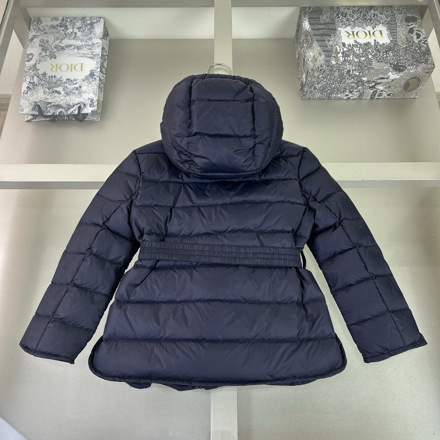 Keep your little one warm with this sophisticated Moncler kids' down jacket, featuring an A-line silhouette and a stylish belt.