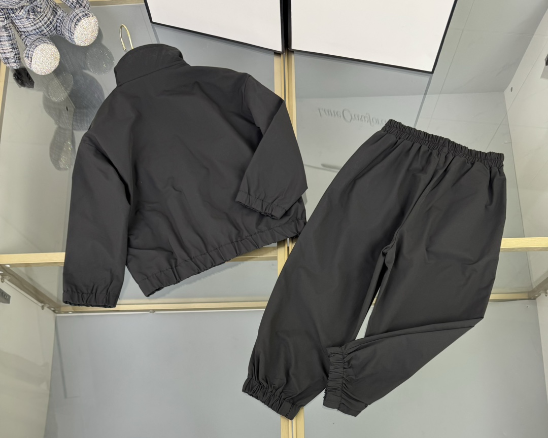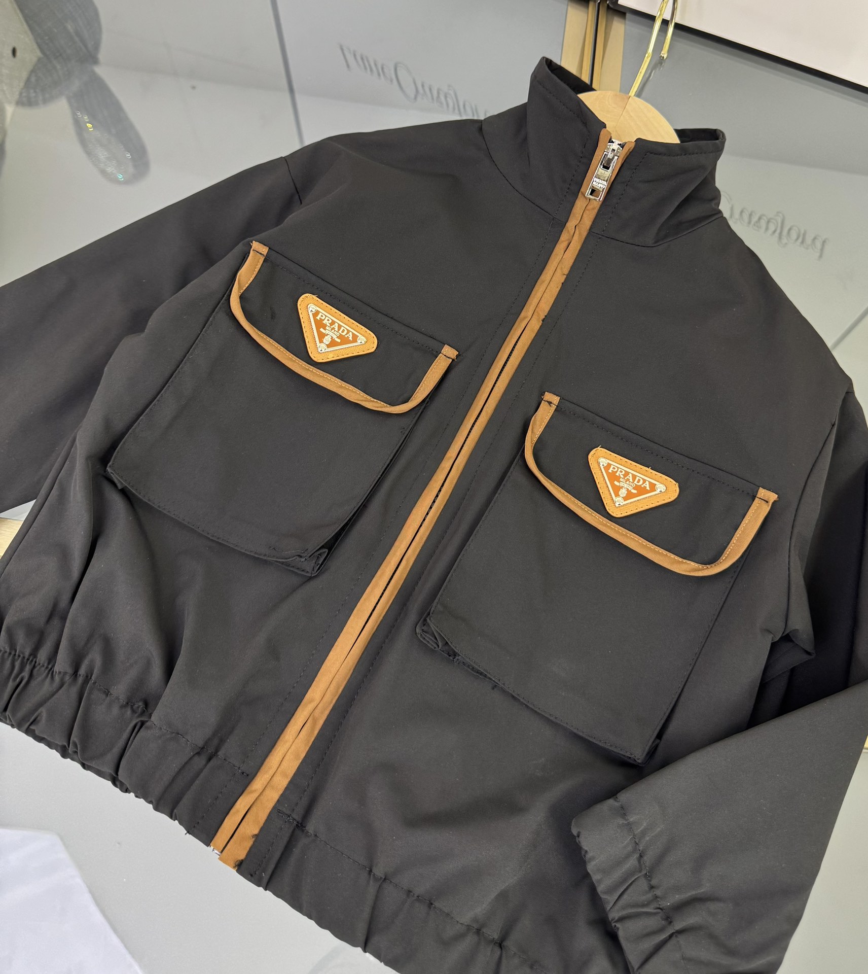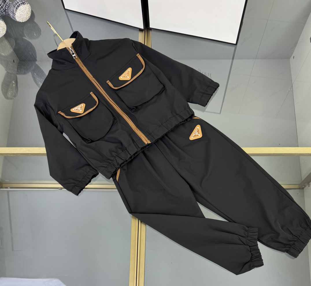This Prada-inspired tracksuit is designed to bring a touch of luxury to your child's wardrobe. Perfect for any occasion, this set combines comfort with high-end style.