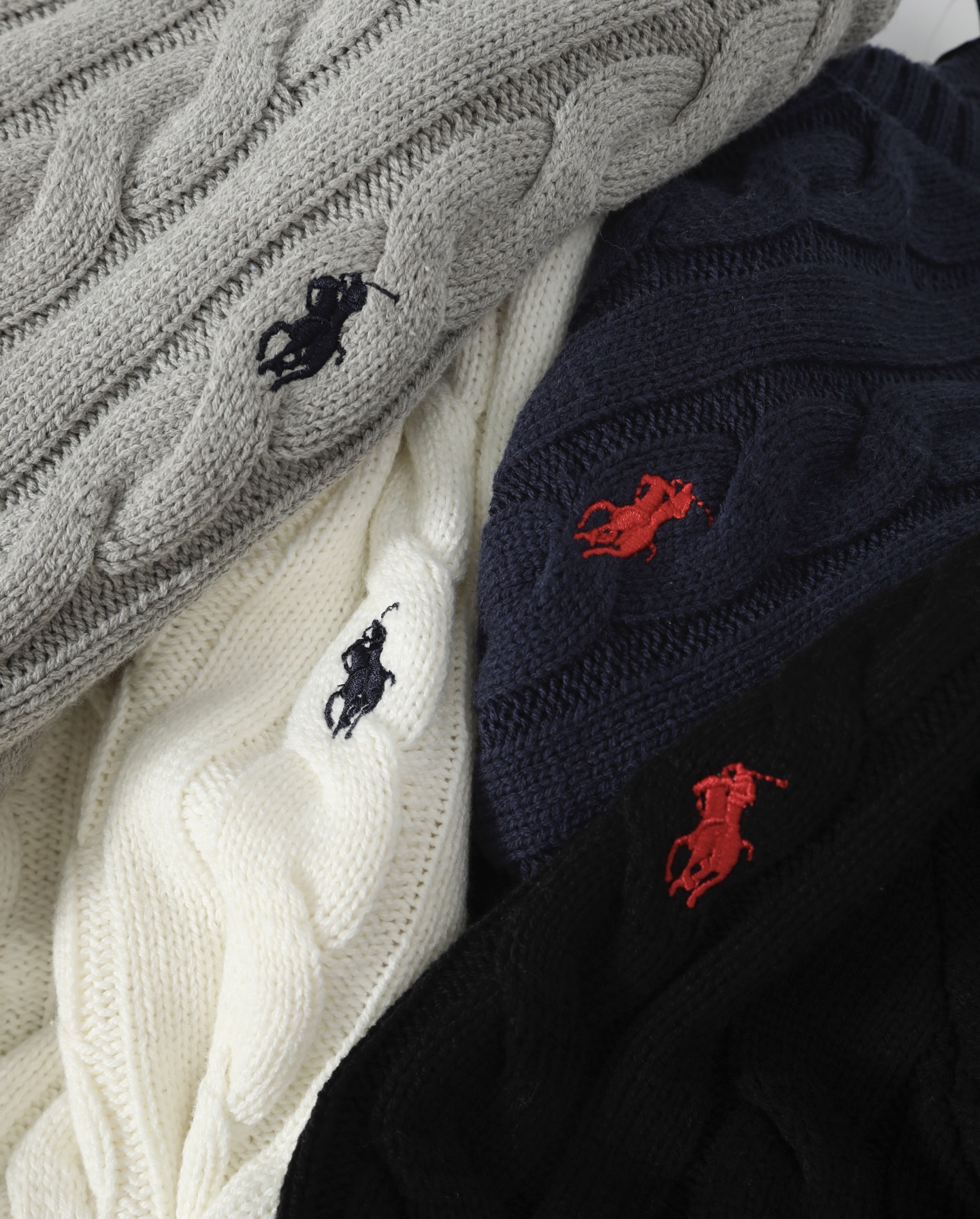 Experience timeless style with this Ralph Lauren cable-knit sweater, crafted from soft cotton and featuring the iconic pony embroidery.