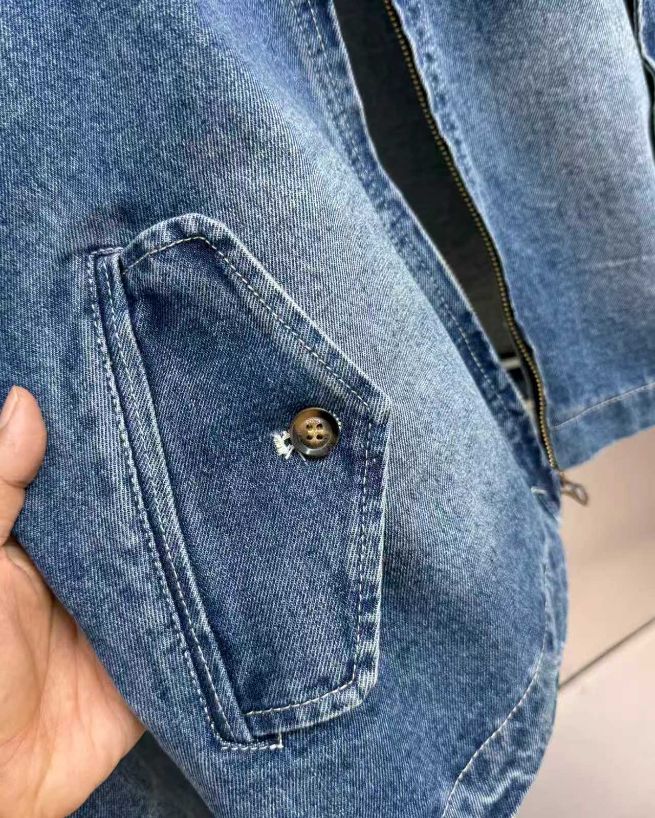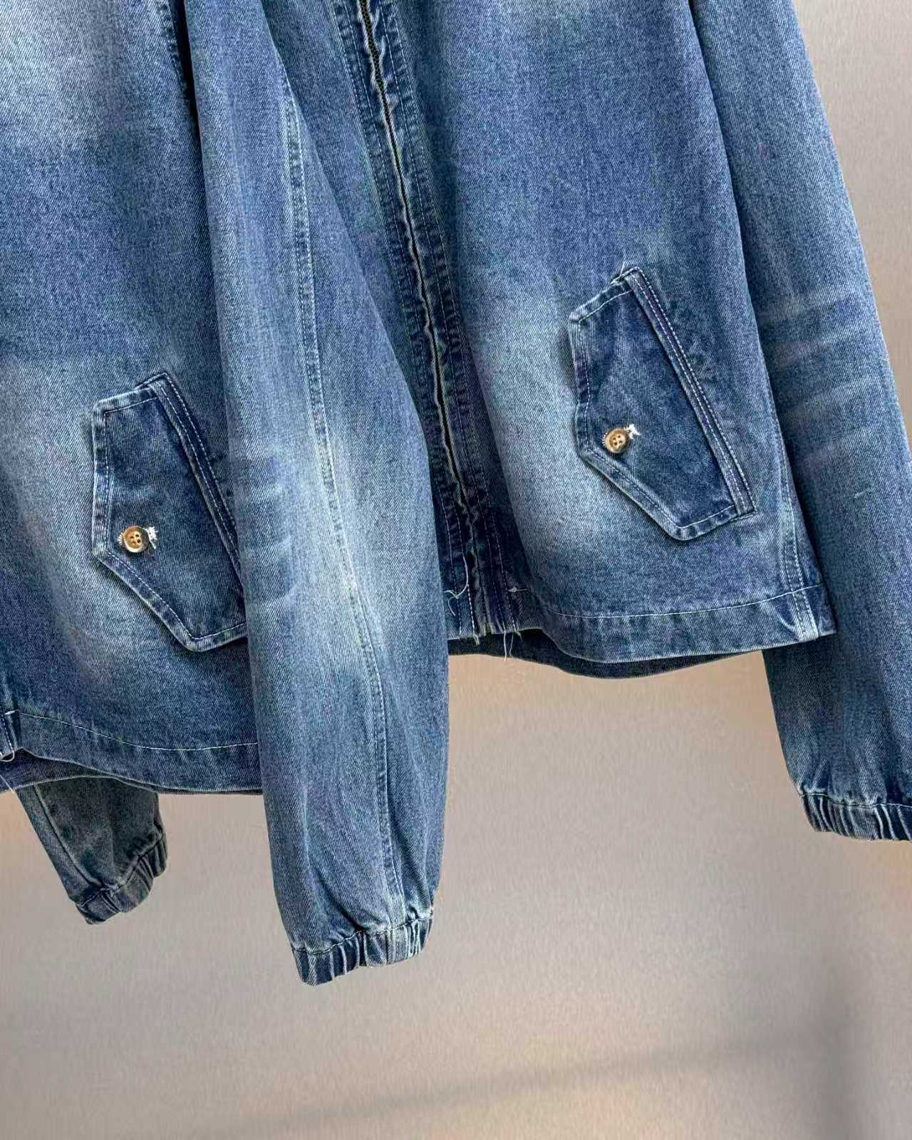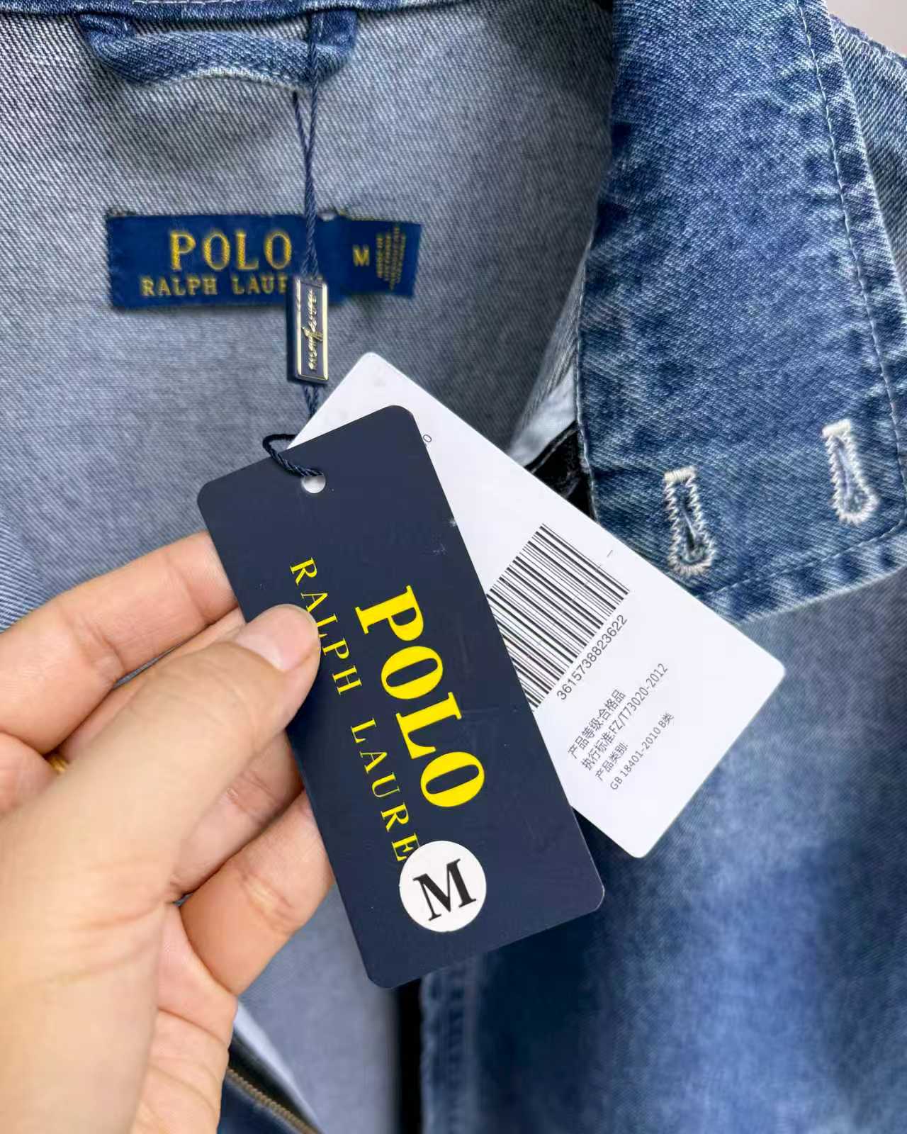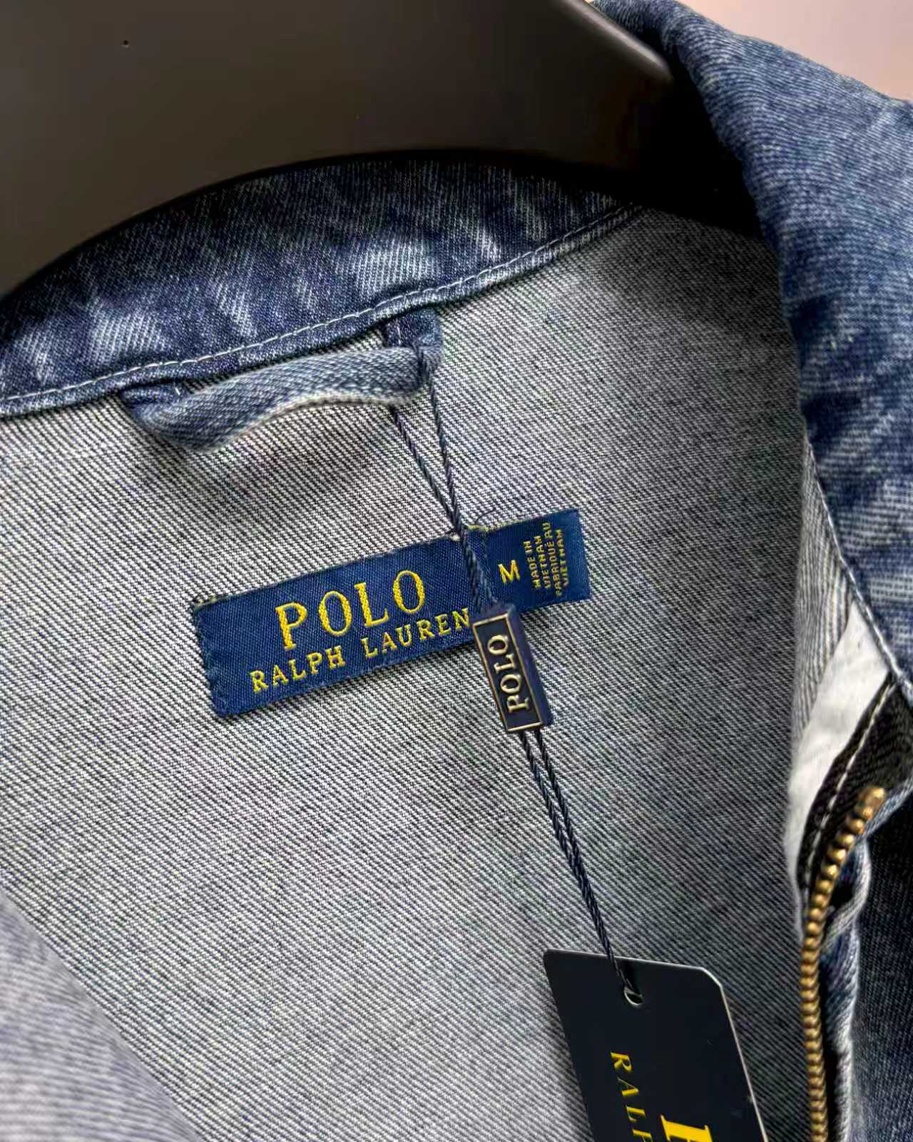 Elevate your style with this Ralph Lauren denim jacket. Features a relaxed fit, stand collar, full-zip closure, and washed blue finish.Perfect for a casual yet stylish look.