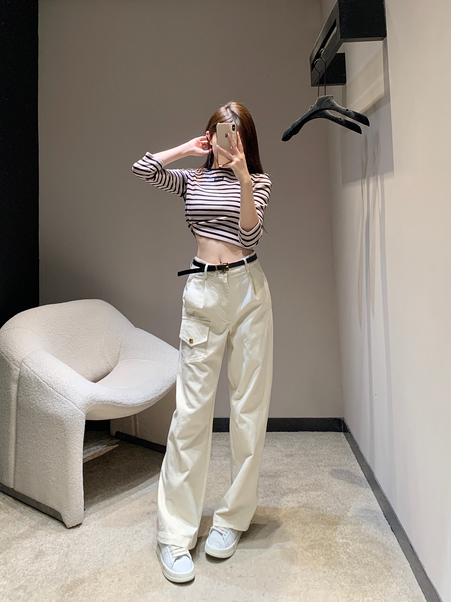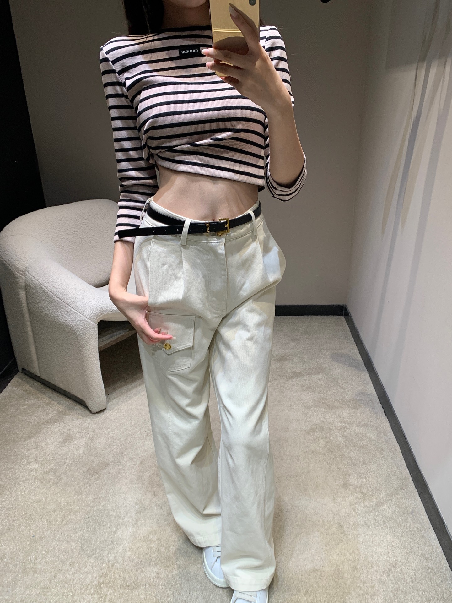 Saint Laurent Women's Straight Leg Jeans with Metal Logo Belt - Off White
