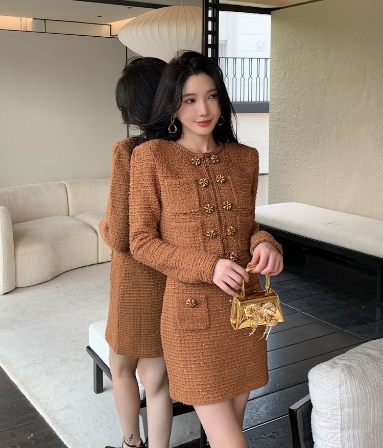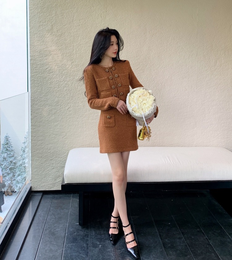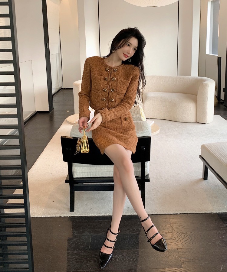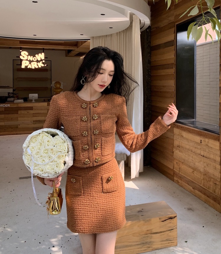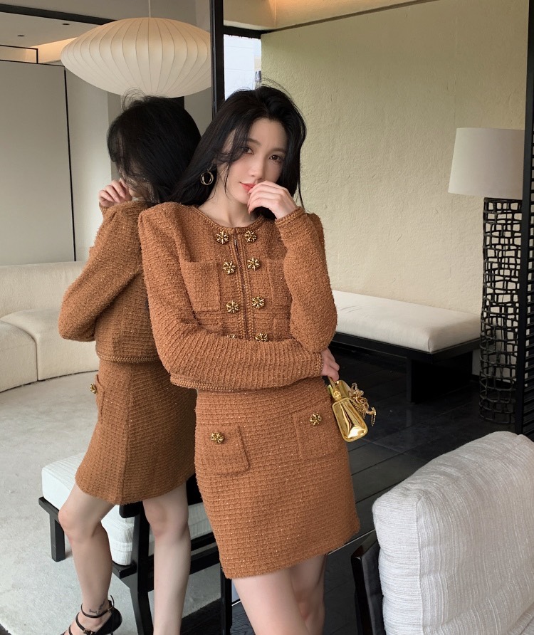 This knit cardigan and skirt set is a must-have for anyone looking to add a touch of sophistication to their wardrobe. With its comfortable fit and elegant design, you'll feel confident and stylish wherever you go.