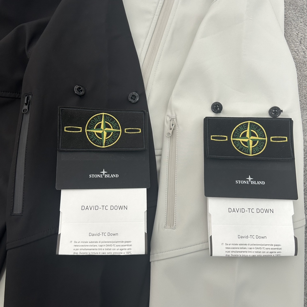 Stay stylish and protected with this Stone Island softshell jacket, featuring a functional design, double zippers, and a comfortable fit. Perfect for any season.