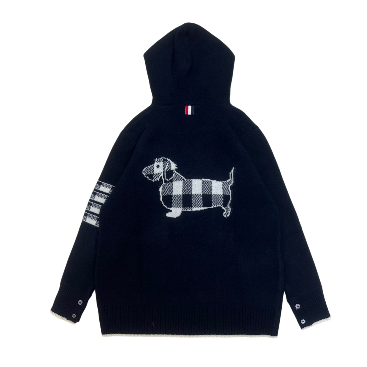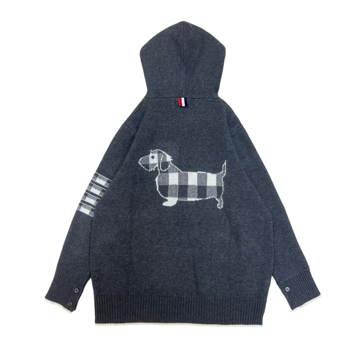 Thom Browne Four-Bar Back Plaid Corgi Couple Hooded Zip Knit Cardigan