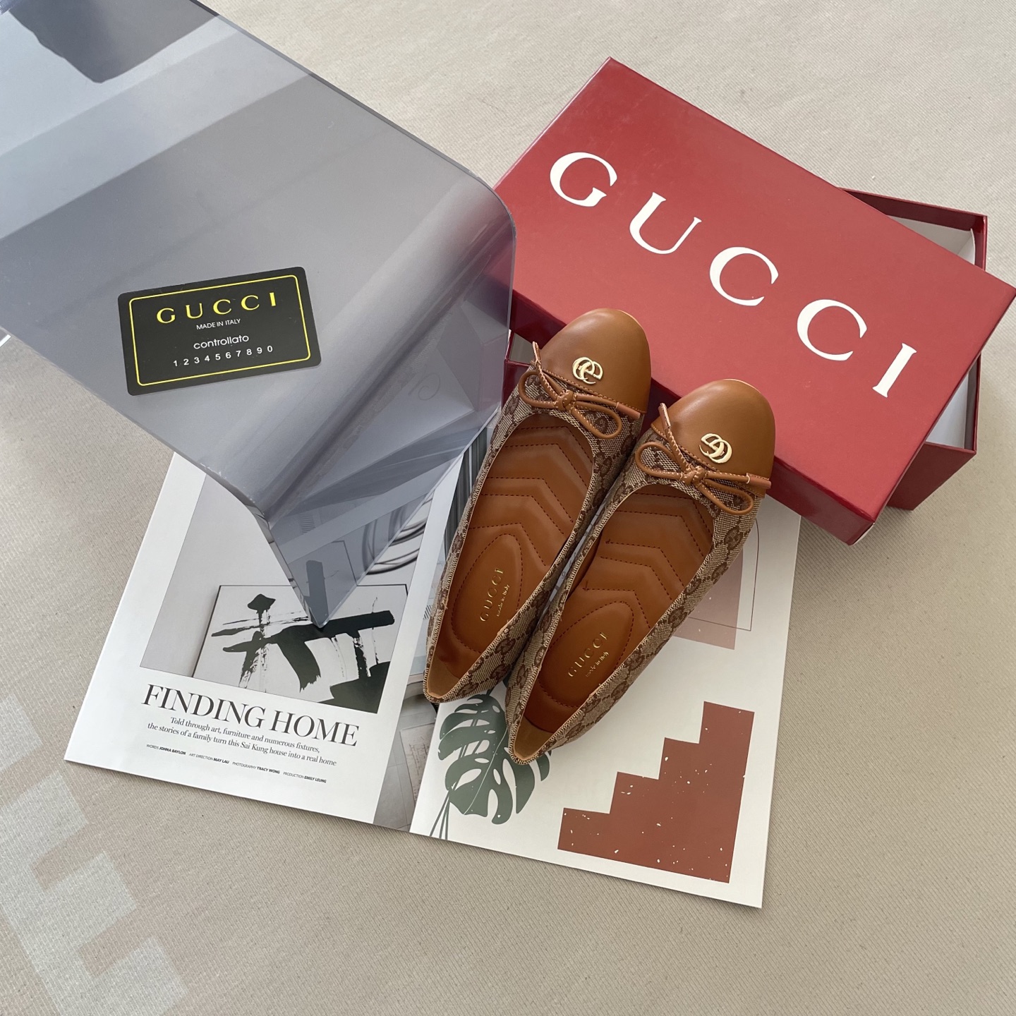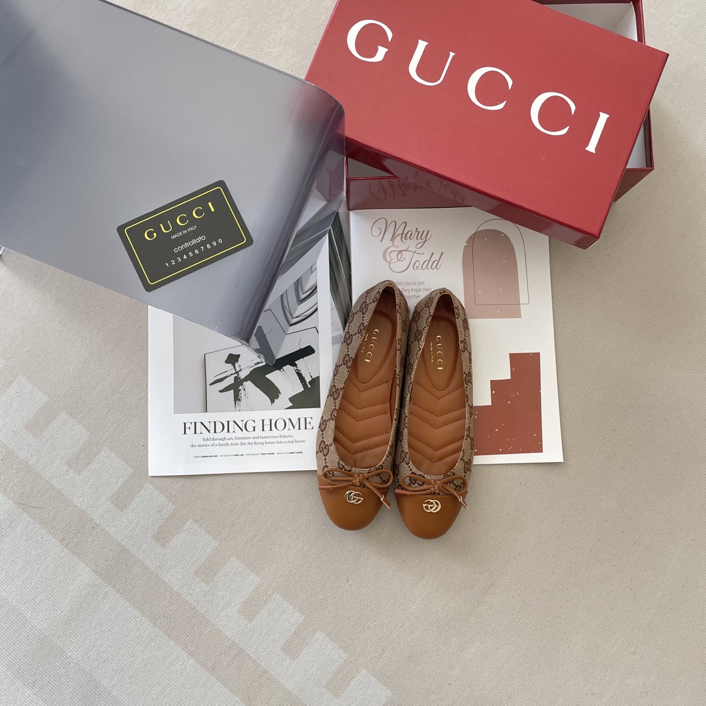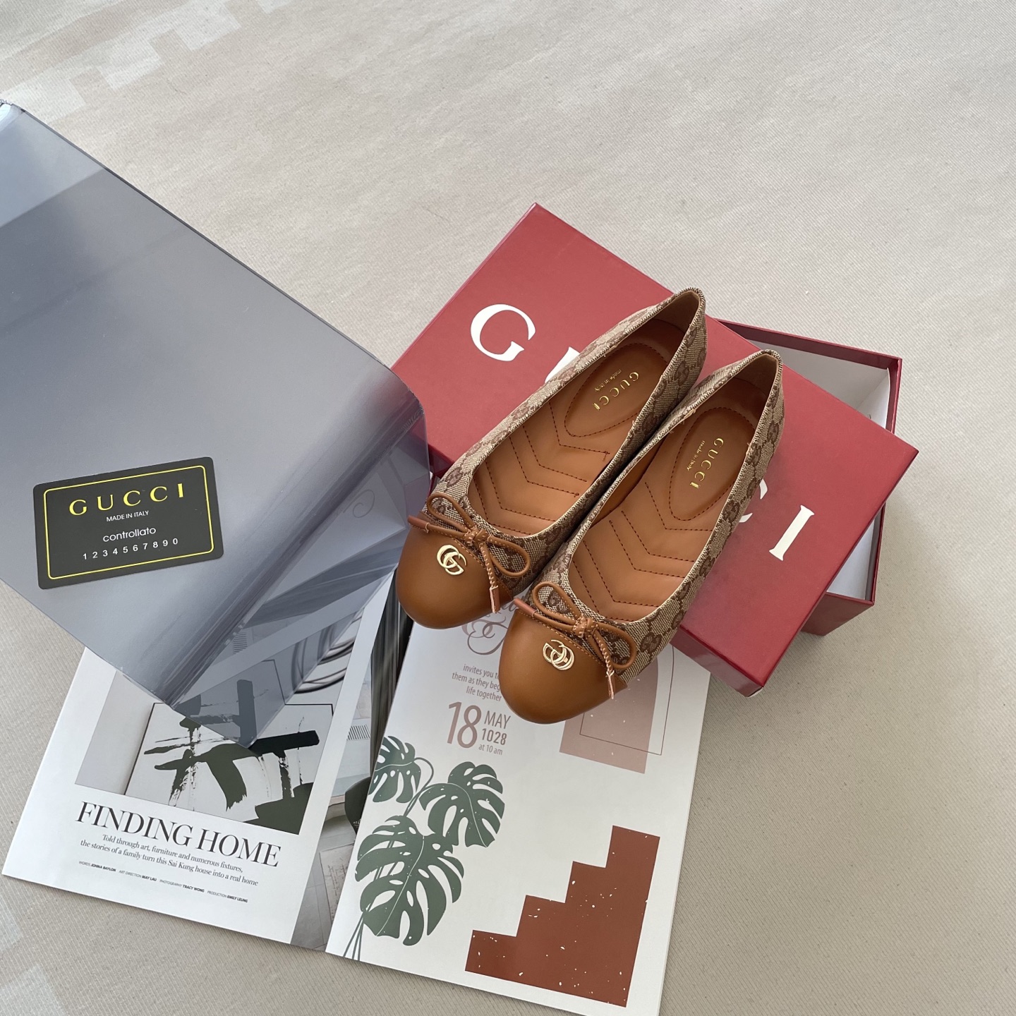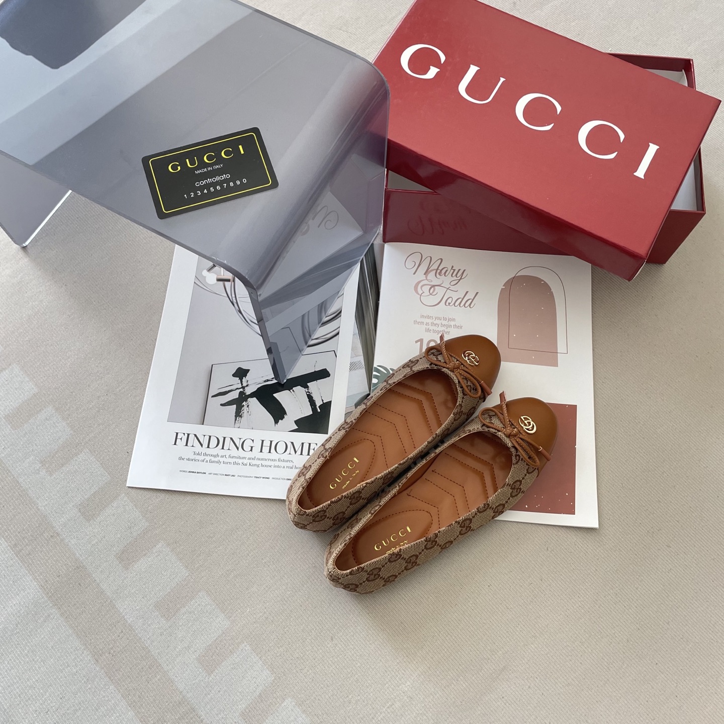 Step into style with Gucci's 25SS ballet flats. Crafted with super-fiber leather, printed fabric, and a durable leather sole. Complete with authentic packaging.