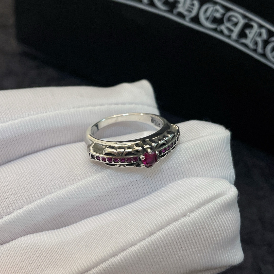Elevate your style with the Chrome Hearts ring, featuring vintage craftsmanship and pink diamonds. Sterling silver with a unique cross design.
