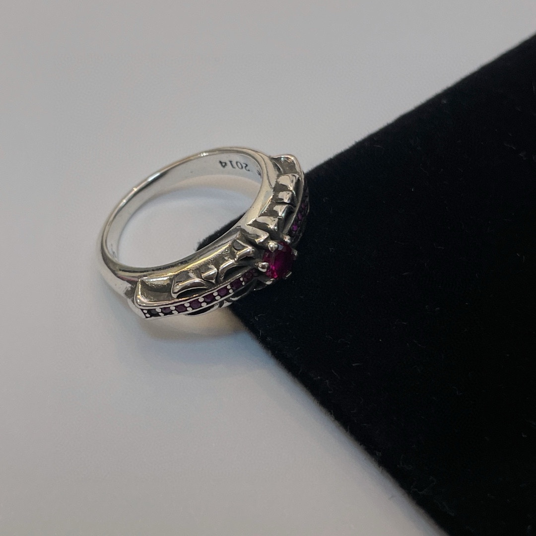 Chrome Hearts Vintage Pink Diamond Ring, Cross Design, Sterling Silver