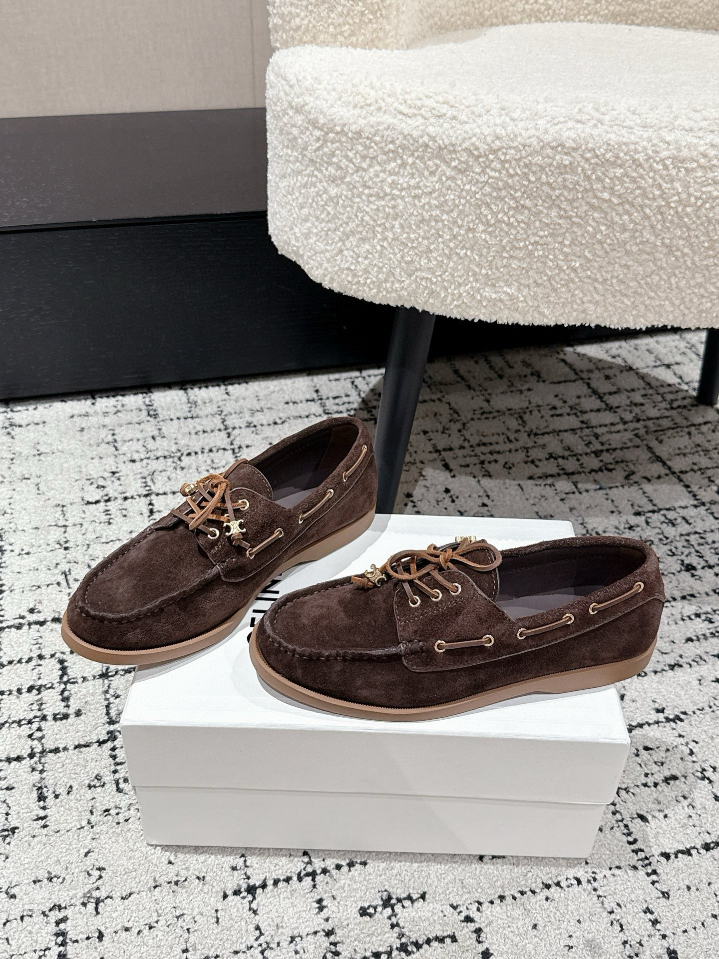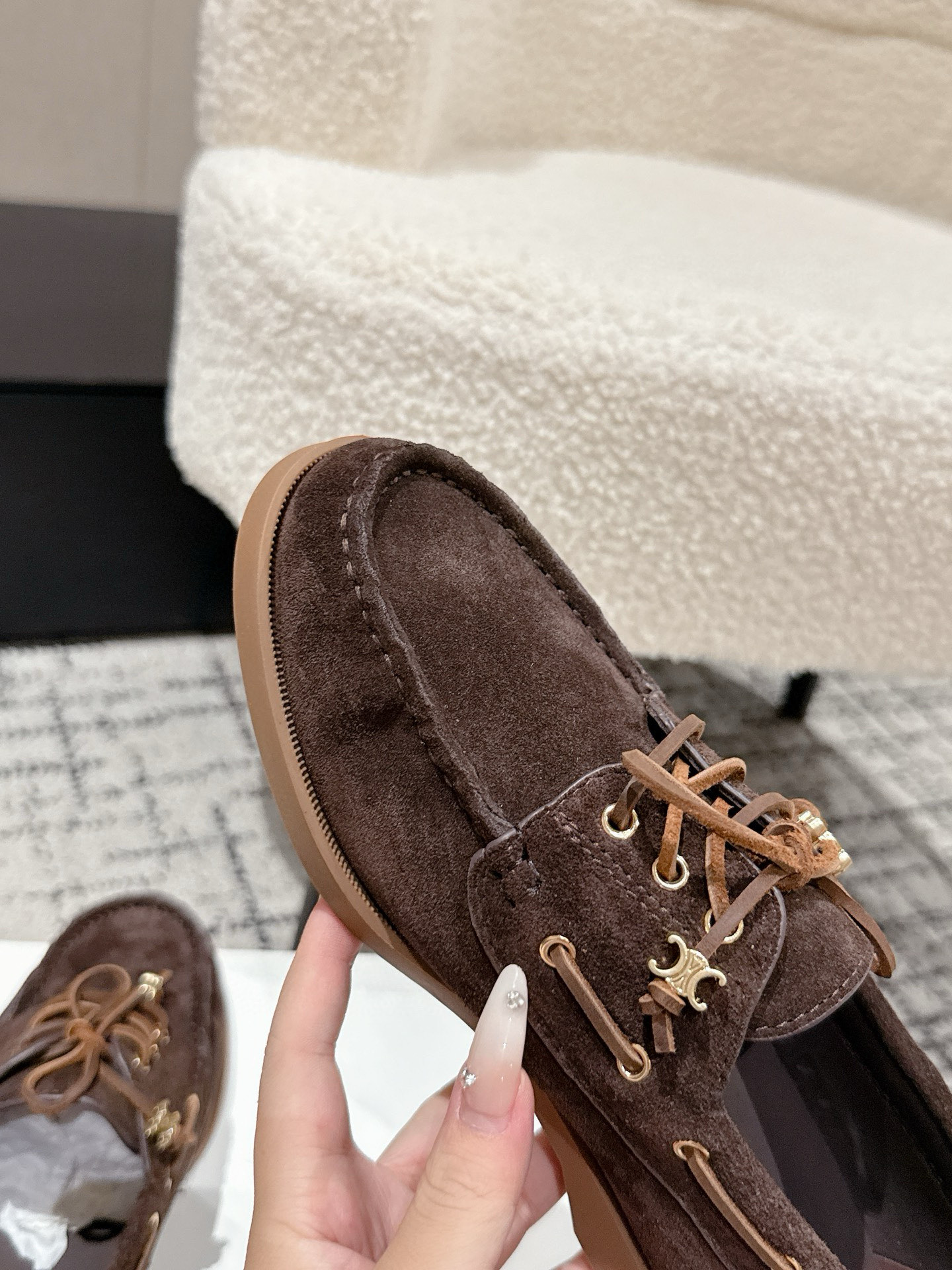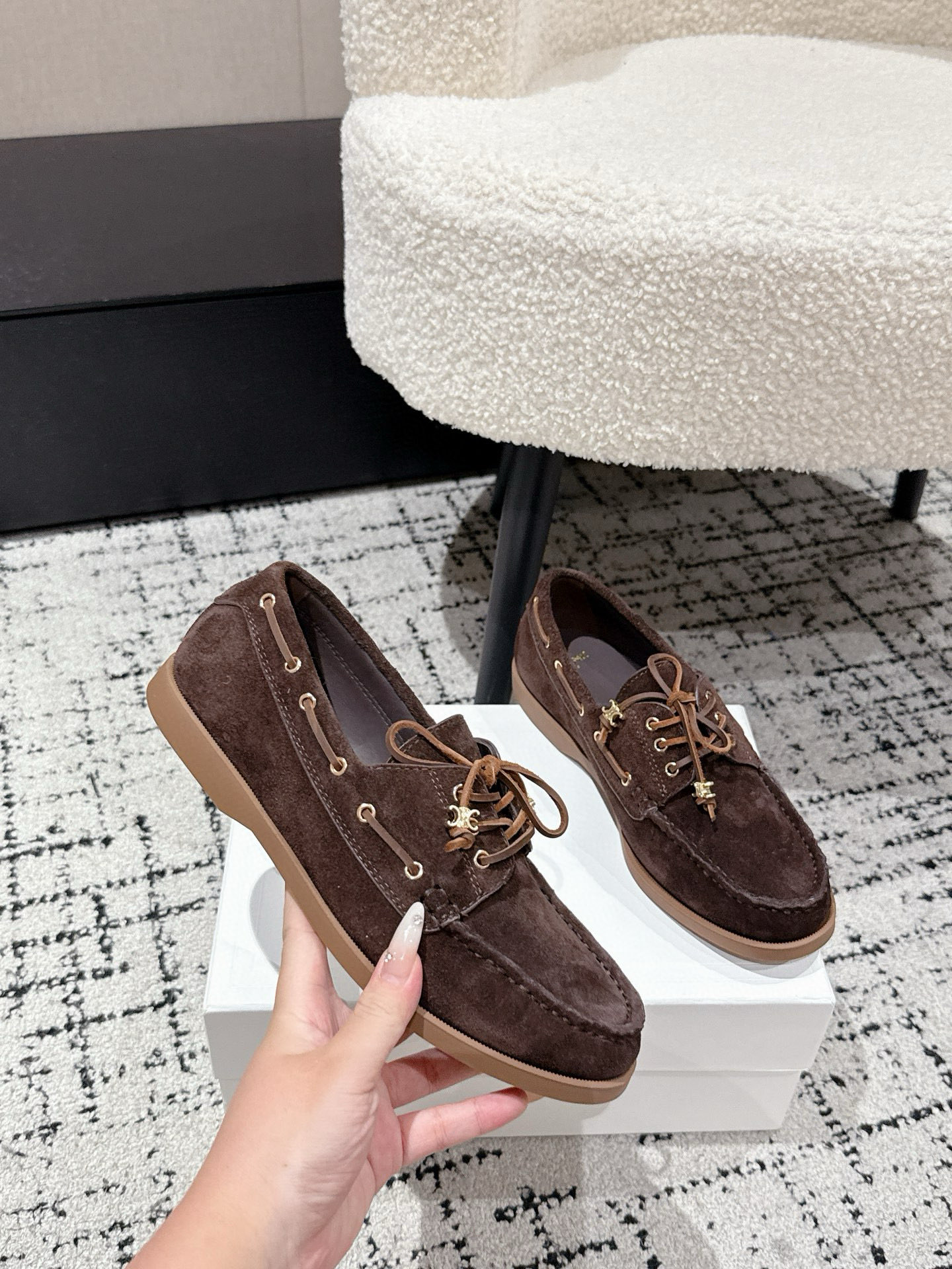 Celine Women's Flat Brown Suede Leather Loafers - Retro Style, Lightweight