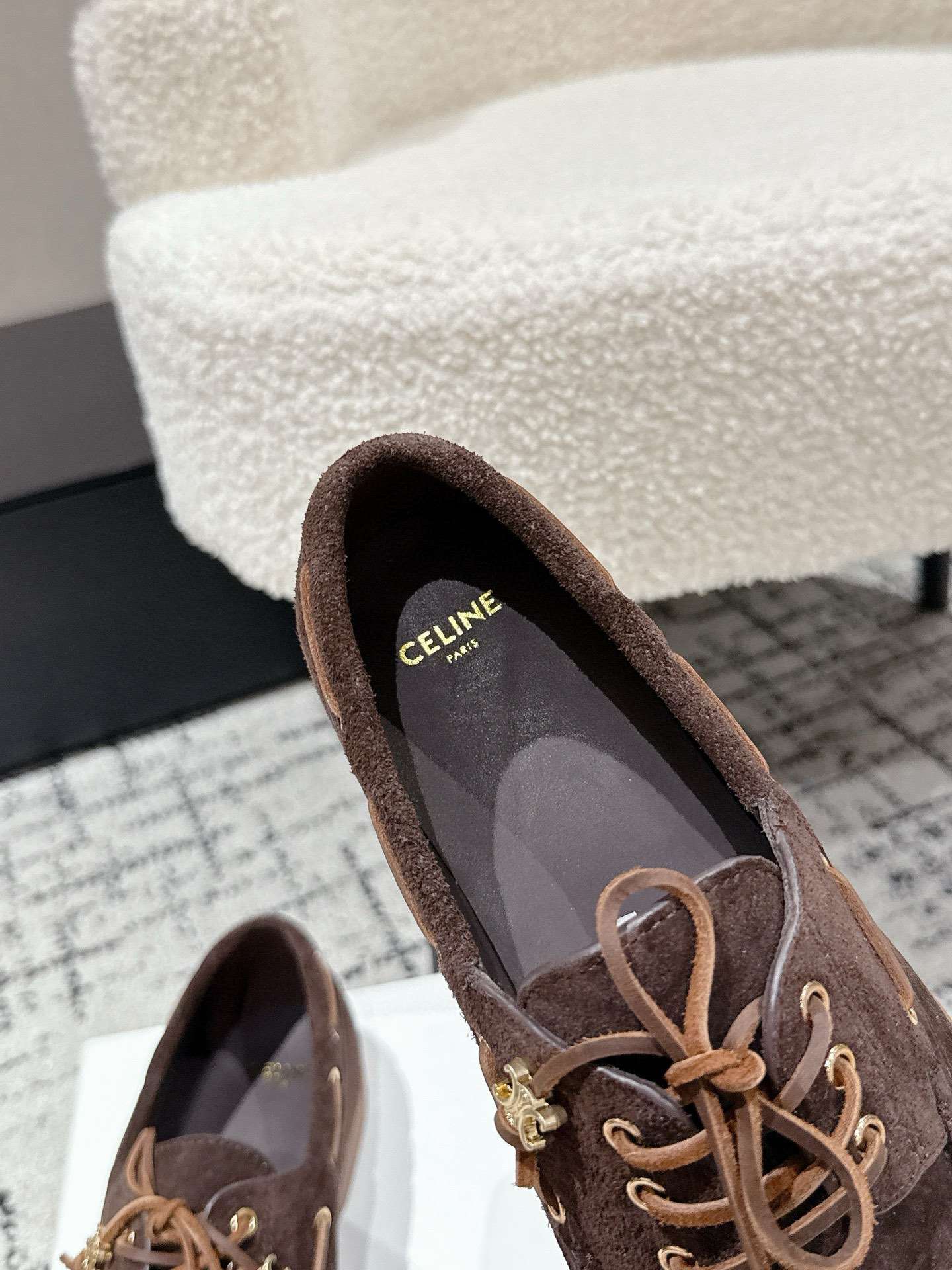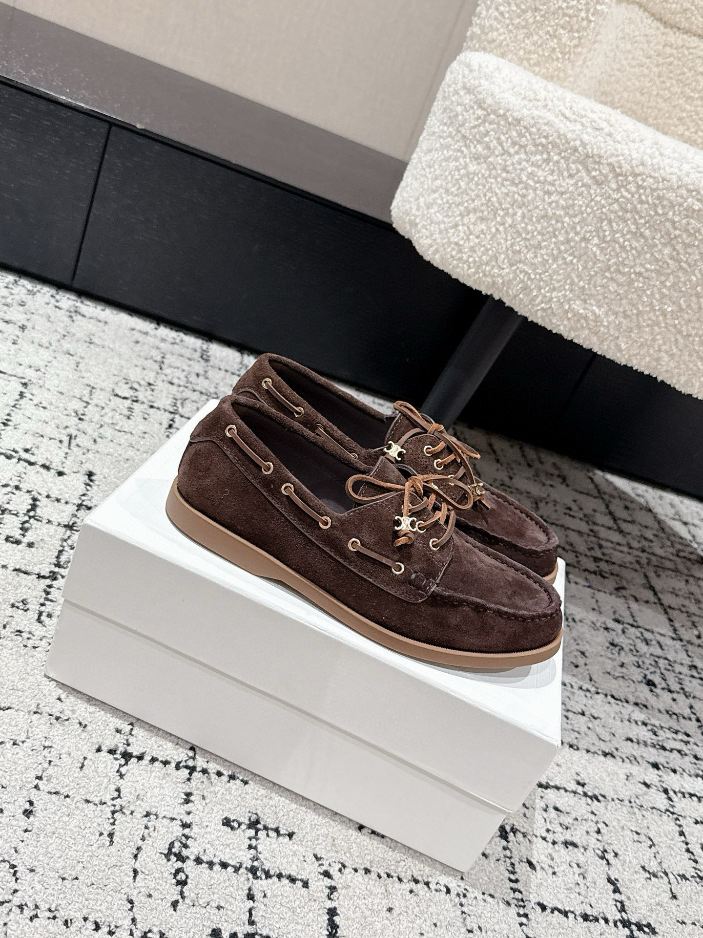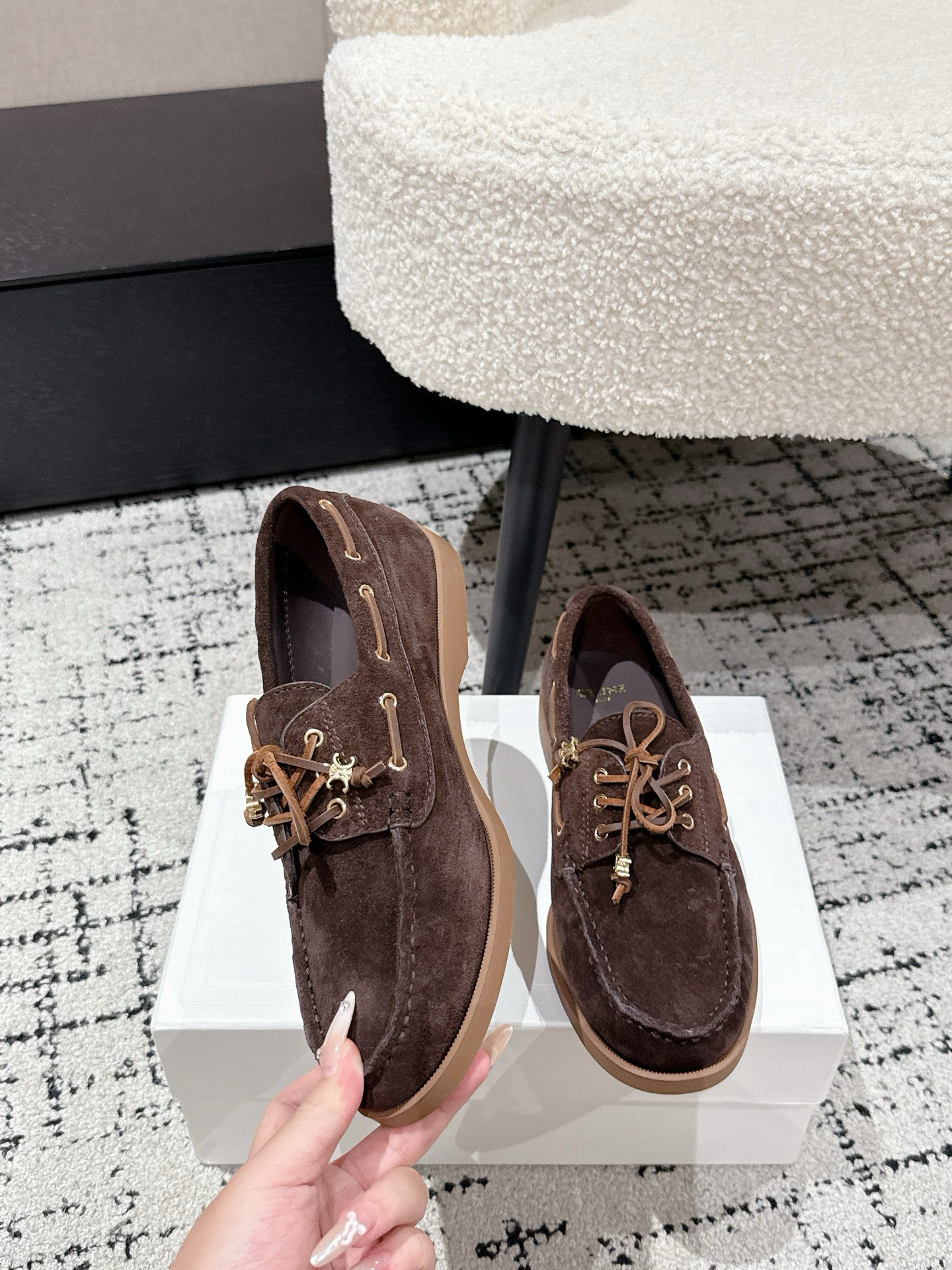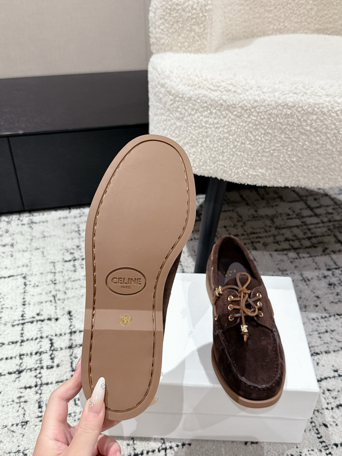 Celine Women's Flat Brown Suede Leather Loafers - Retro Style, Lightweight