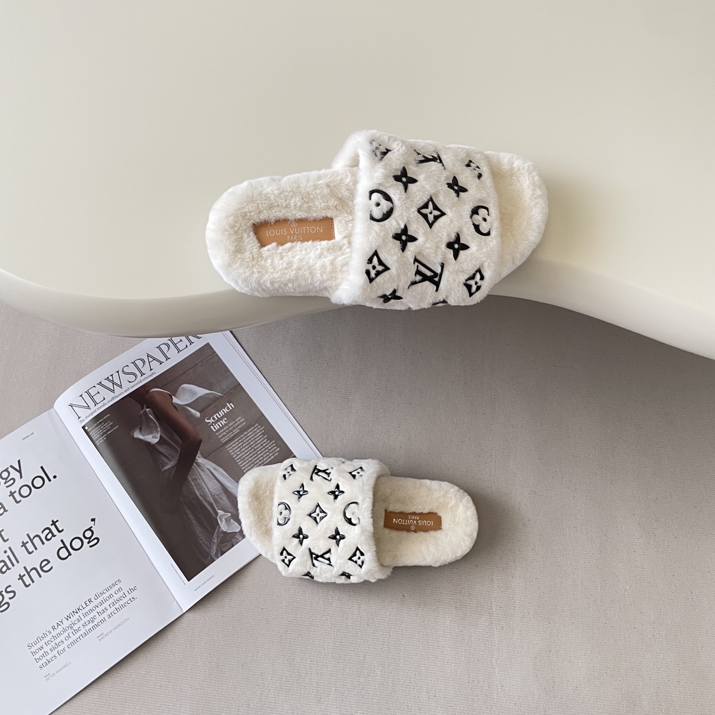 Indulge in the luxurious comfort of the Louis Vuitton 25SS Starry Wool Flat Mules, designed for the discerning individual who appreciates both style and relaxation.