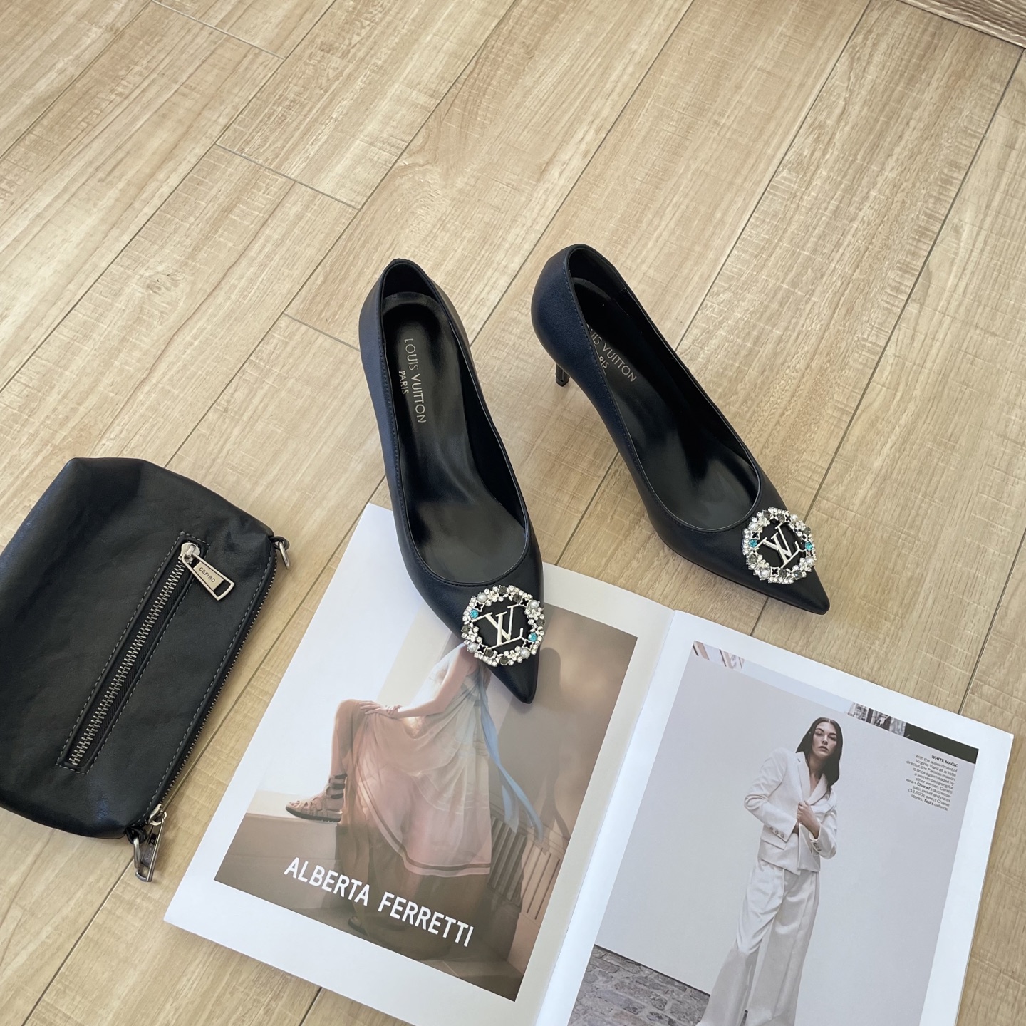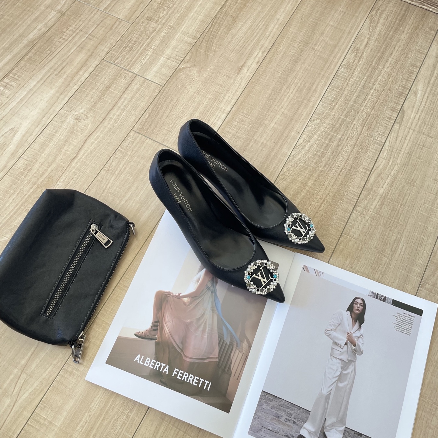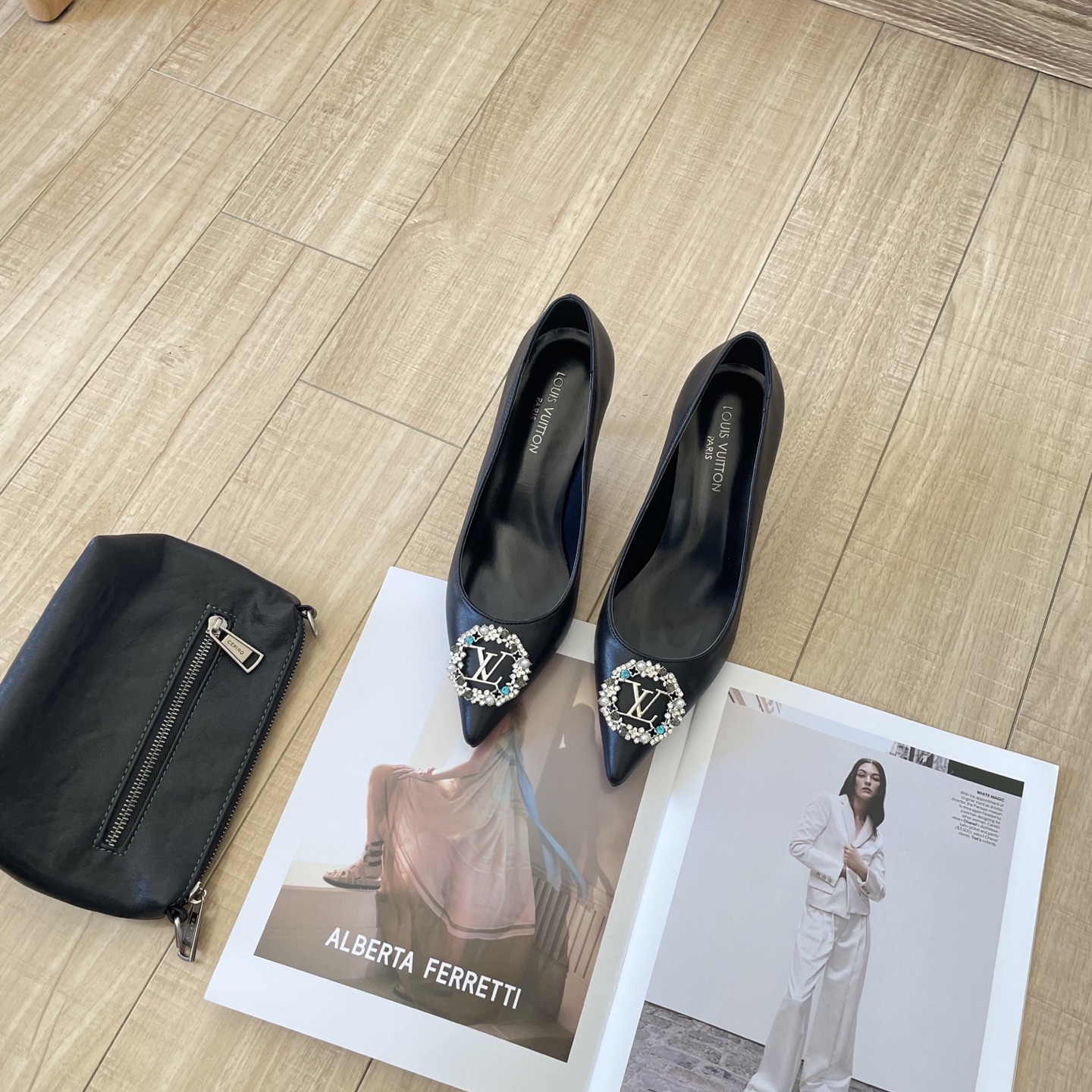 Elevate your style with these luxurious Louis Vuitton pumps featuring a sleek, pointed-toe design and elegant crystal embellishments.