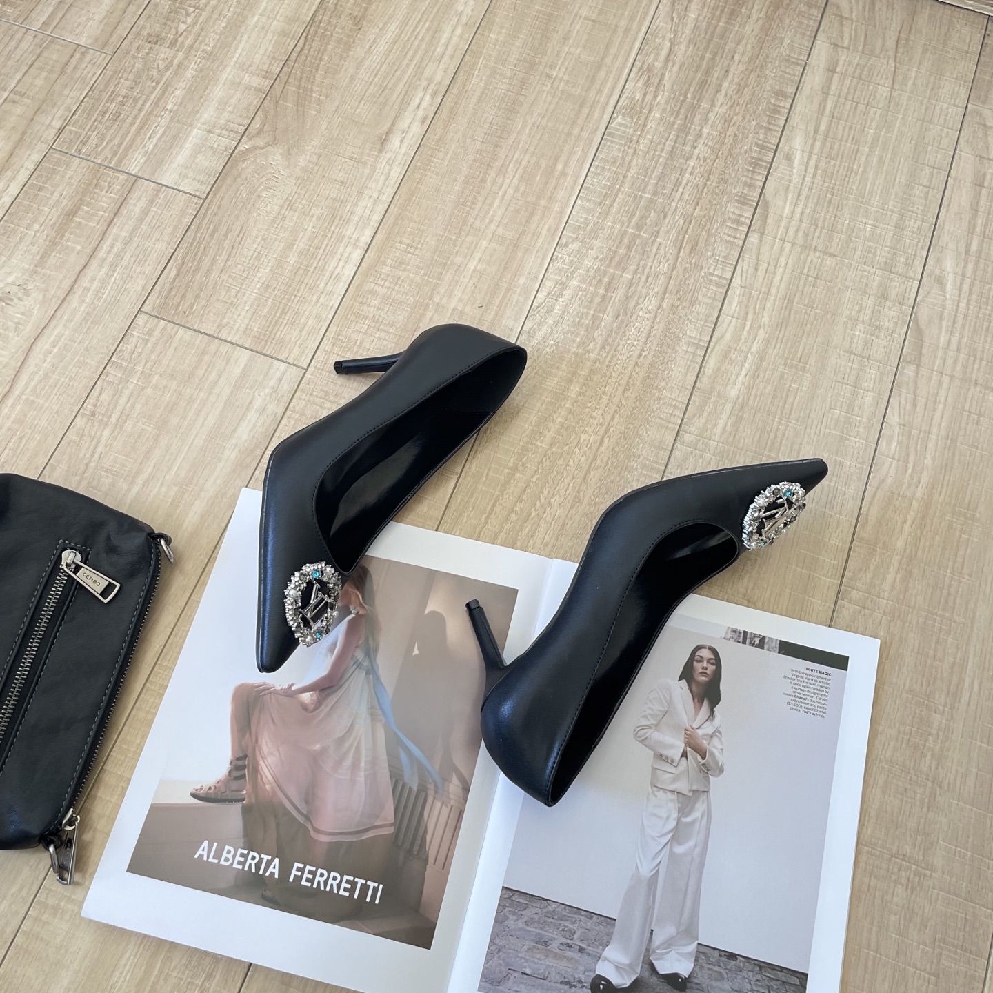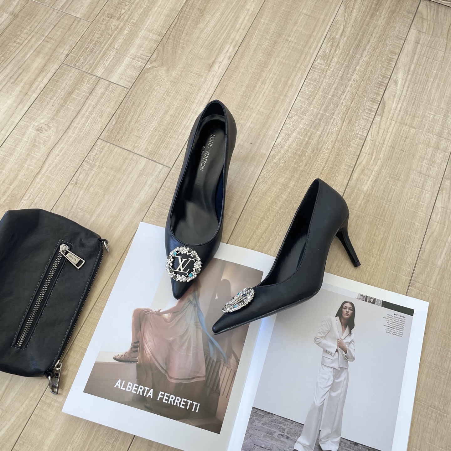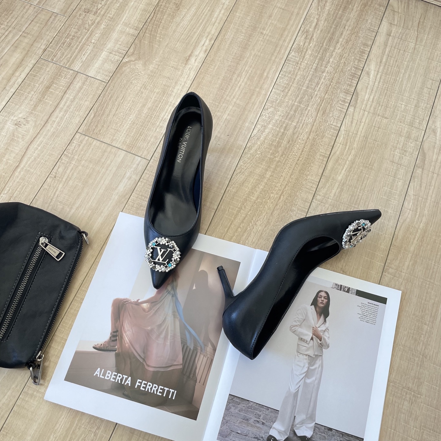 Elevate your style with these luxurious Louis Vuitton pumps featuring a sleek, pointed-toe design and elegant crystal embellishments.