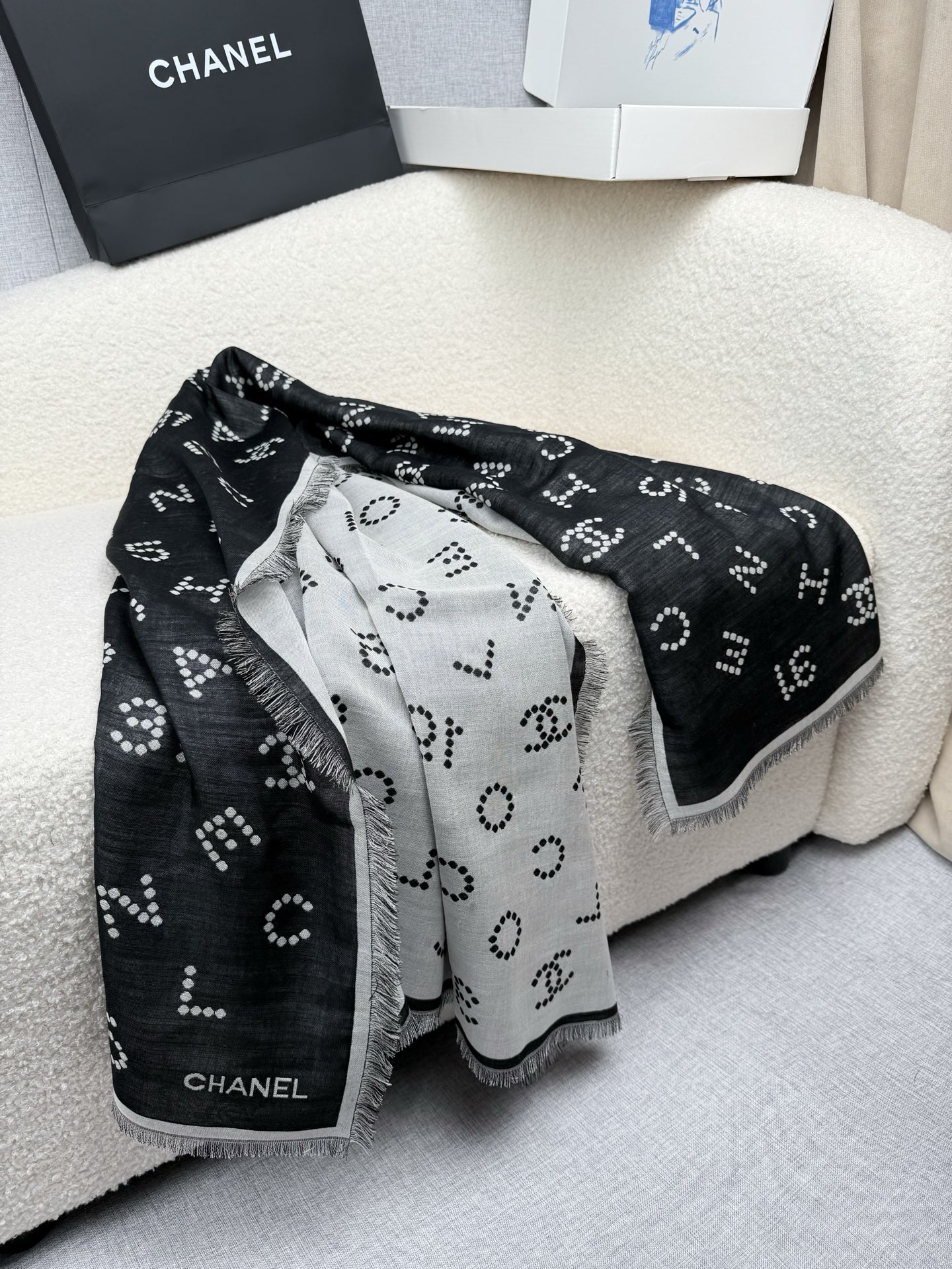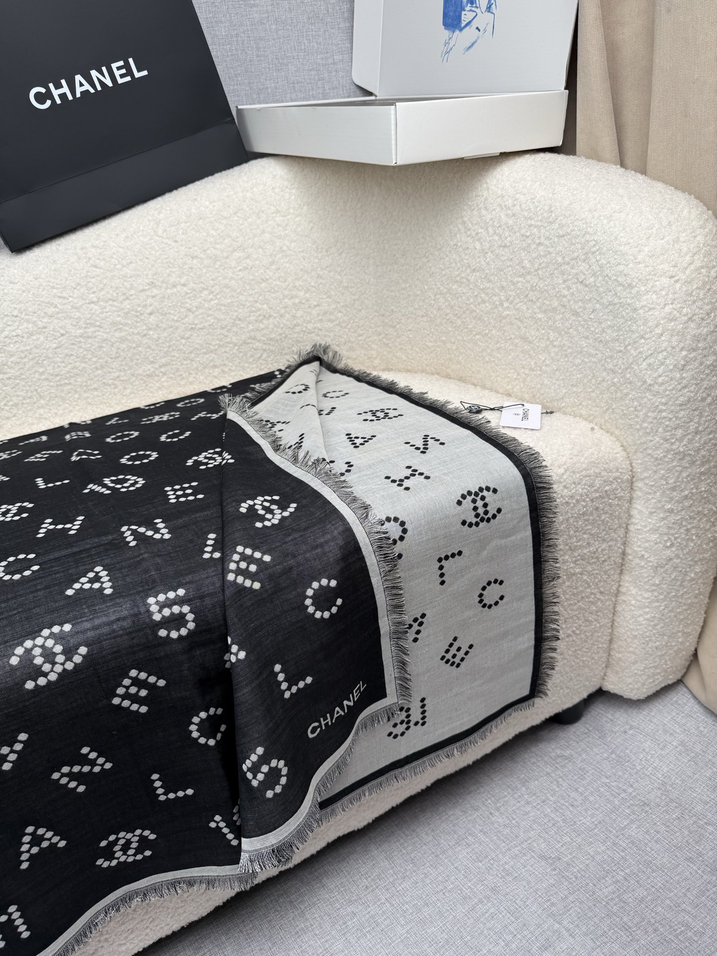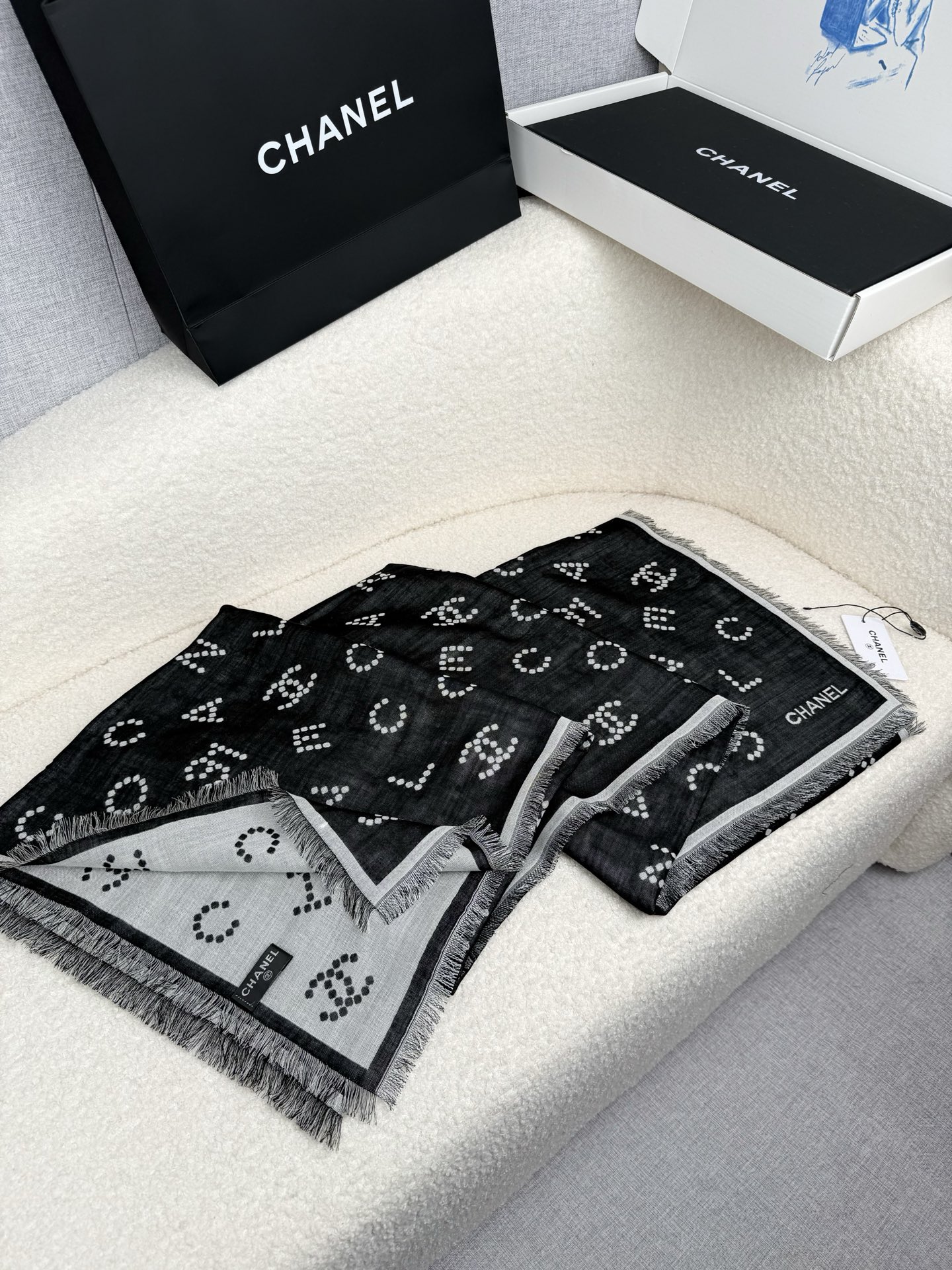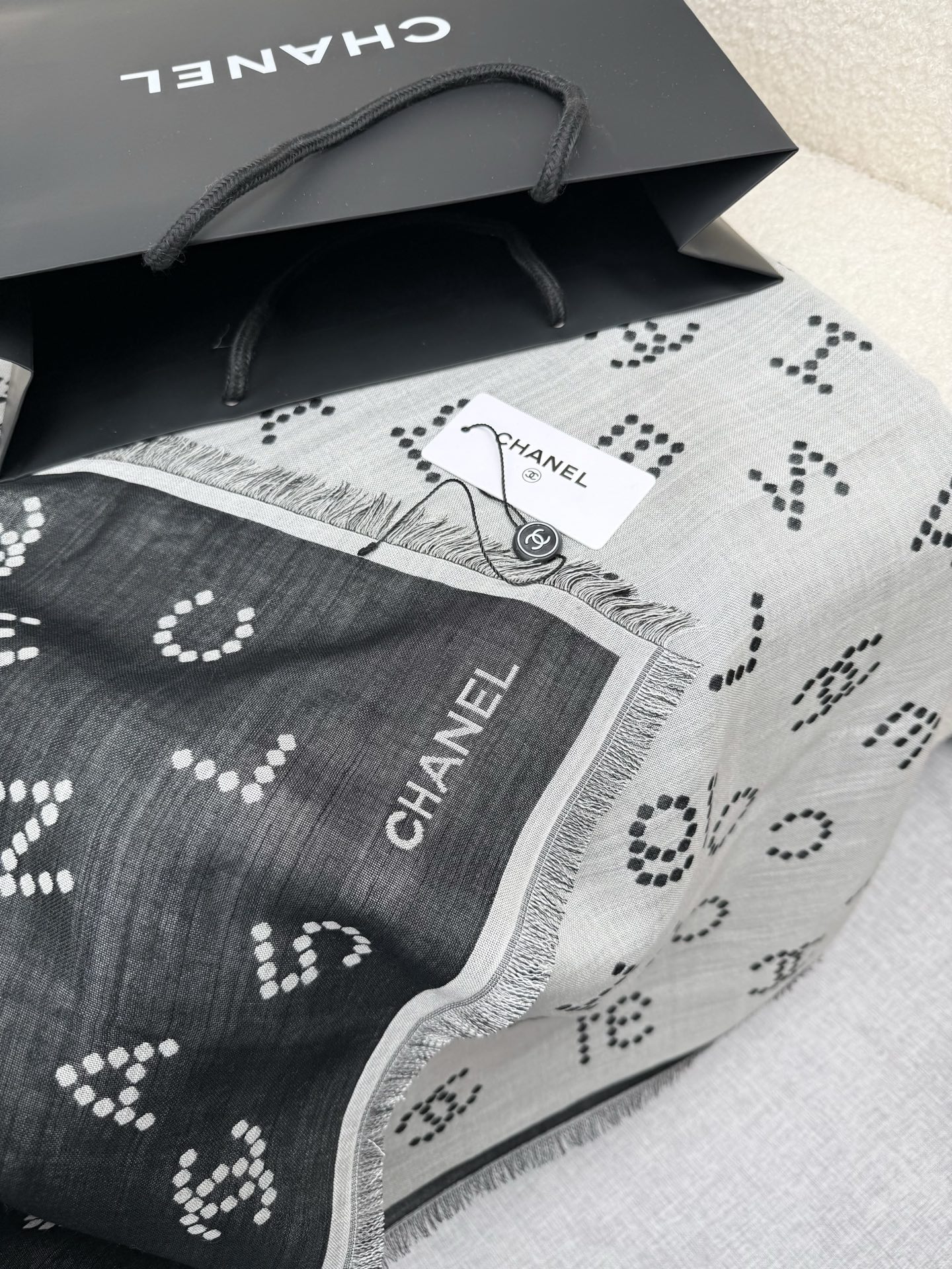 This Chanel double-sided jacquard scarf is a must-have for the season. Its versatile design and luxurious feel make it a standout accessory.