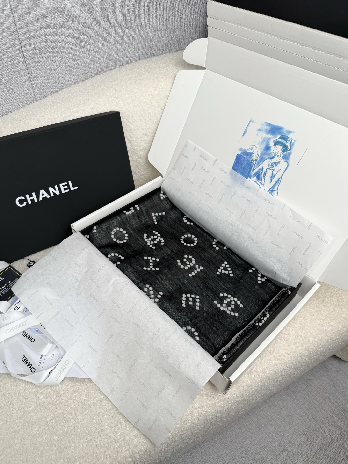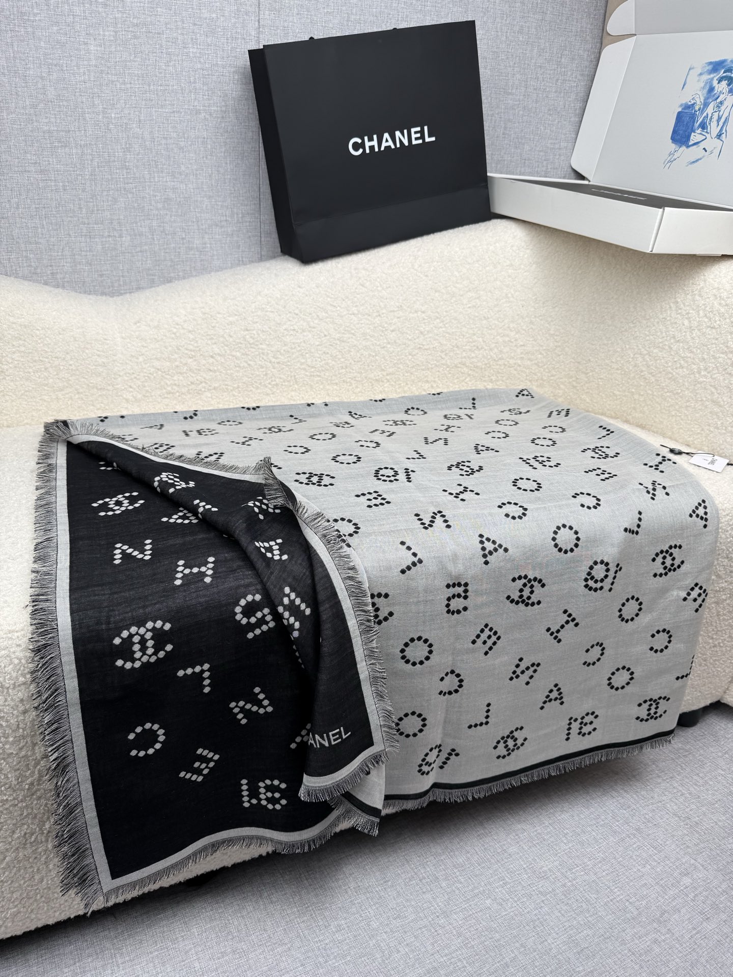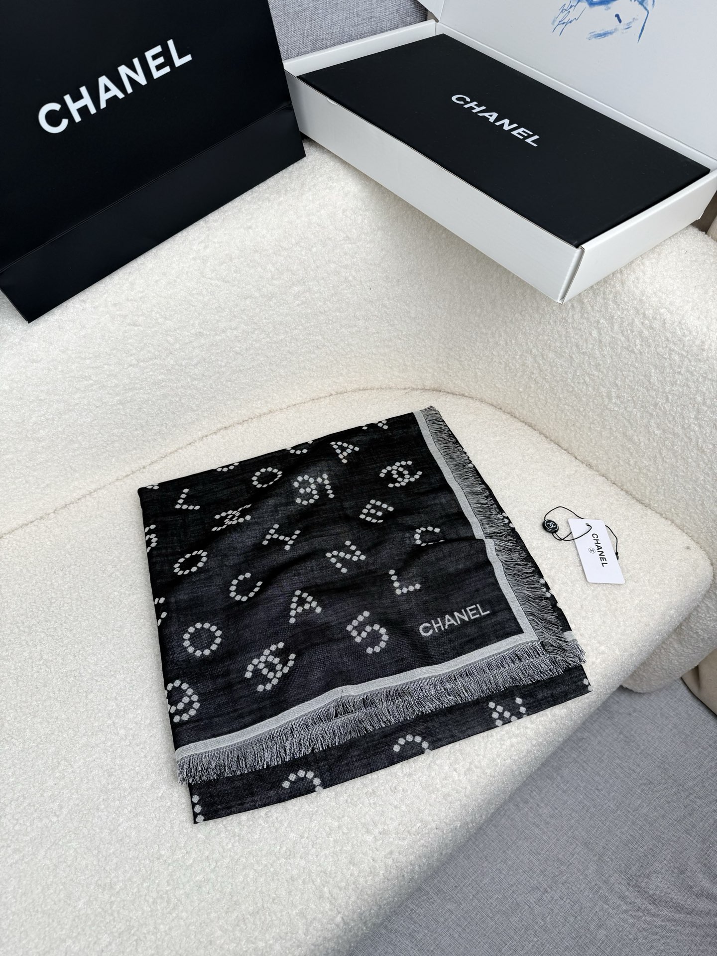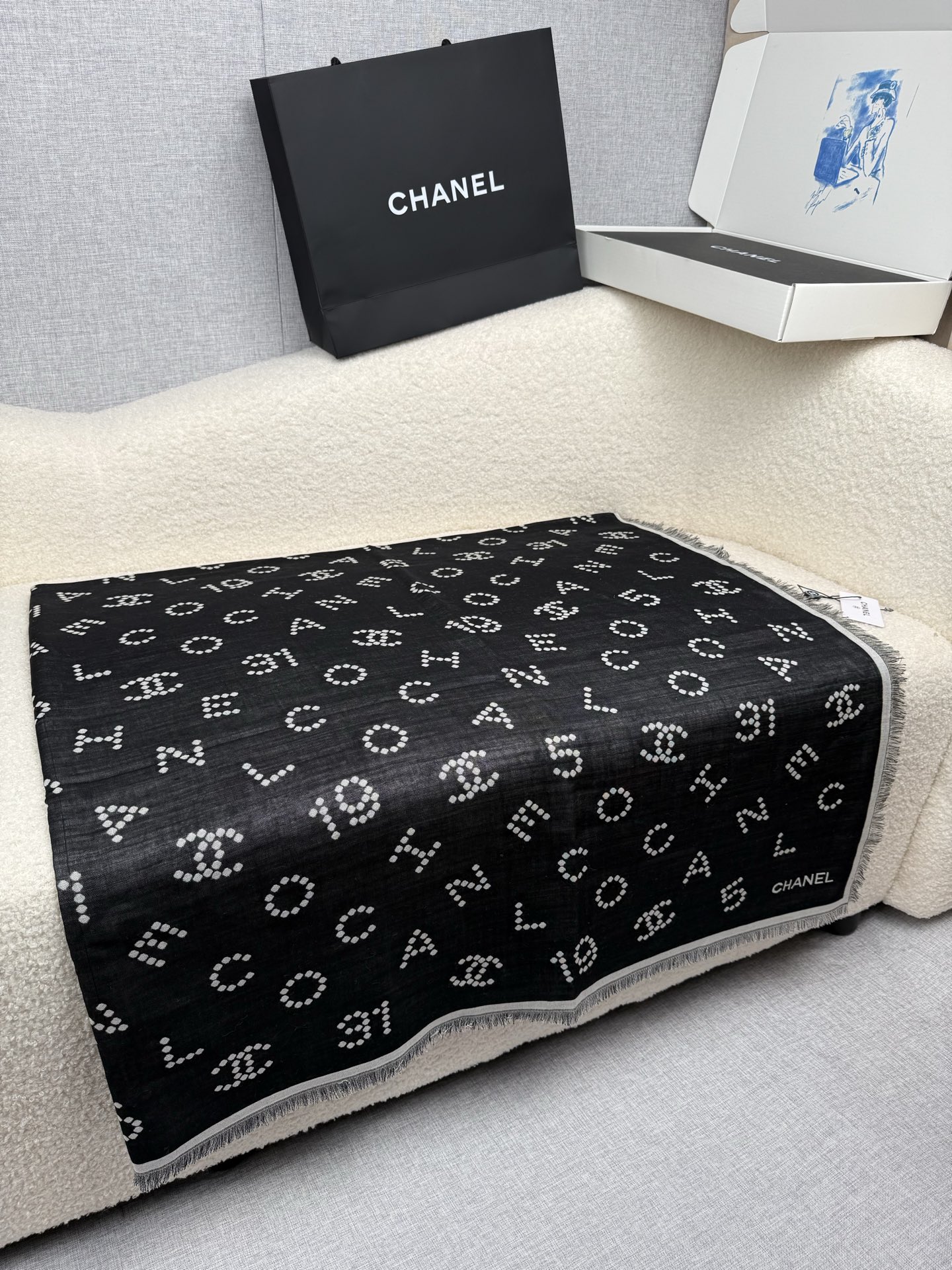 This Chanel double-sided jacquard scarf is a must-have for the season. Its versatile design and luxurious feel make it a standout accessory.