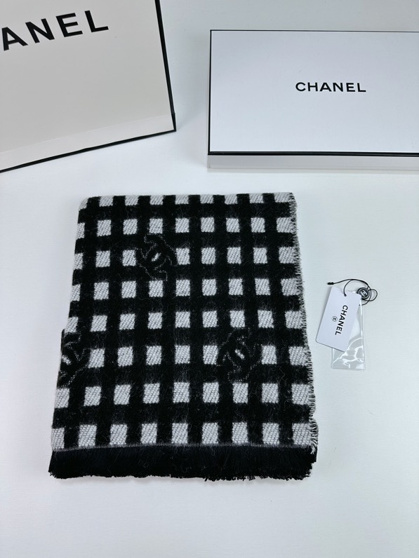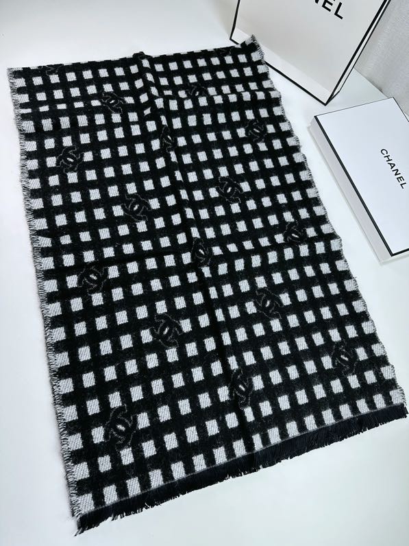 Elegant Chanel Wool Cashmere Blend Scarf - Classic Gingham Design, 50 x 180 cm