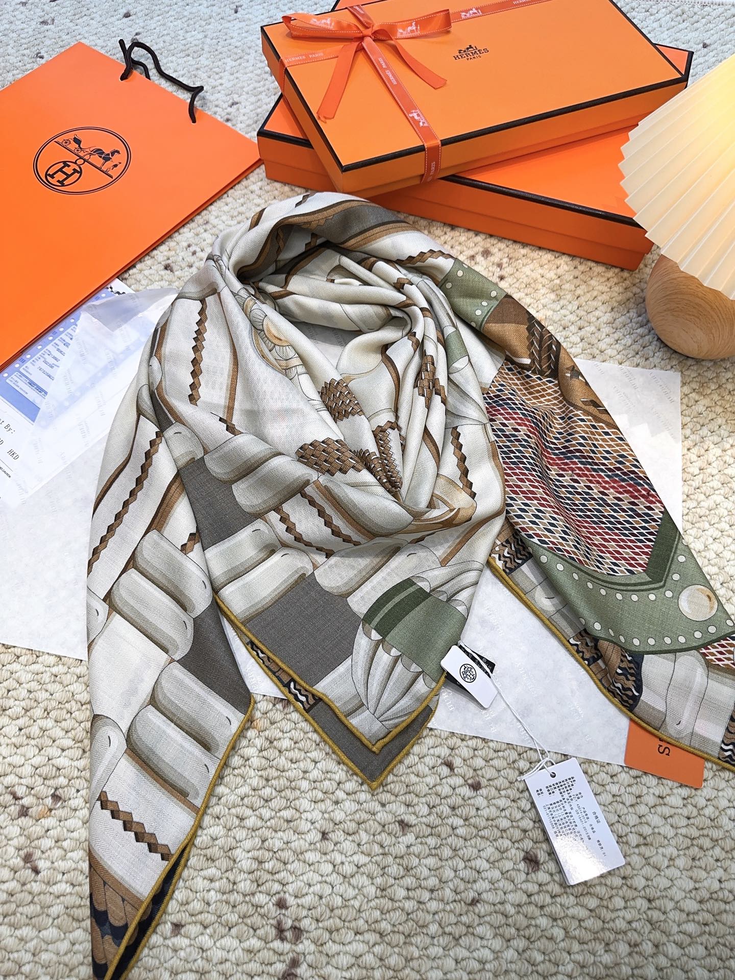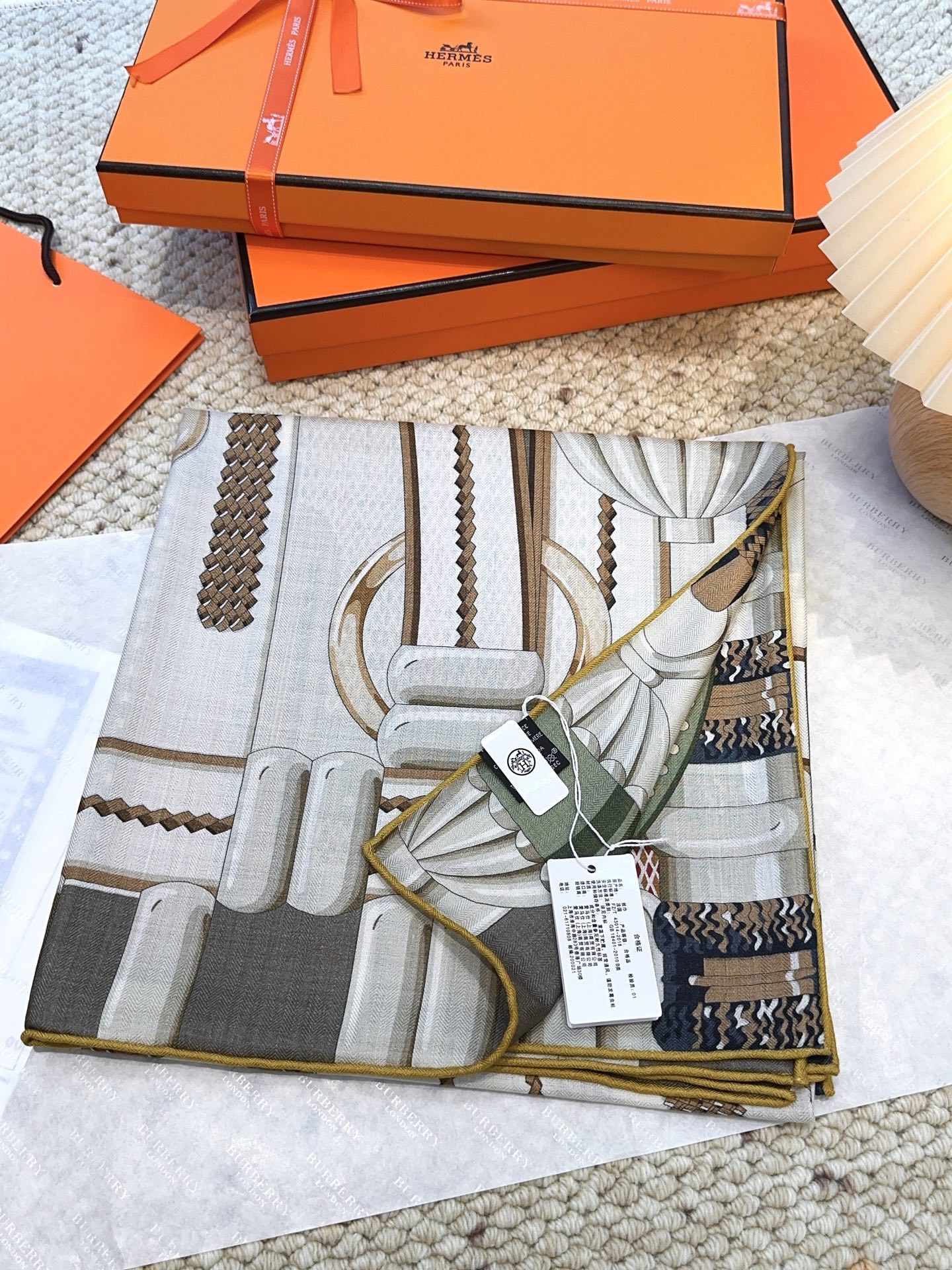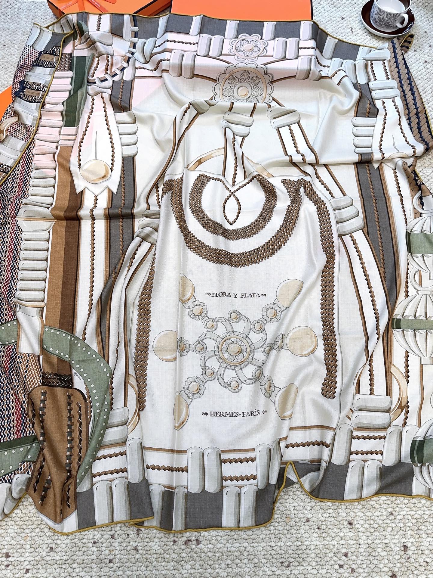 Indulge in the luxurious Hermes scarf. Featuring the classic Cosmographia Universalis design, blending silk and wool for a soft, elegant accessory.
