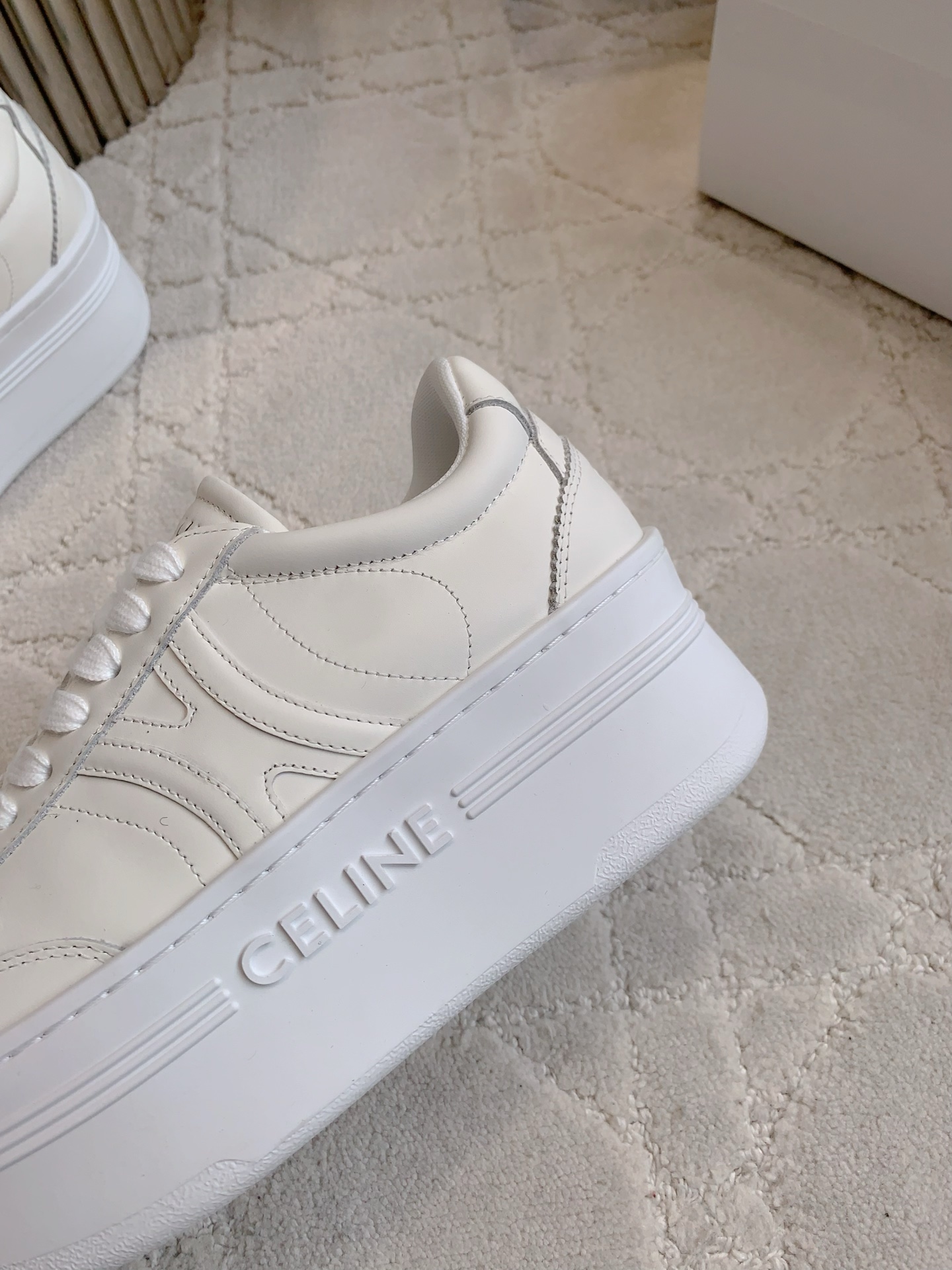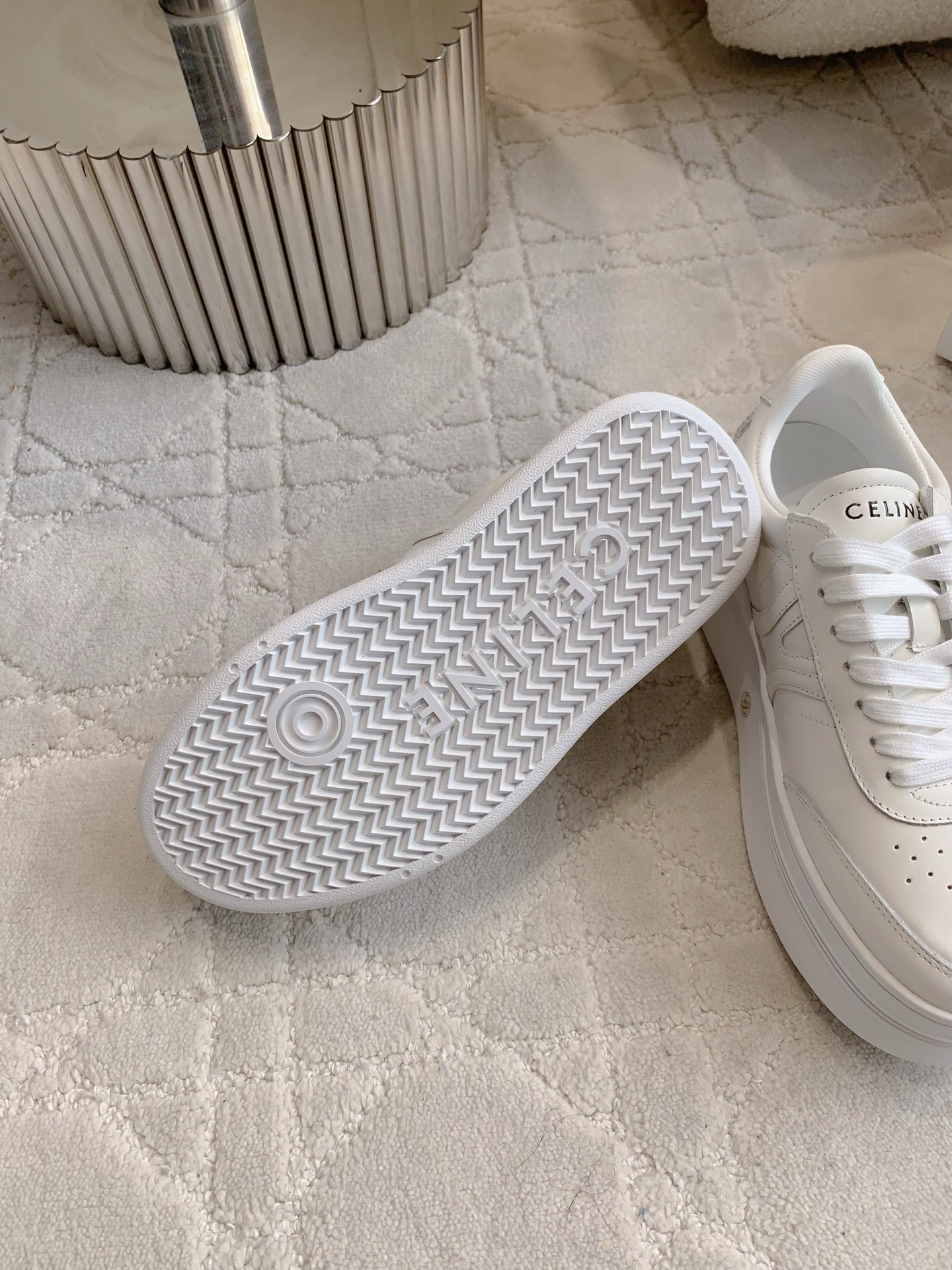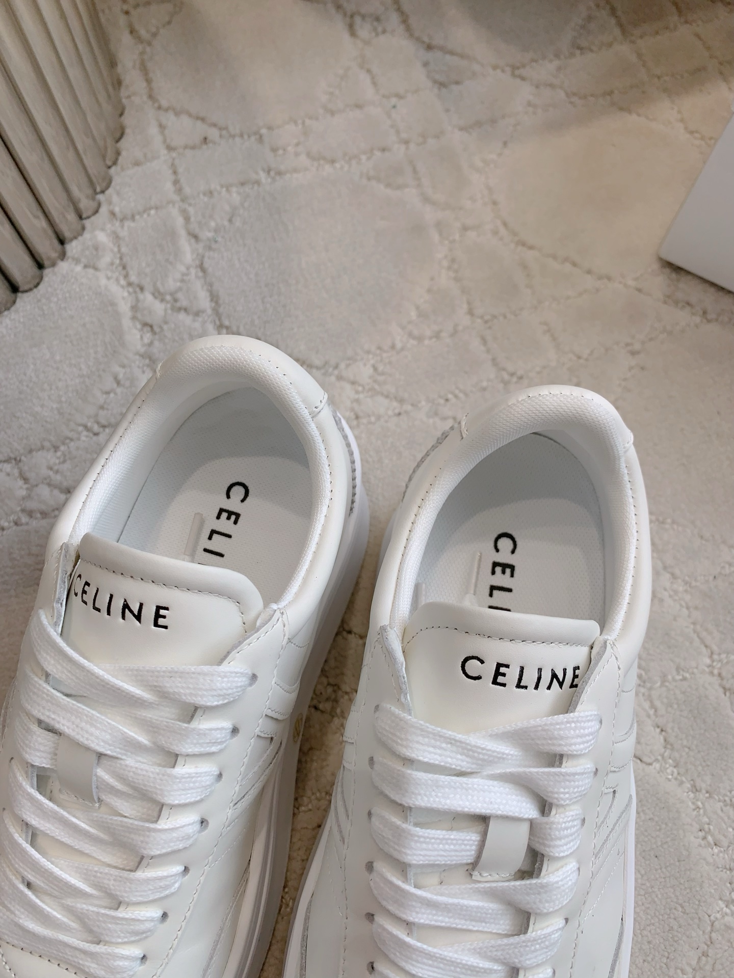 Celine CR-03 Runner Sneakers Women's White Leather Lace-Up Fashion Shoes