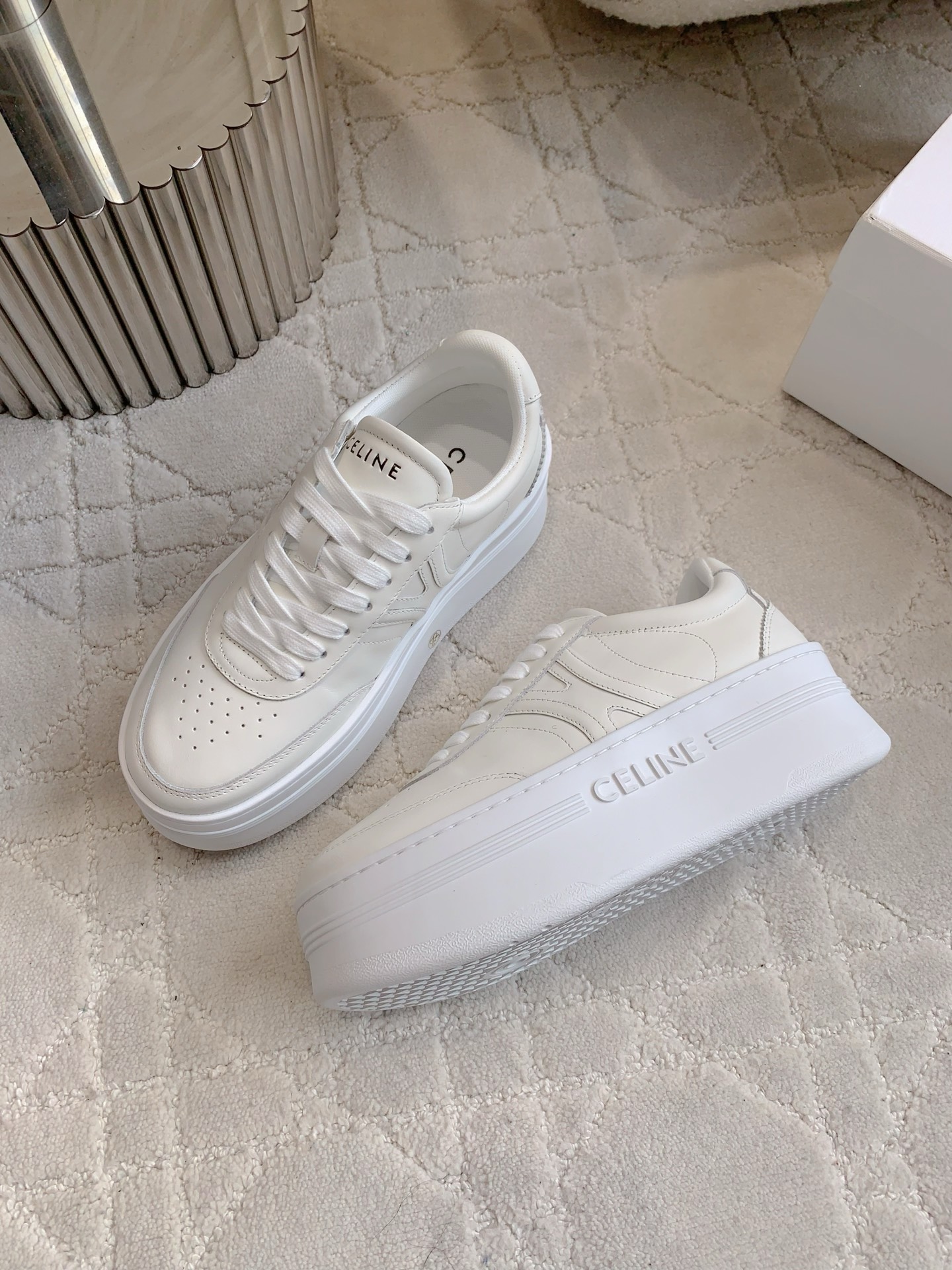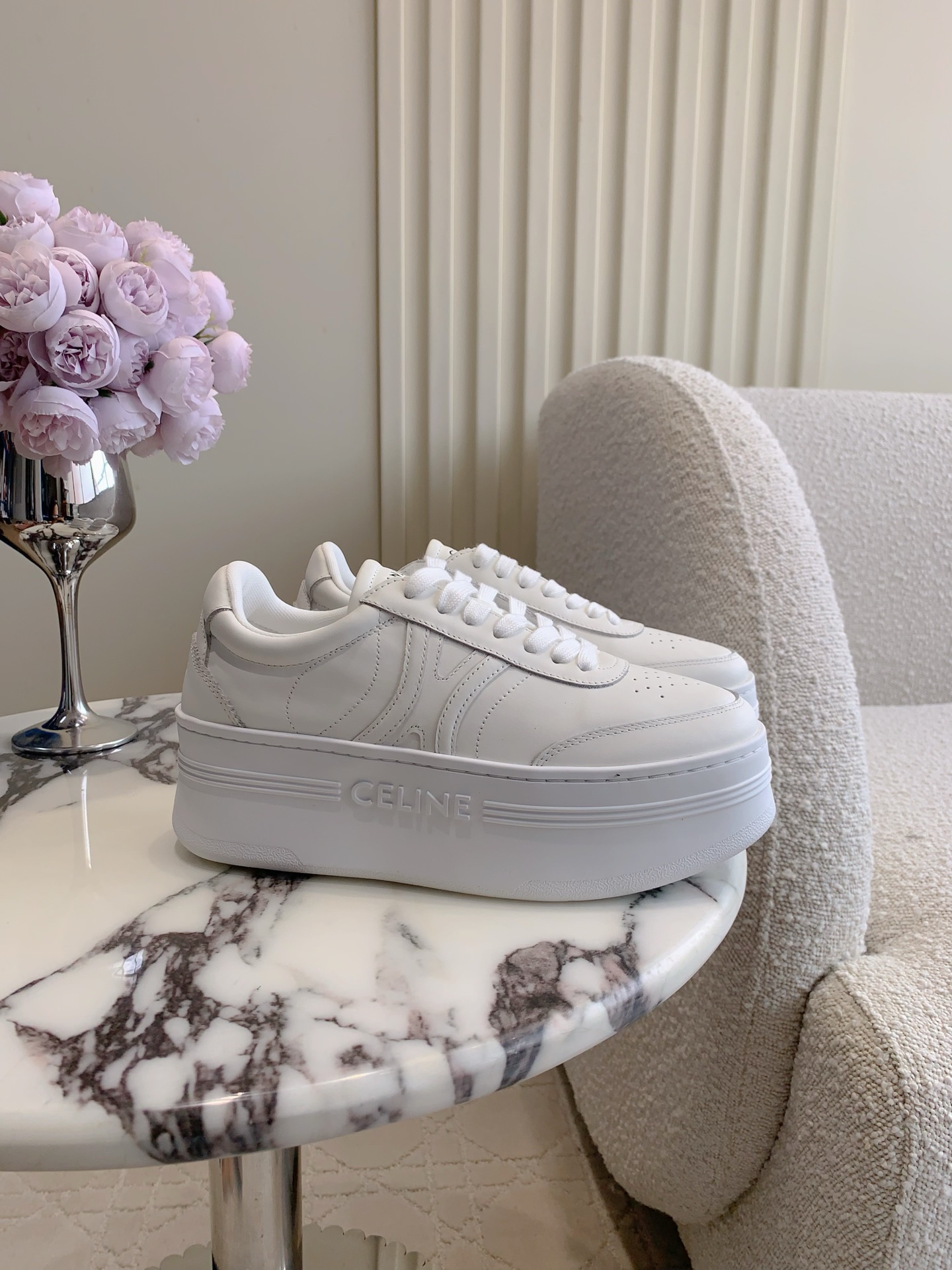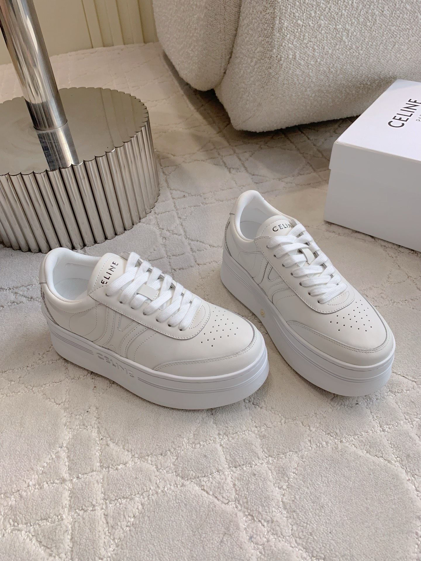 Celine CR-03 Runner Sneakers Women's White Leather Lace-Up Fashion Shoes