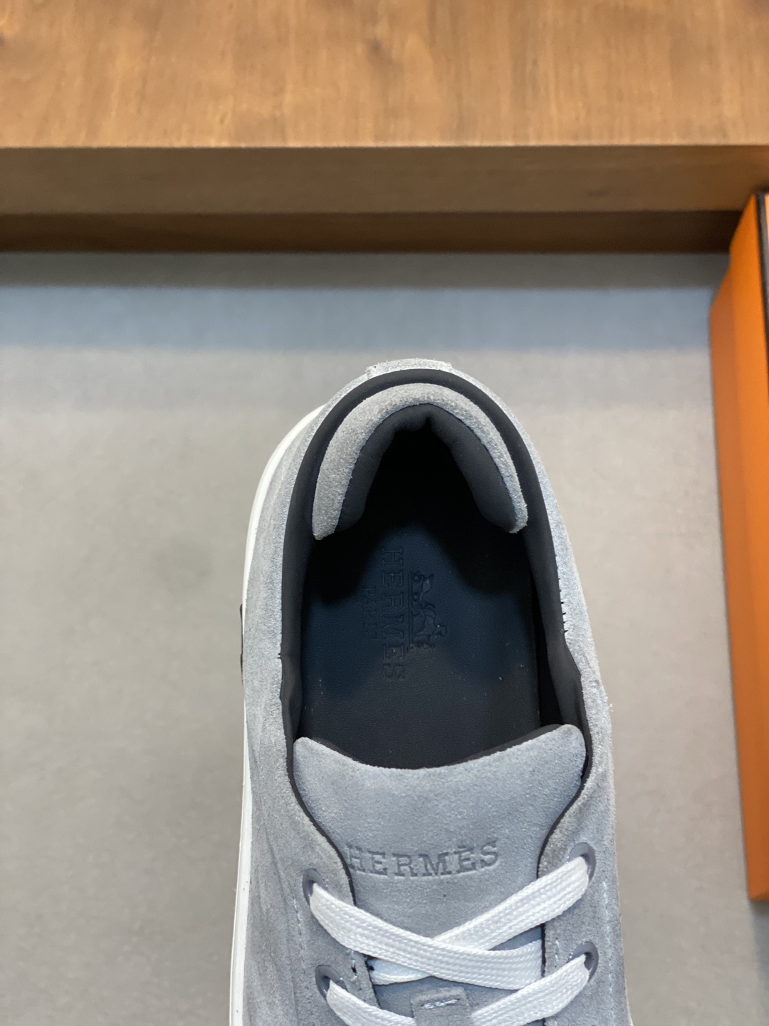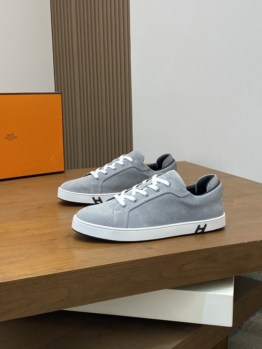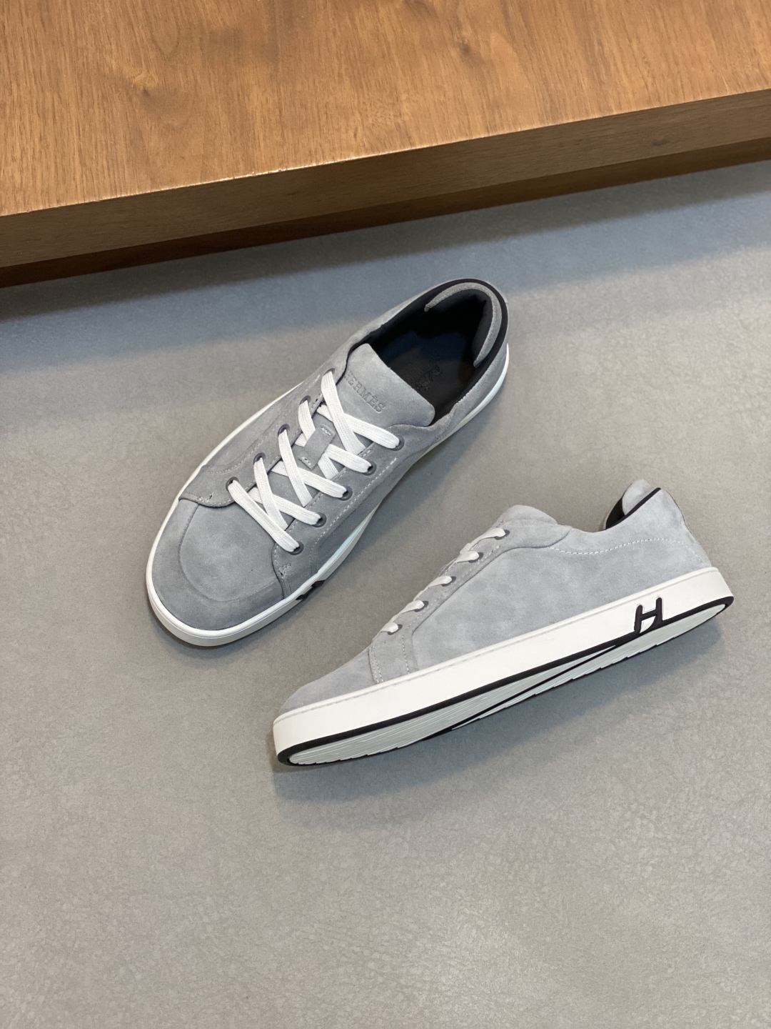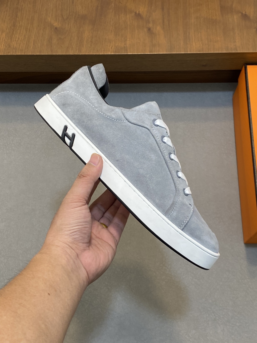 Hermès Kiddy Grey Suede Leather Sneakers with 'H' Detail, Size 39-44