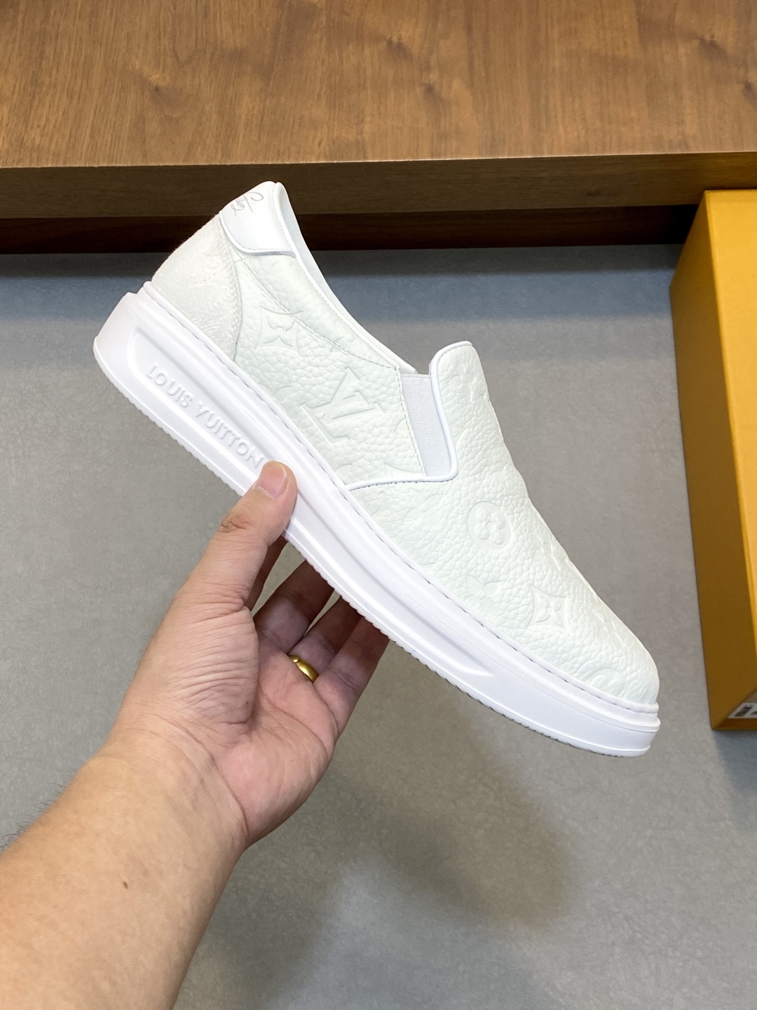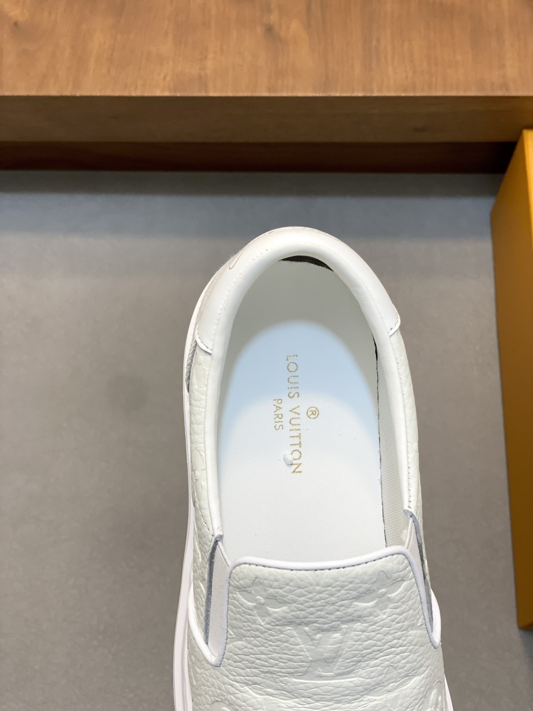 Louis Vuitton White Leather Embossed Slip-On Sneakers, Luxurious Comfort