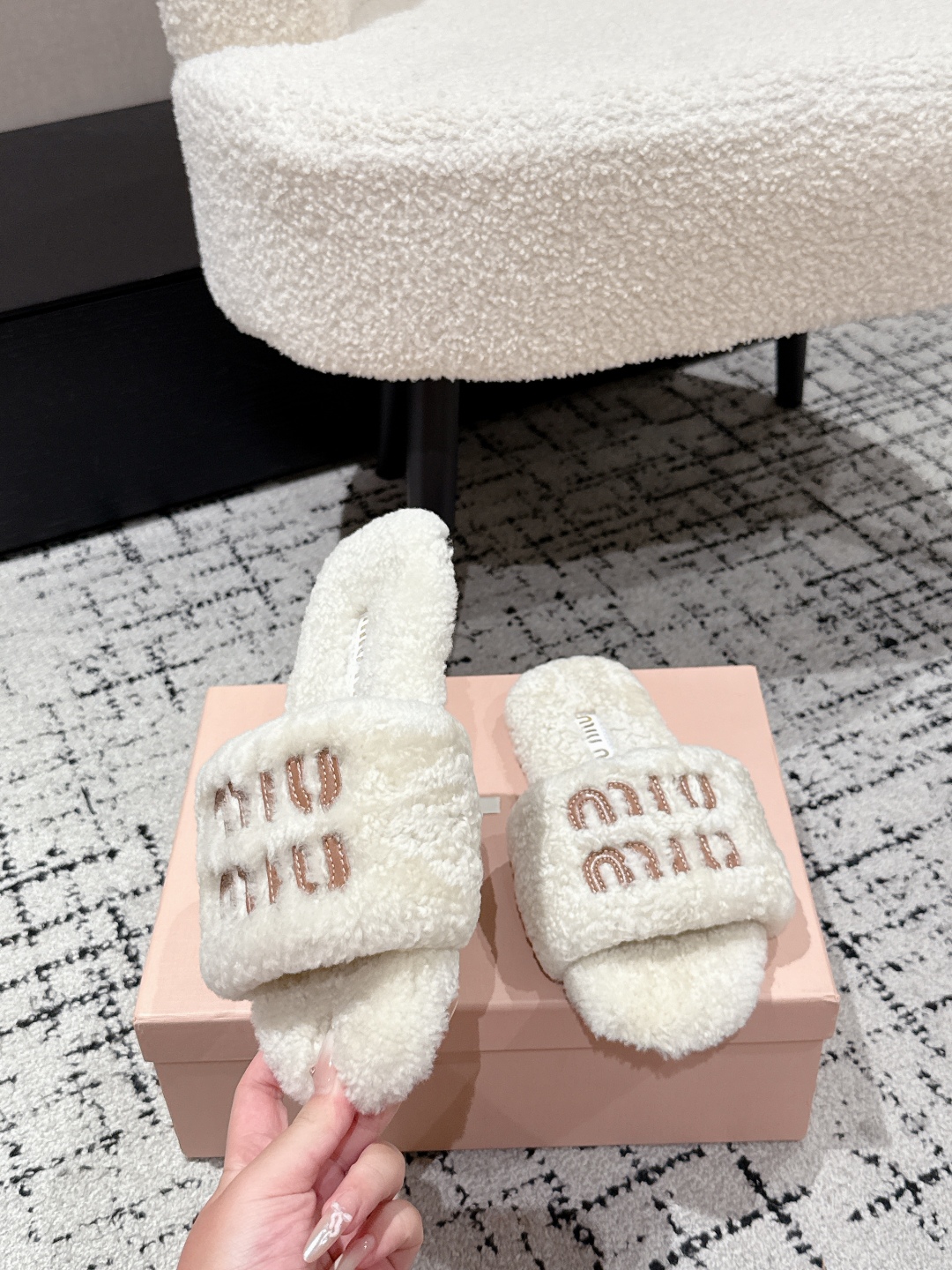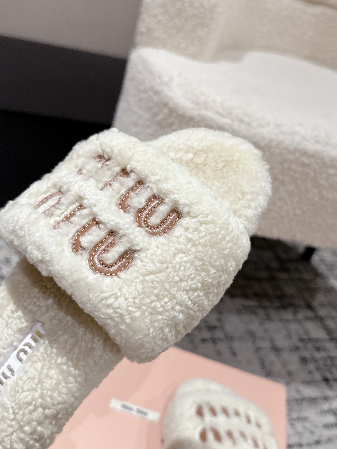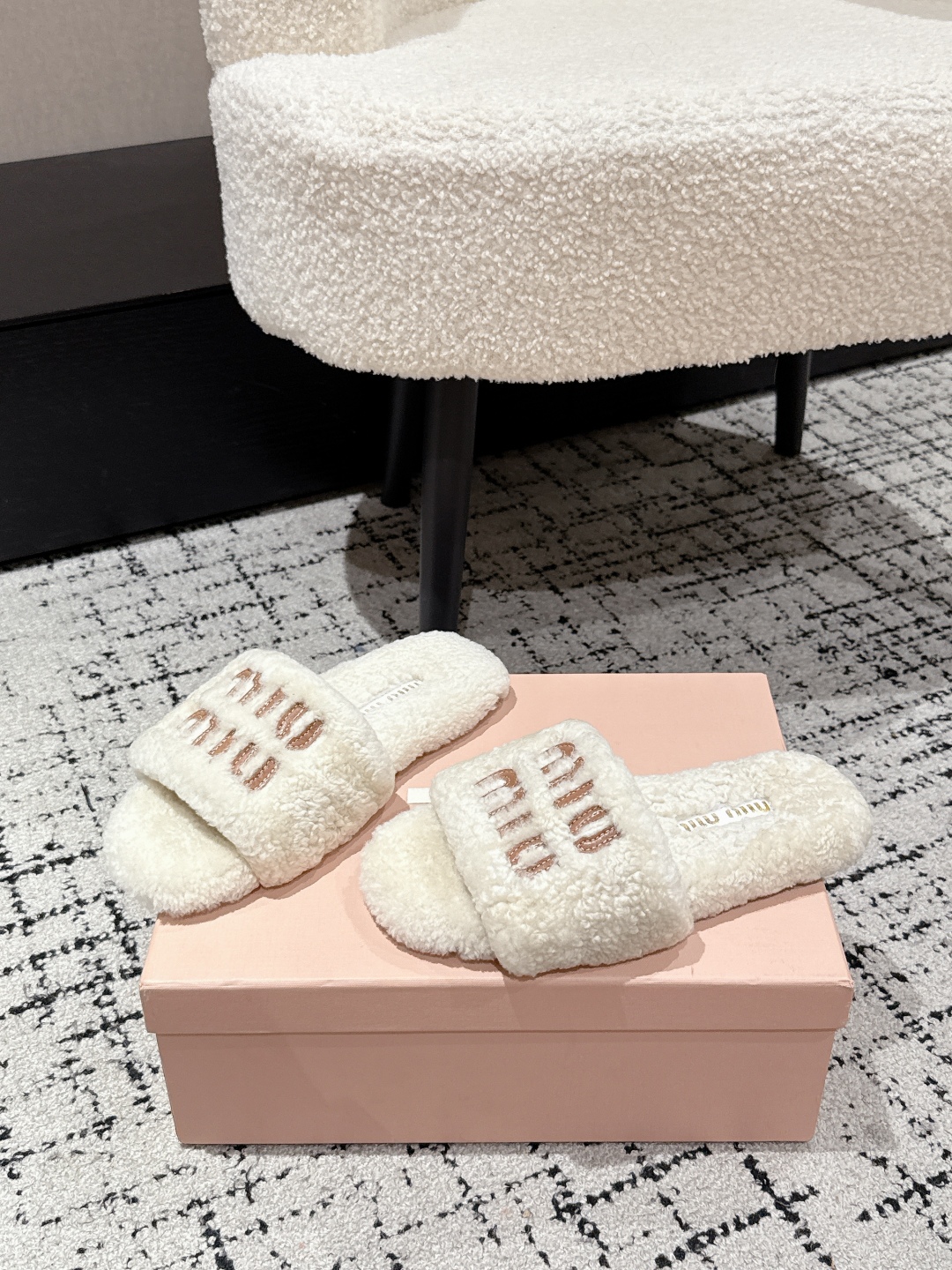 Miu Miu Women's Shearling Logo Slide Slippers, Cozy and Stylish for Fall/Winter