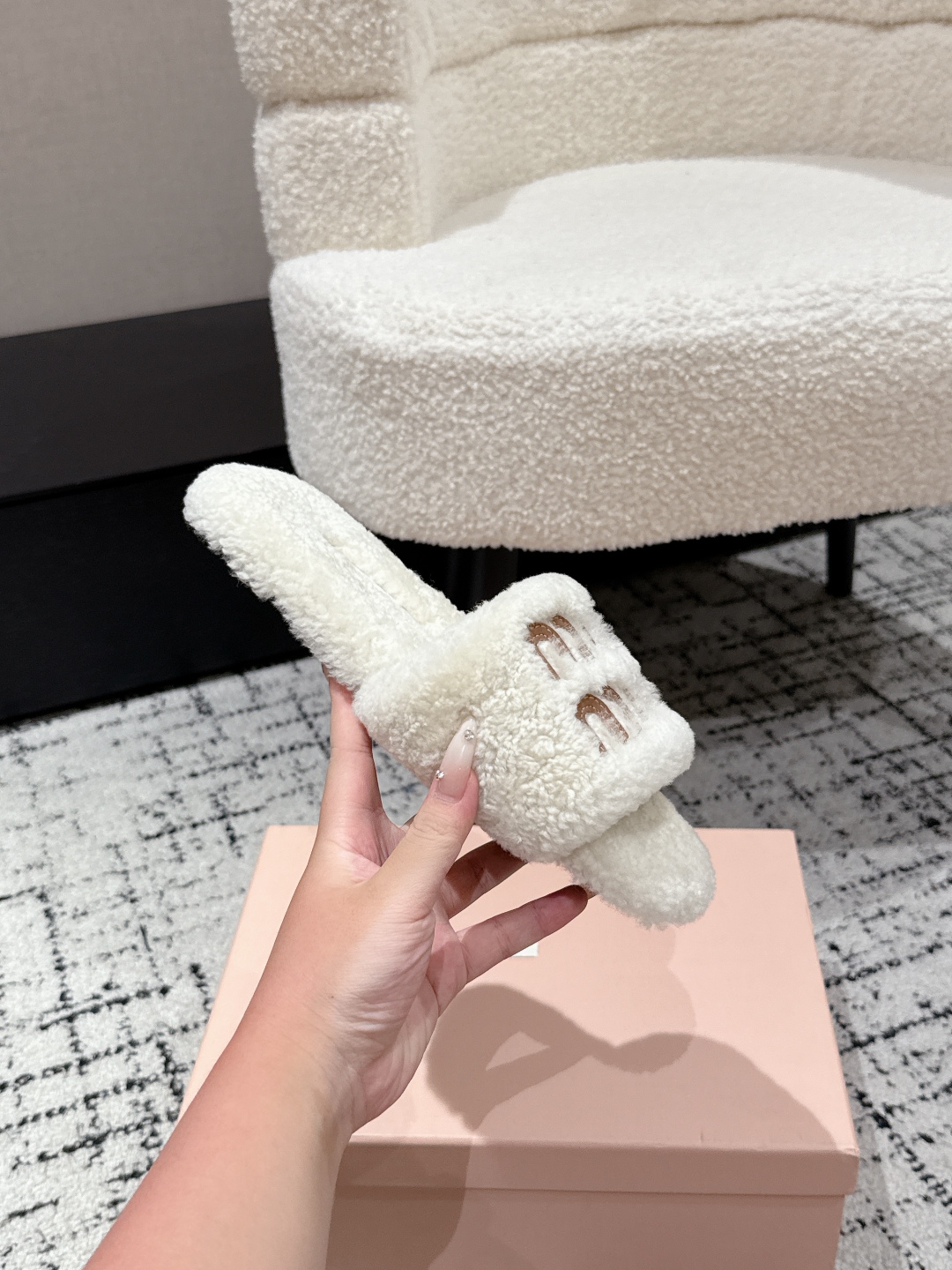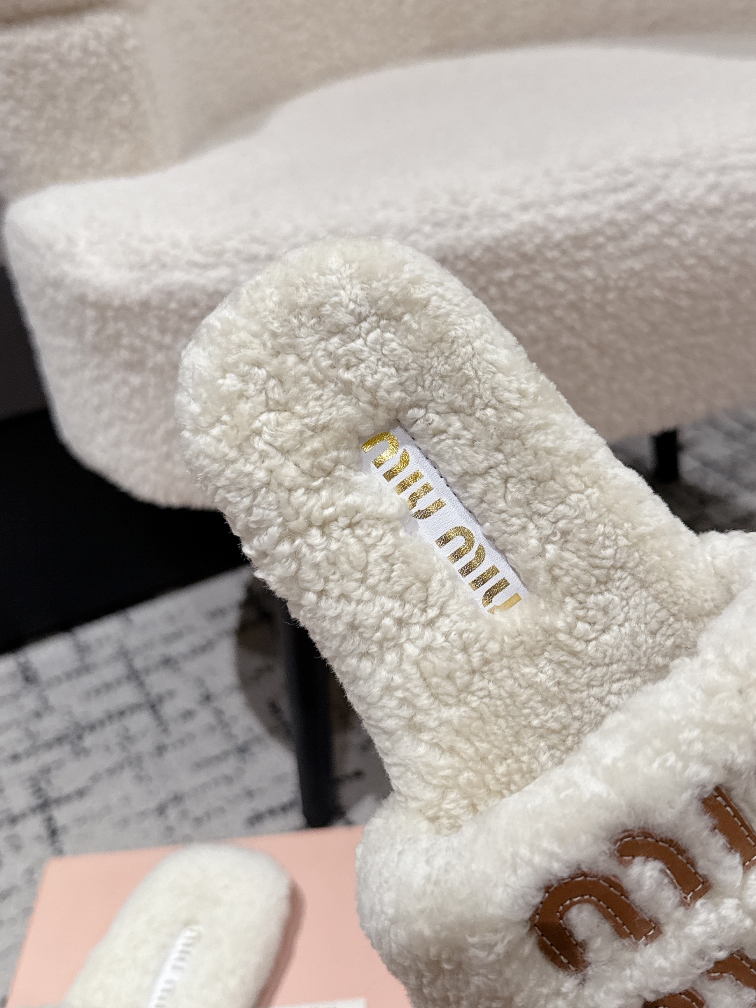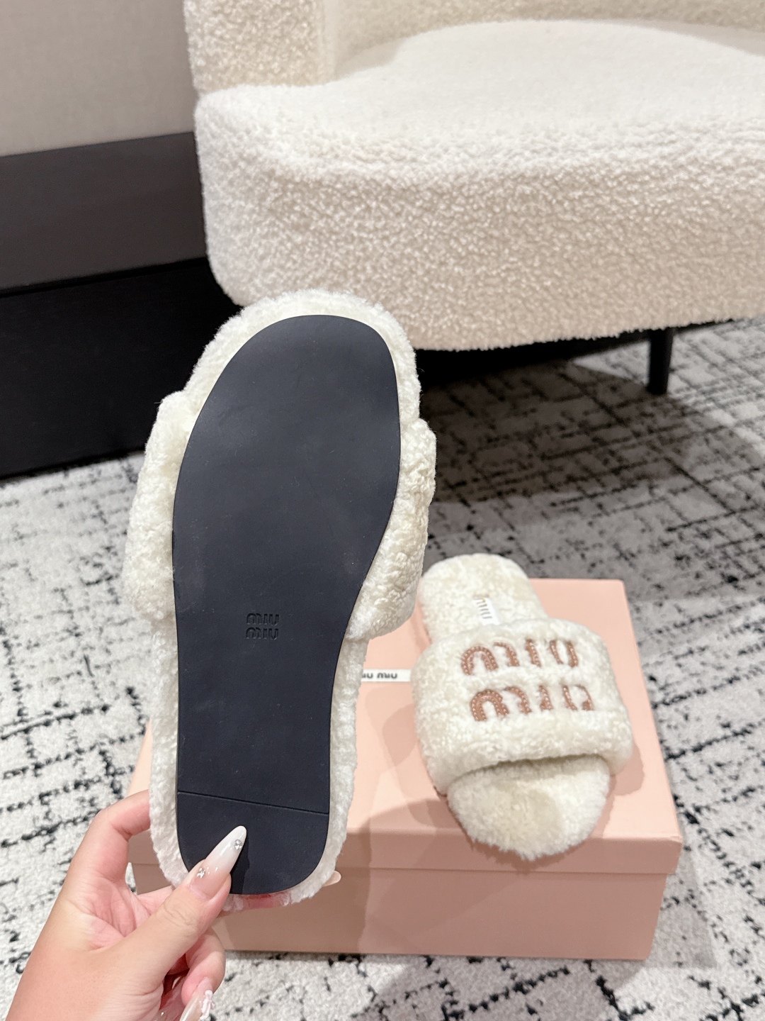 Miu Miu Women's Shearling Logo Slide Slippers, Cozy and Stylish for Fall/Winter
