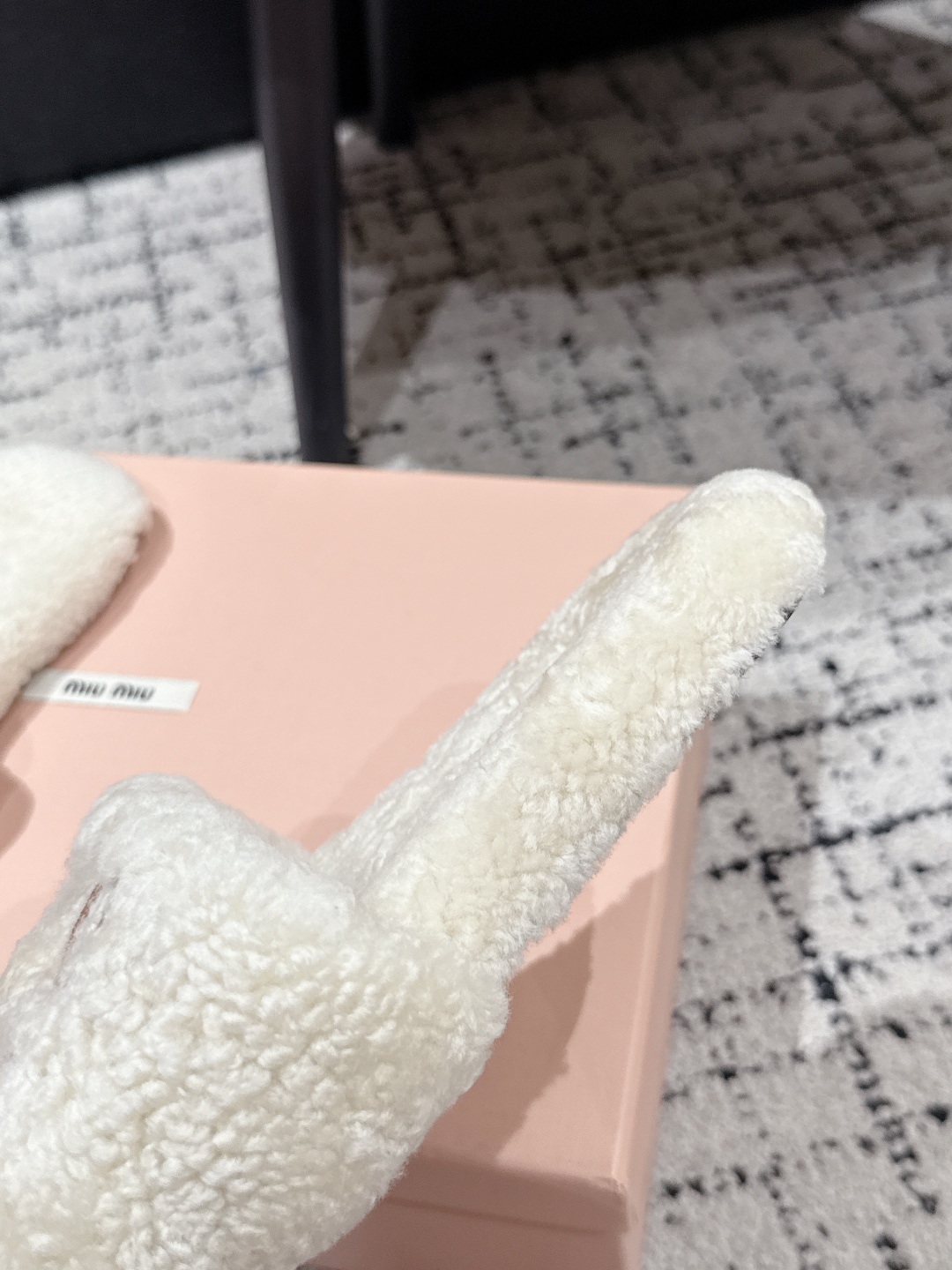 These Miu Miu shearling slippers are a must-have for anyone looking to combine comfort with high fashion. Crafted from premium Australian sheep wool, these slippers offer a touch of luxury for both indoor relaxation and stylish outings.